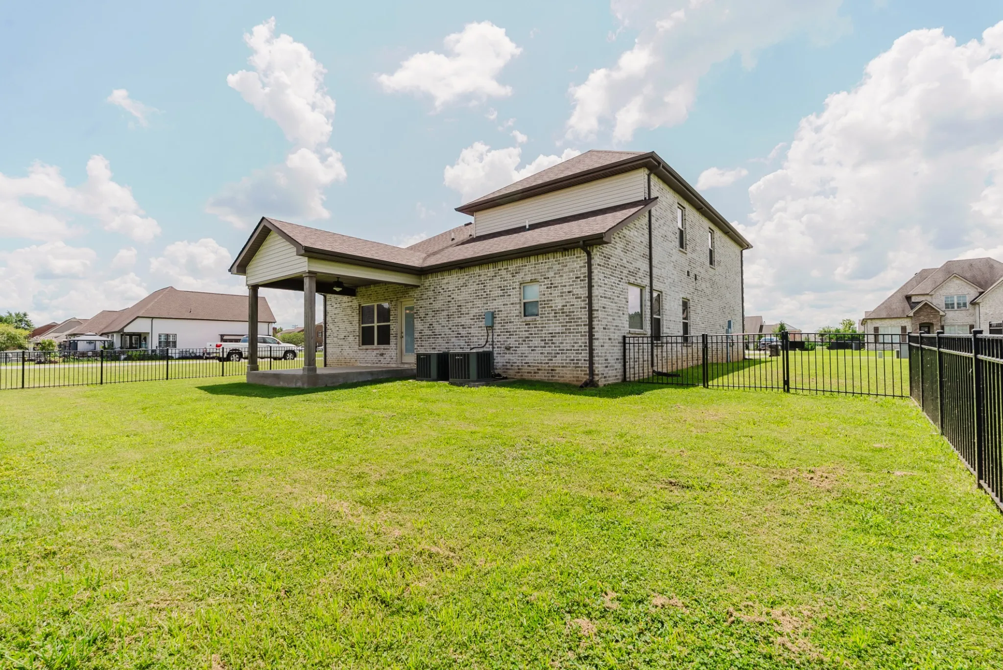 Welcome to 1402 Alamo Avenue! Nestled on a spacious corner lot in one of the area’s most desirable neighborhoods, this beautifully designed 5 bedroom, 3.5 bathroom brick home offers 2,242 sq ft of thoughtfully crafted living space. With a highly functional open floorplan and modern upgrades throughout, this home is sure to impress even the most discerning of buyers. Step inside to discover laminate flooring that flows seamlessly through the main living areas, while plush carpet adds comfort to the bedrooms and upstairs. The heart of the home is the light-filled kitchen, featuring crisp white shaker cabinets, gleaming granite countertops, stainless steel appliances, and matching stainless fixtures and hardware. Whether you’re hosting guests or whipping up a weeknight meal, this space offers both style and functionality. The first-floor master suite is a true retreat, complete with dual walk-in closets and a luxurious en suite bathroom that includes a dual vanity, large walk-in shower, and an oversized soaking tub—perfect for winding down after a long day. Additional features include a covered rear patio ideal for outdoor entertaining, an attached 2-car garage, and a dual-zone AC system for year-round comfort. Located in a vibrant community known for its neighborhood events and access to a beautiful community pool, this home is also zoned for Walter Hill Elementary & Siegel Middle and High Schools. Plus, you’ll enjoy easy access to nearby parks, shopping, dining, and everything this fantastic area has to offer. Don’t miss your opportunity to own this exceptional home in a prime location. Welcome home!