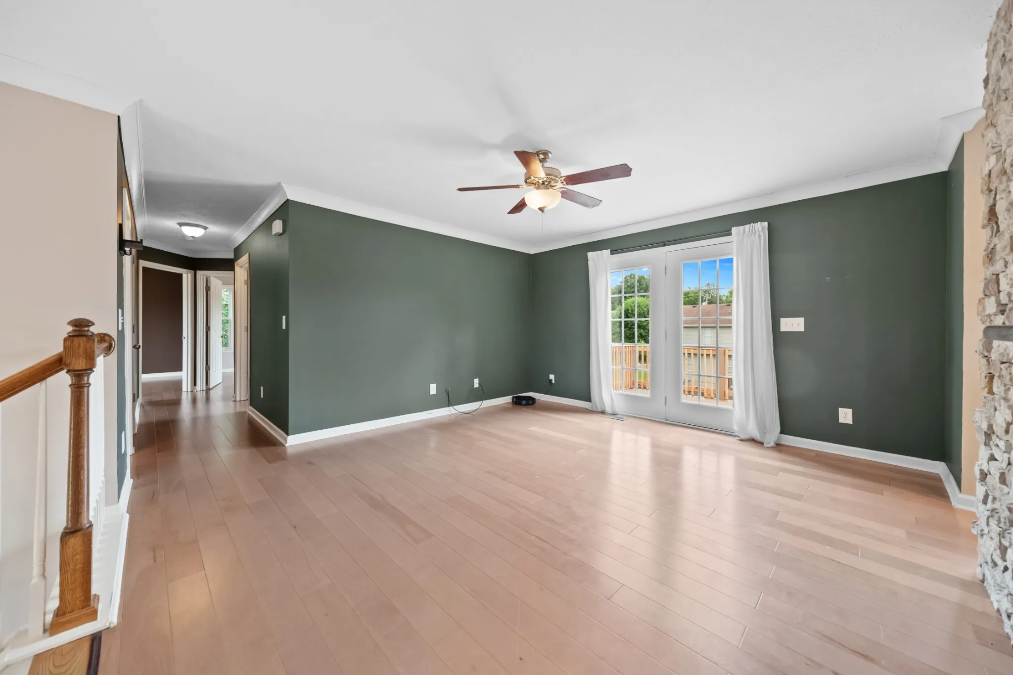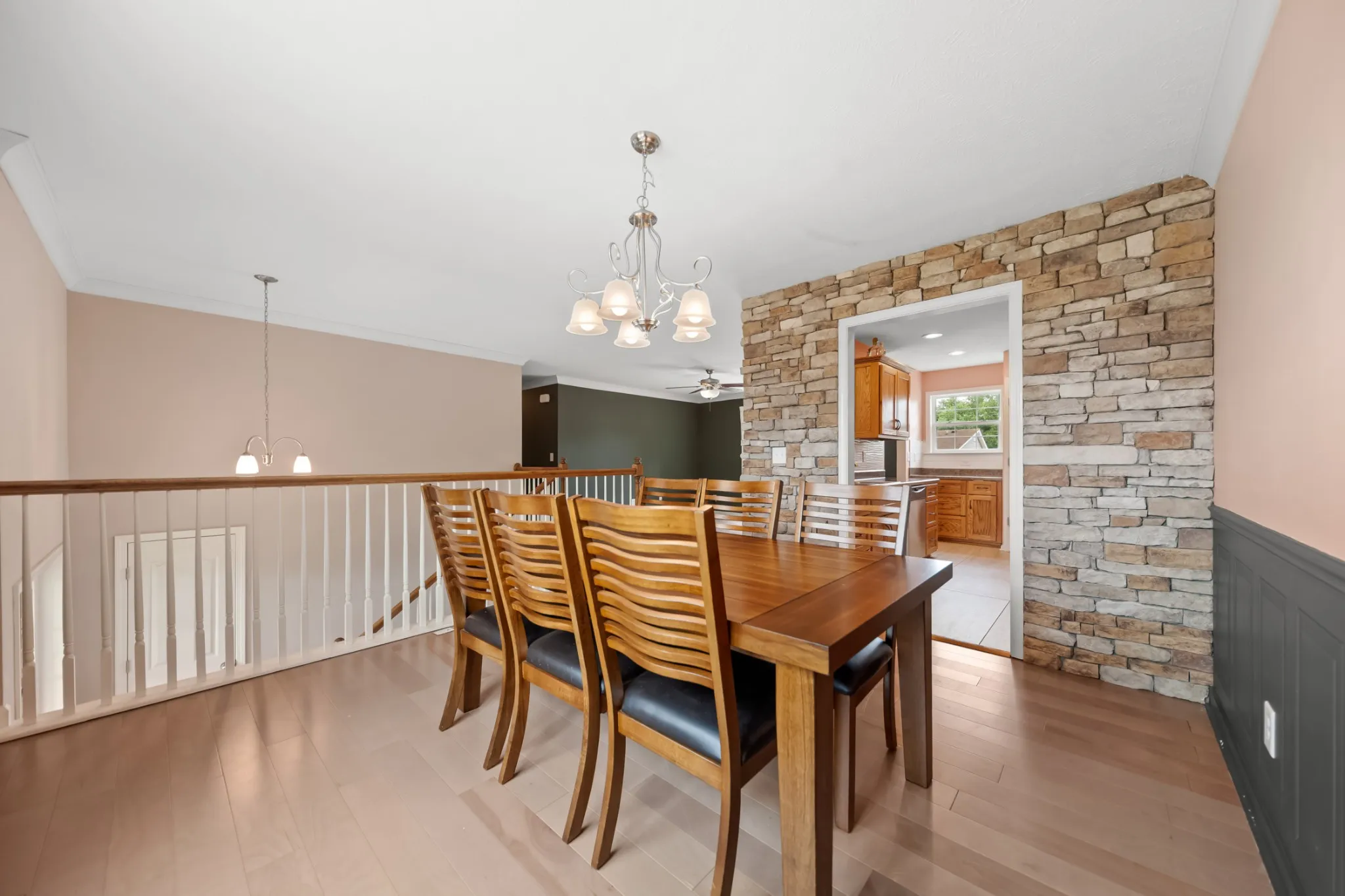 No HOA for this address! 2 primary suites! Welcome to this spacious 4 bed, 3 full bath home situated on nearly half an acre featuring beautiful flooring throughout—no carpet! The inviting dining room features wainscoting and crown molding, setting the stage for memorable gatherings. The galley-style kitchen is equipped with solid oak cabinets, recessed lighting, a corner pantry, separate coffee bar/prep area, and all stainless steel appliances included. The open-concept living area is highlighted by a stone feature wall and offers direct access to the spacious deck—perfect for entertaining or relaxing while overlooking the almost fully fenced backyard. This home offers two primary bedrooms, each with its own ensuite bath ideal for multi-generational living or guests. Three bedrooms are located on the main level, while the fourth bedroom downstairs offers flexibility and could be used as a separate den/living area, man cave, home gym, or office. Additional features include: Oversized laundry room off the garage, perfect for a mudroom/drop zone, Walk-out 2-car garage with epoxy floors, Low-maintenance landscaping. No HOA! Don’t miss this opportunity to own a spacious, move-in-ready home with room to grow in a fantastic location. Schedule your showing today!
