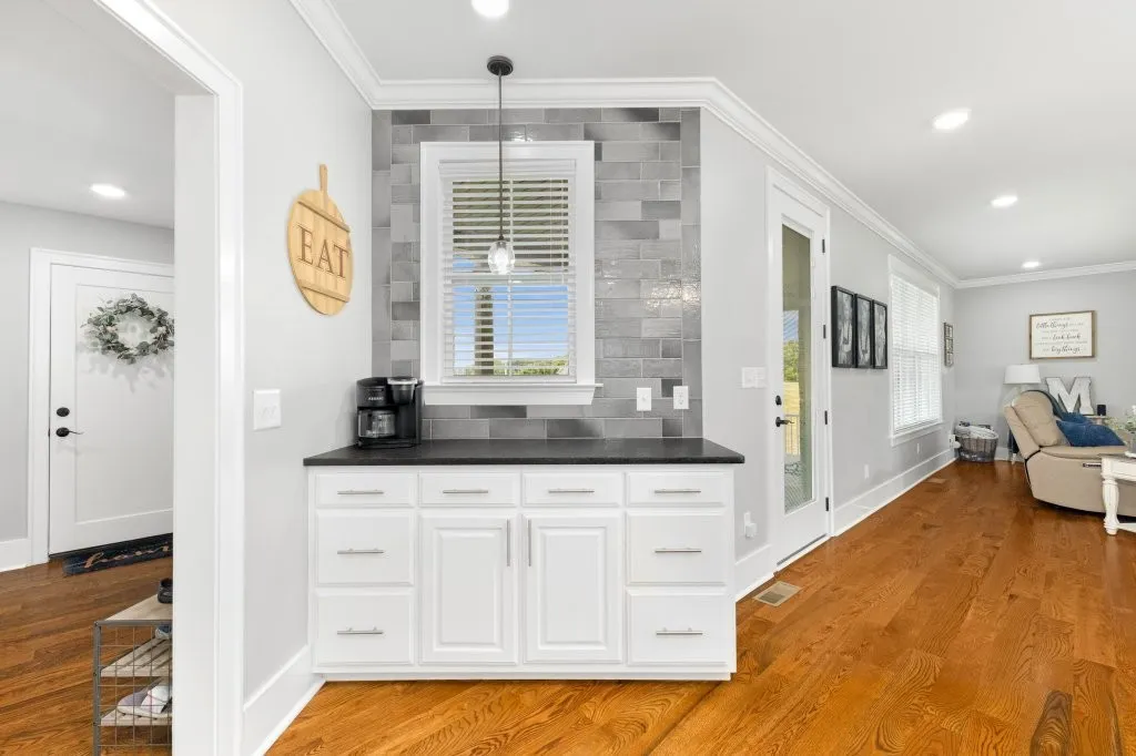 Absolutely Stunning Family Home! Built in 2021, this beautiful brick boasts gorgeous dormers from every direction and showcases an extra tall wood entry door. This home has 4 Bedrooms, 4 1/2 Baths, and is located in a highly desirable area sitting on nice .82 Acre lot. Special touches include custom cabinets, tile showers and surrounds, custom molding, wide planked hardwood floors, leathered granite, tiled backsplash, gas range, stainless appliances, a butler’s pantry, upscale lighting and plumbing fixtures, tankless water heater, and a floor to ceiling tiled gas fireplace just in time for fall nights. A combined open living area, (which is the center of attention upon entry!), and the split bedroom floor plan are great for family time and then quiet time. A roomy laundry and mud room with built in bench leads to the oversized two car attached garage. The full basement has a full bathroom, a garage, and high overhead space. Property includes 2 concrete driveways, a spacious yard, and an exceptional location!