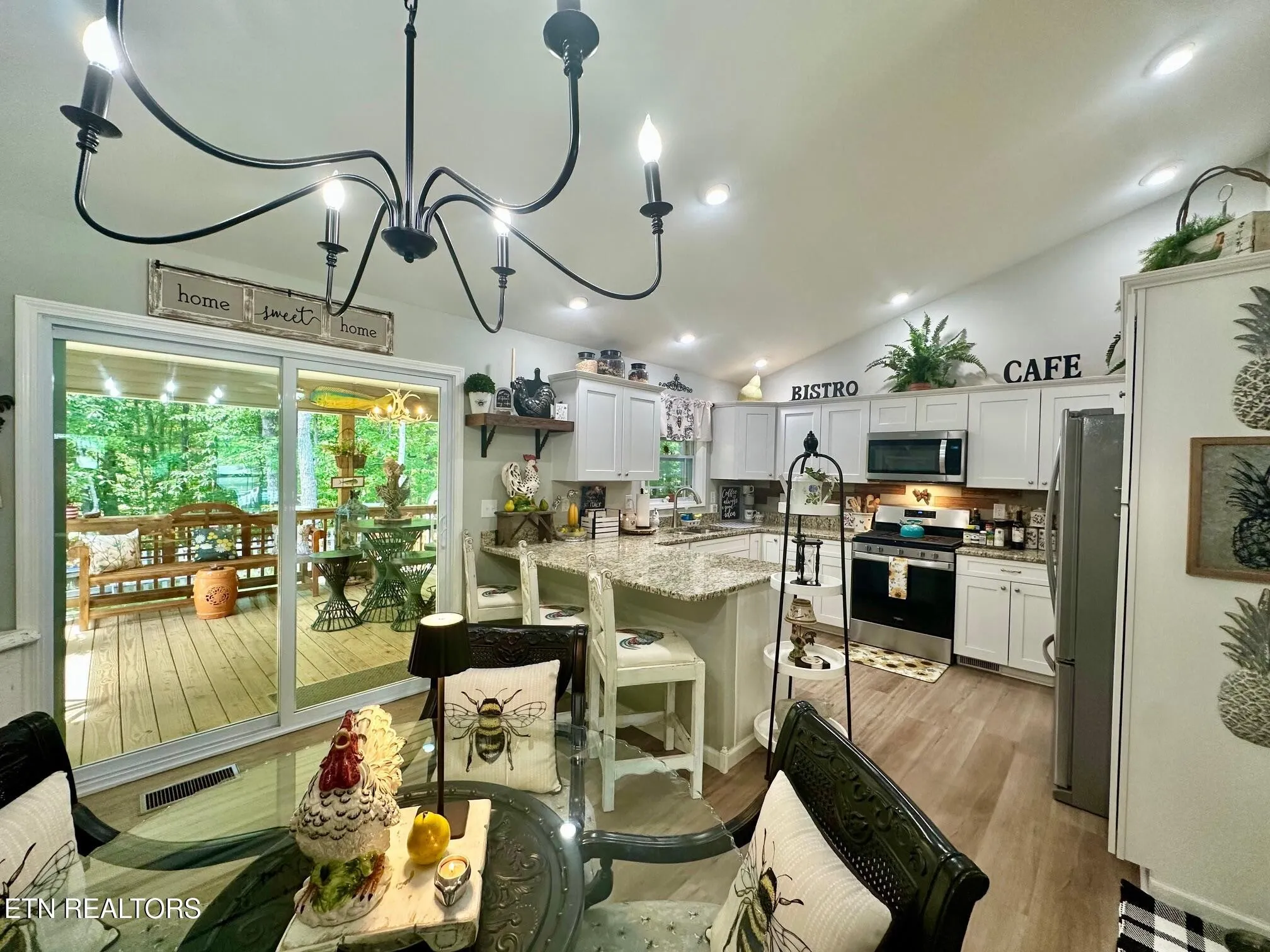 This like new 3 bdr, 2 bath home is move-in ready. Well maintained and landscaped. Kitchen features granite countertops, an eat-in bar, and stainless steel appliances. Gas stone fireplace adds warmth and charm to the living room. Outside, enjoy a fenced backyard and covered screened in porch. Enjoy the abundant wildlife from your back porch. Furniture was chosen specifically for the space, and most of it is available for purchase. Don’t miss the opportunity to make this beautiful home your own!