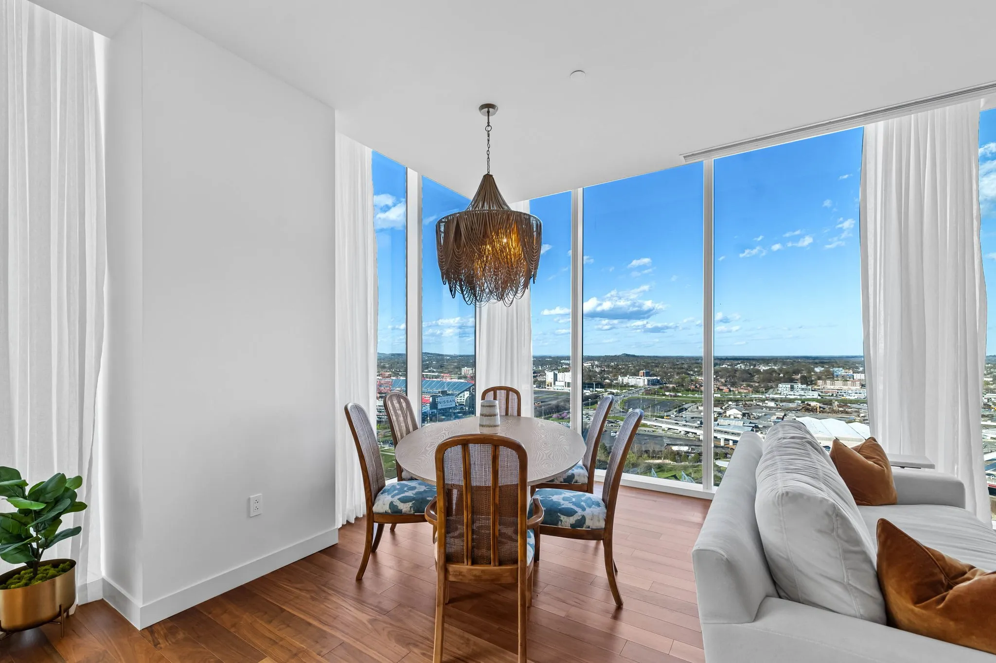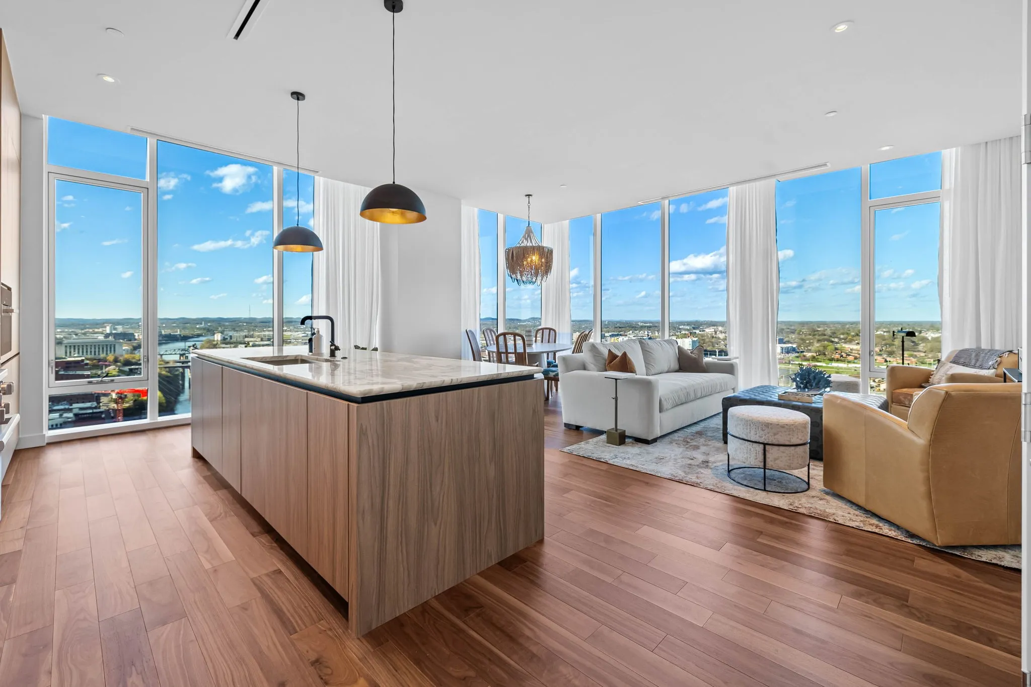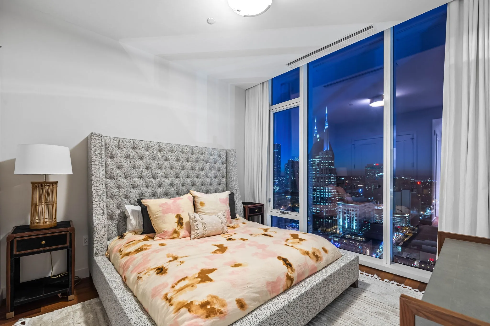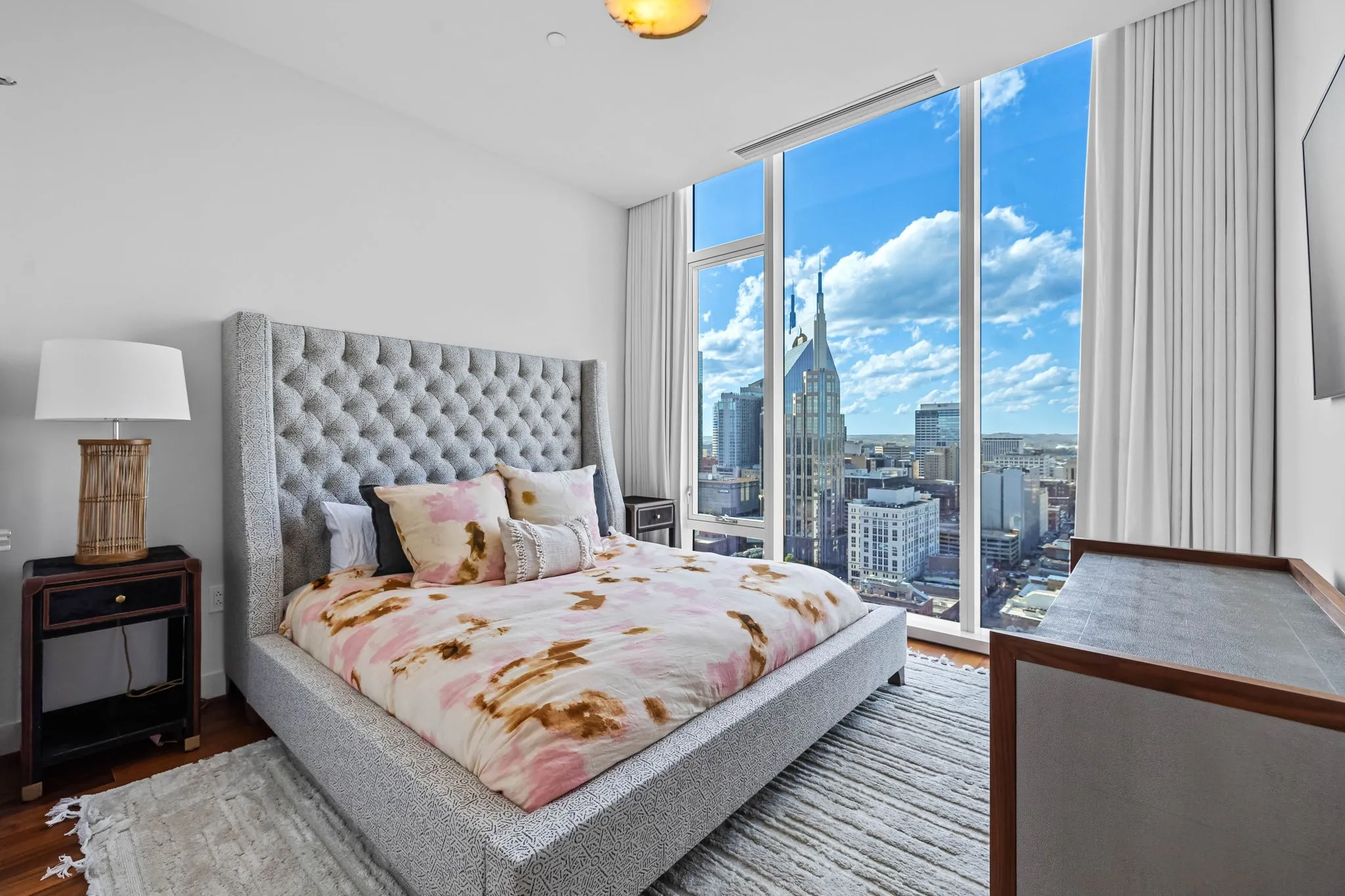 Experience the epitome of luxury living at The Four Seasons Residences. This rare, furnished corner unit on the 22nd floor offers stunning north east views. Floor to ceiling windows showcase iconic landmarks like the “Batman building,” the picturesque Cumberland River, and the majestic Nissan Stadium. Custom draperies at every window reveal the breathtaking views of downtown Nashville’s iconic skyline, while the spacious living area, adorned with designer furniture allows this unit to be completely turnkey. The unit features a spacious kitchen with honed marble countertops, top of the line Miele appliances, designer lighting and high end finishes throughout the condo. Indulge in the world-class amenities that Four Seasons is celebrated for, including concierge services, pet wash, fitness facilities, and spa services to name a few. Don’t miss this rare opportunity to own a piece of Nashville’s skyline, at Music City’s most iconic address.