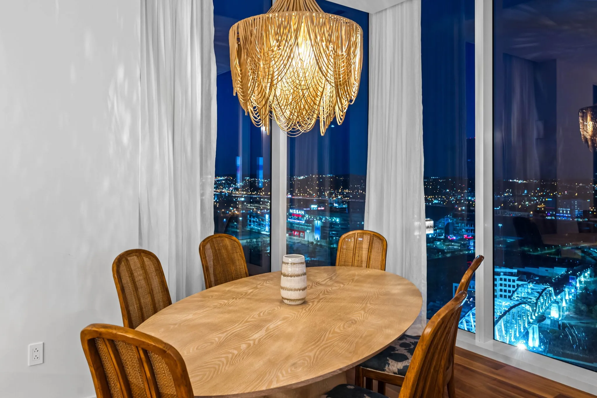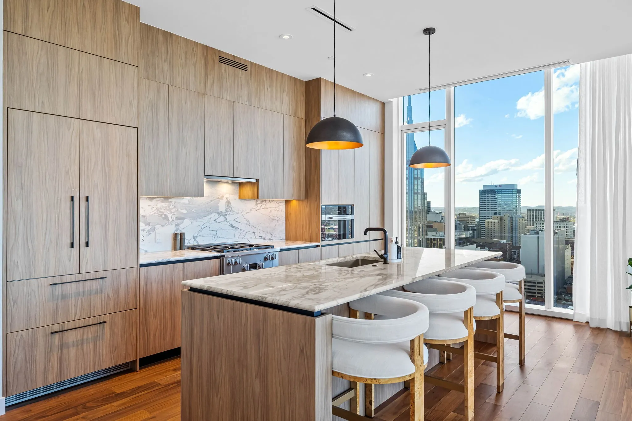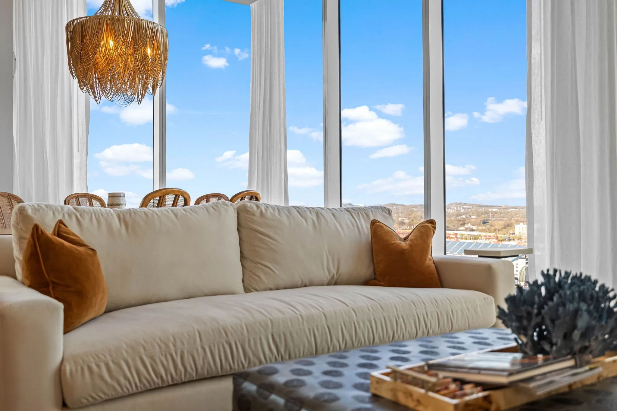Experience the epitome of luxury living at The Four Seasons Residences. This rare, furnished corner unit on the 22nd floor offers stunning north east views. Floor to ceiling windows showcase iconic landmarks like the “Batman building,” the picturesque Cumberland River, and the majestic Nissan Stadium. Custom draperies at every window reveal the breathtaking views of downtown Nashville’s iconic skyline, while the spacious living area, adorned with designer furniture allows this unit to be completely turnkey. The unit features a spacious kitchen with honed marble countertops, top of the line Miele appliances, designer lighting and high end finishes throughout the condo. Indulge in the world-class amenities that Four Seasons is celebrated for, including concierge services, pet wash, fitness facilities, and spa services to name a few. Don’t miss this rare opportunity to own a piece of Nashville’s skyline, at Music City’s most iconic address.
