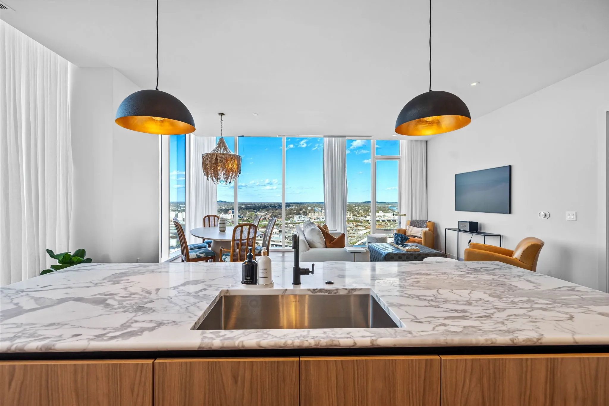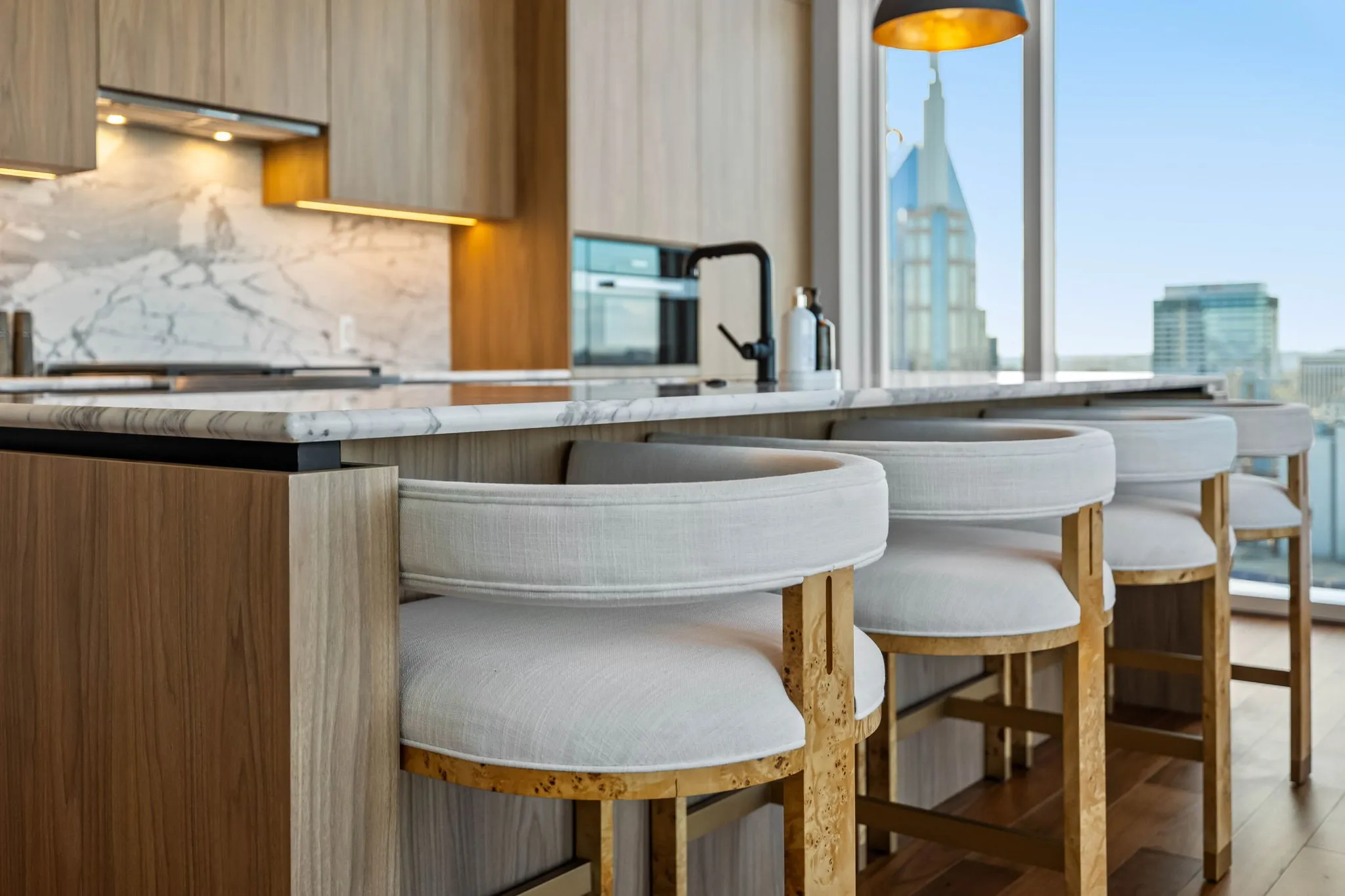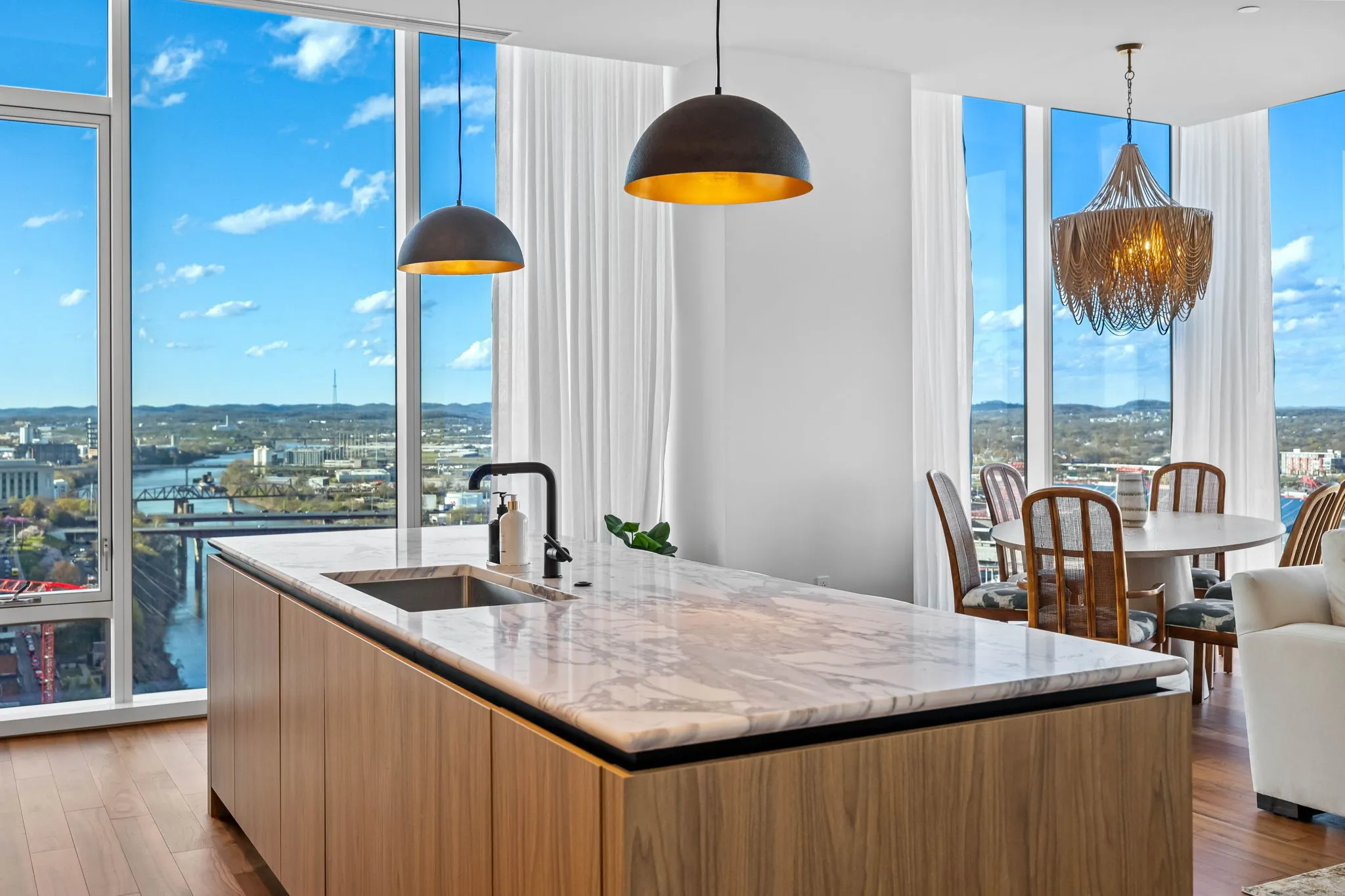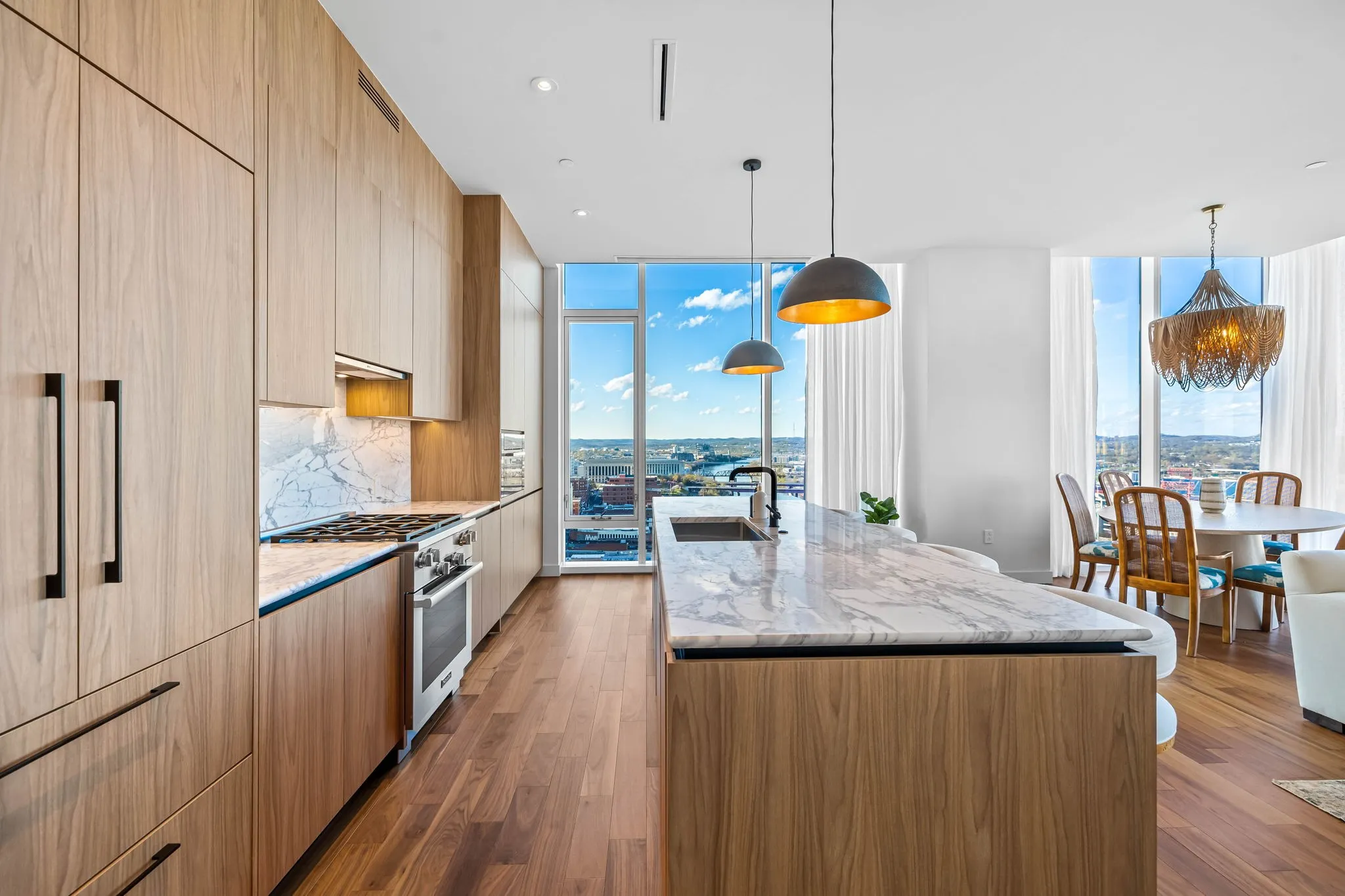 Experience the epitome of luxury living at The Four Seasons Residences. This rare, furnished corner unit on the 22nd floor offers stunning north east views. Floor to ceiling windows showcase iconic landmarks like the “Batman building,” the picturesque Cumberland River, and the majestic Nissan Stadium. Custom draperies at every window reveal the breathtaking views of downtown Nashville’s iconic skyline, while the spacious living area, adorned with designer furniture allows this unit to be completely turnkey. The unit features a spacious kitchen with honed marble countertops, top of the line Miele appliances, designer lighting and high end finishes throughout the condo. Indulge in the world-class amenities that Four Seasons is celebrated for, including concierge services, pet wash, fitness facilities, and spa services to name a few. Don’t miss this rare opportunity to own a piece of Nashville’s skyline, at Music City’s most iconic address.
