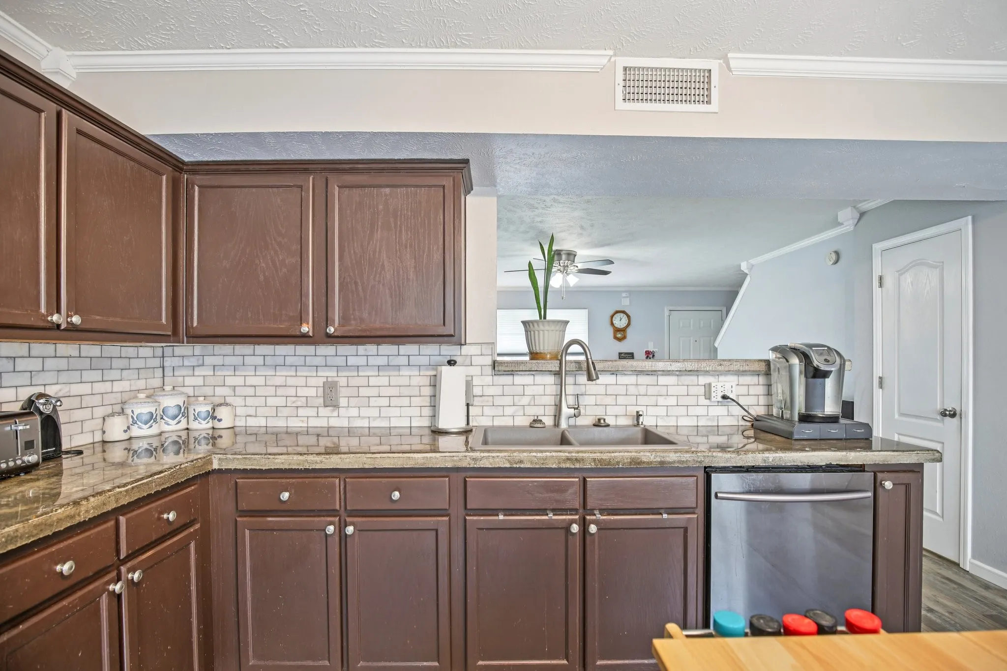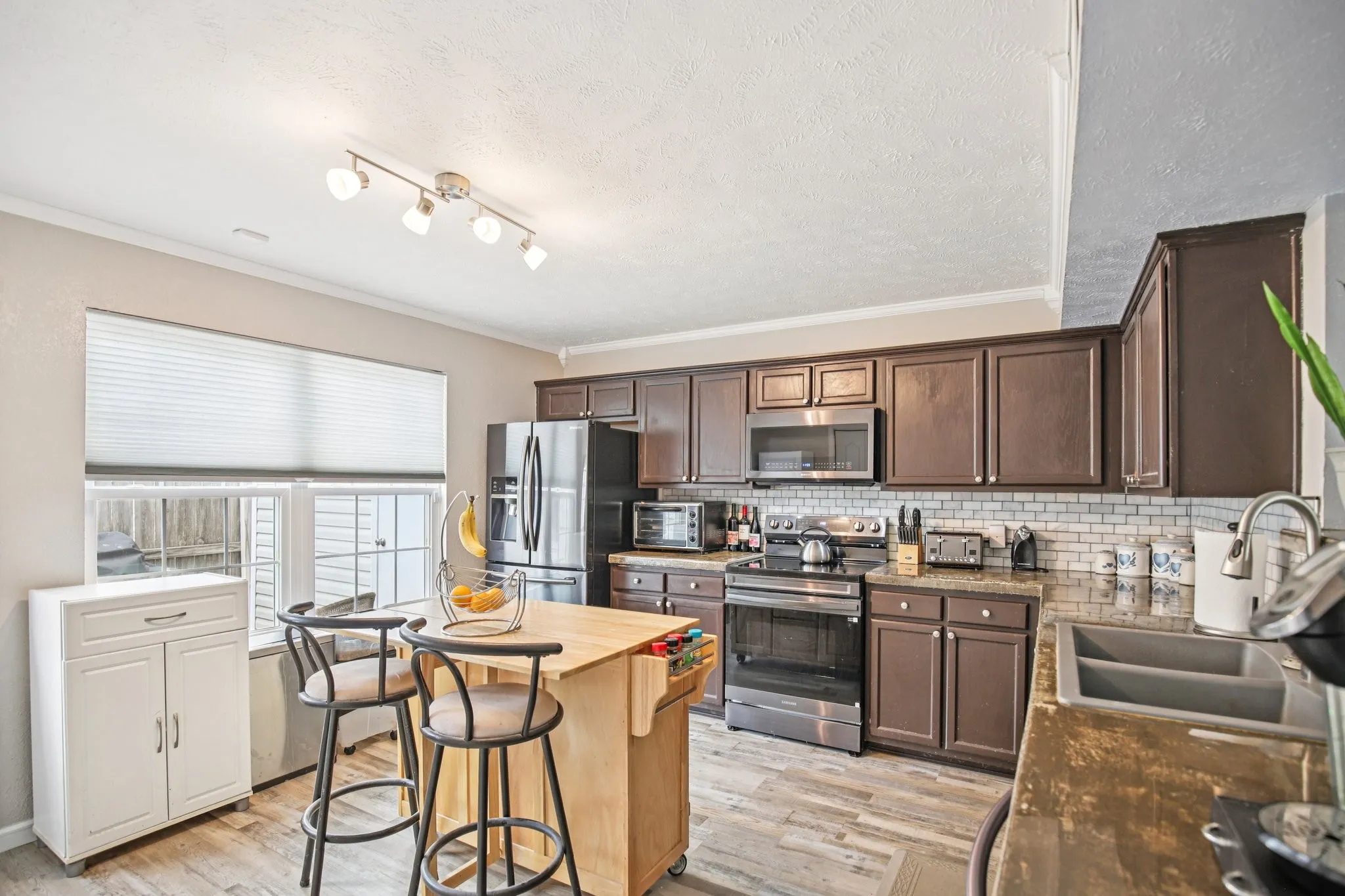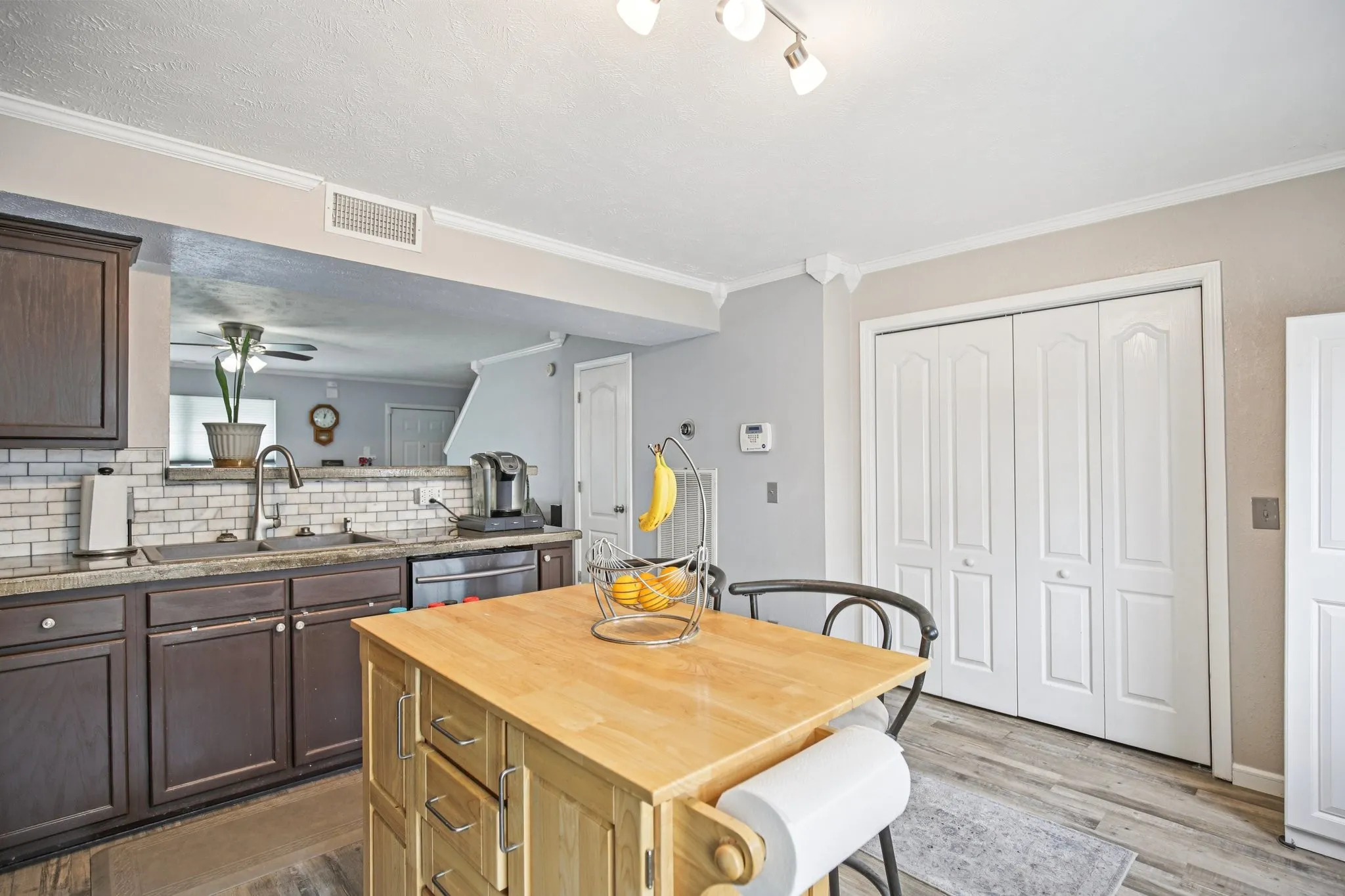 There are zero down loan products available (see lender flyer) and seller incentives with an acceptable offer! Call for more details. Stop renting! You don’t need a lot of cash to buy! Schedule a tour! Wonderful 2 bedroom, 2 full bath, 1 half bath townhome. Covered front porch. Fenced back patio area. Storage in back patio. Full bath and walk in closet in each bedroom. Both baths and walk in closets have been remodeled 2025. Custom built-in shelving in bedroom closets. Half bath under the stairs. Laundry closet in kitchen (washer dryer does not remain). New HVAC in 2023. All new windows with UV protection in 2025. New carpet in 2025. HOA installed new roof in 2022. Updated LVP flooring in 2024. Refrigerator in kitchen remains. Island/stools in kitchen can remain. Pantry cabinet next to back door can remain. Two dedicated parking spaces in front with extra/guest parking nearby. ADT alarm system. Programable HVAC thermostat has app control through wifi. 1 gig speed internet service available. Low HOA dues compared to most townhomes that covers exterior maintenance, trash pick-up and grounds keeping.