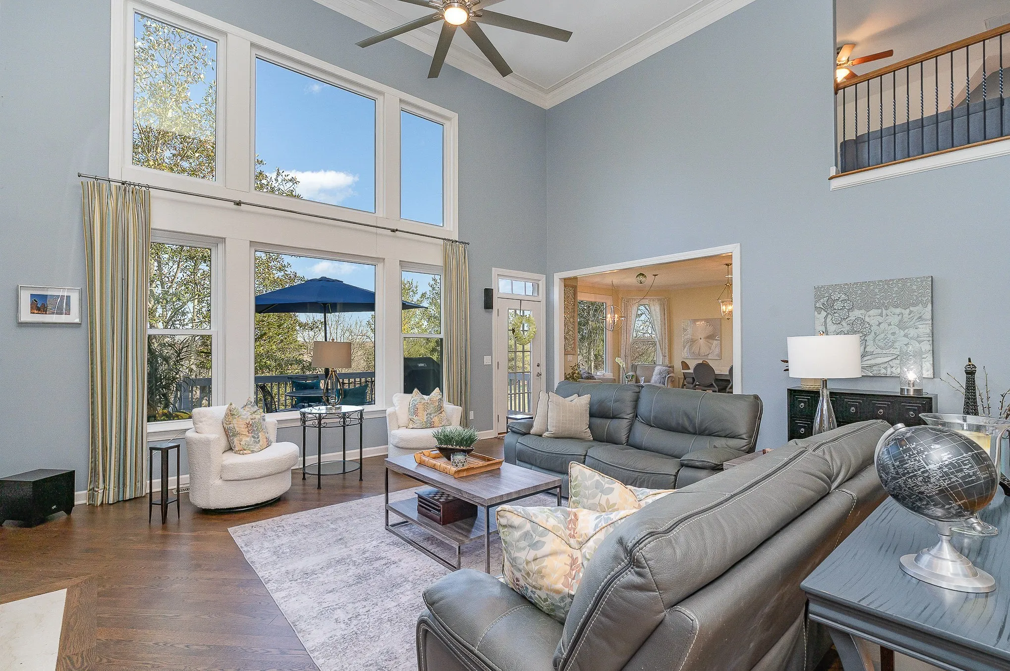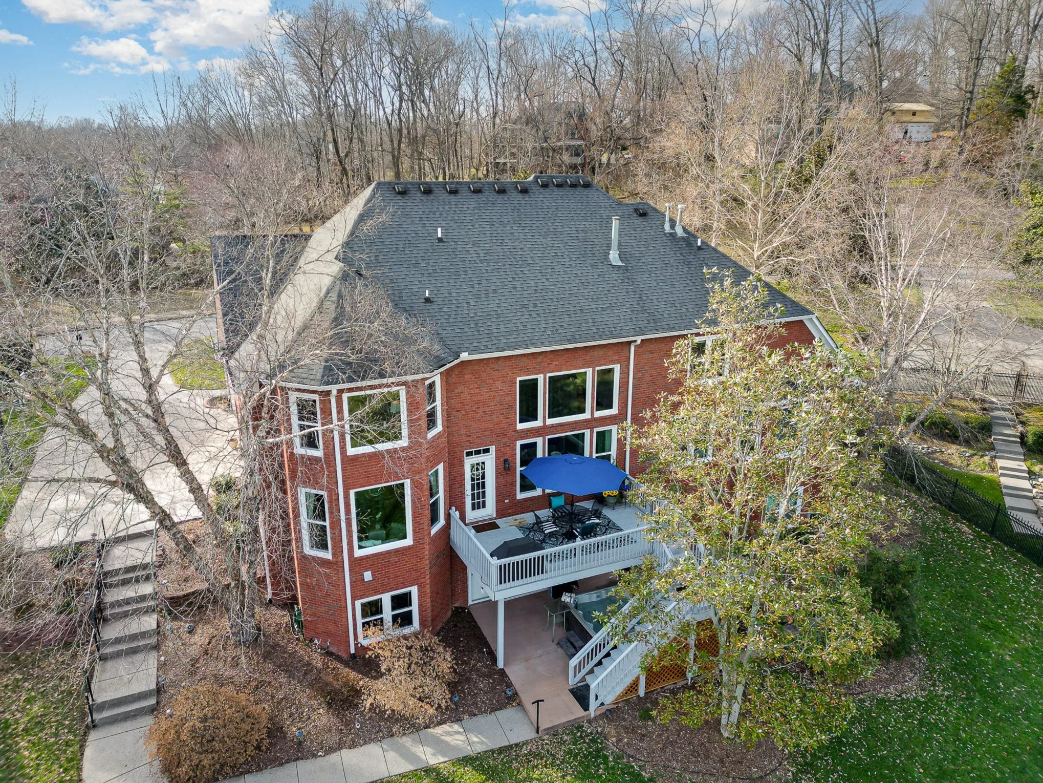 "LongDescription" => "An inviting outdoor perch features a table with an umbrella, providing the perfect spot to relax and enjoy breathtaking views of the lush greenery and expansive backyard."