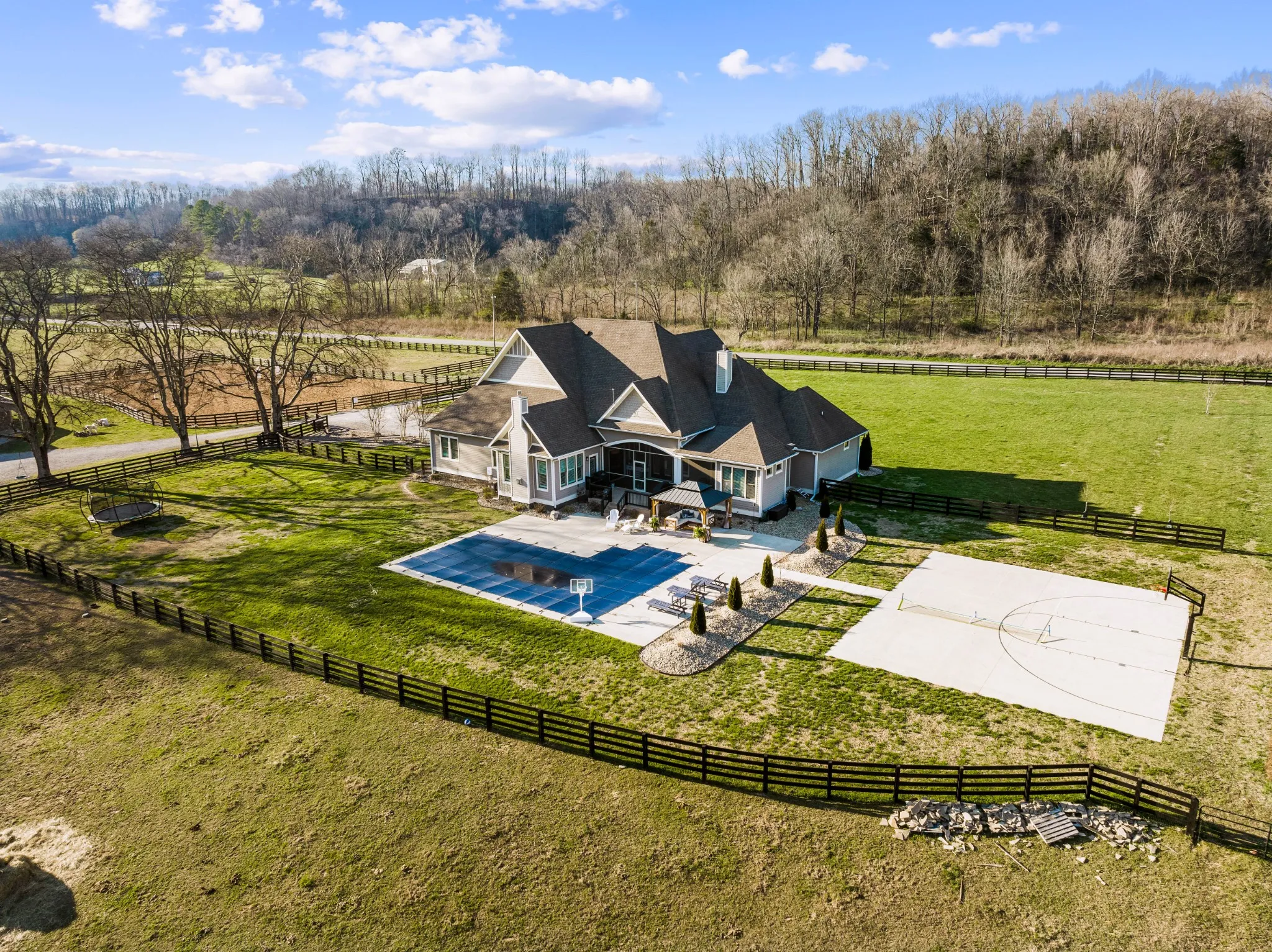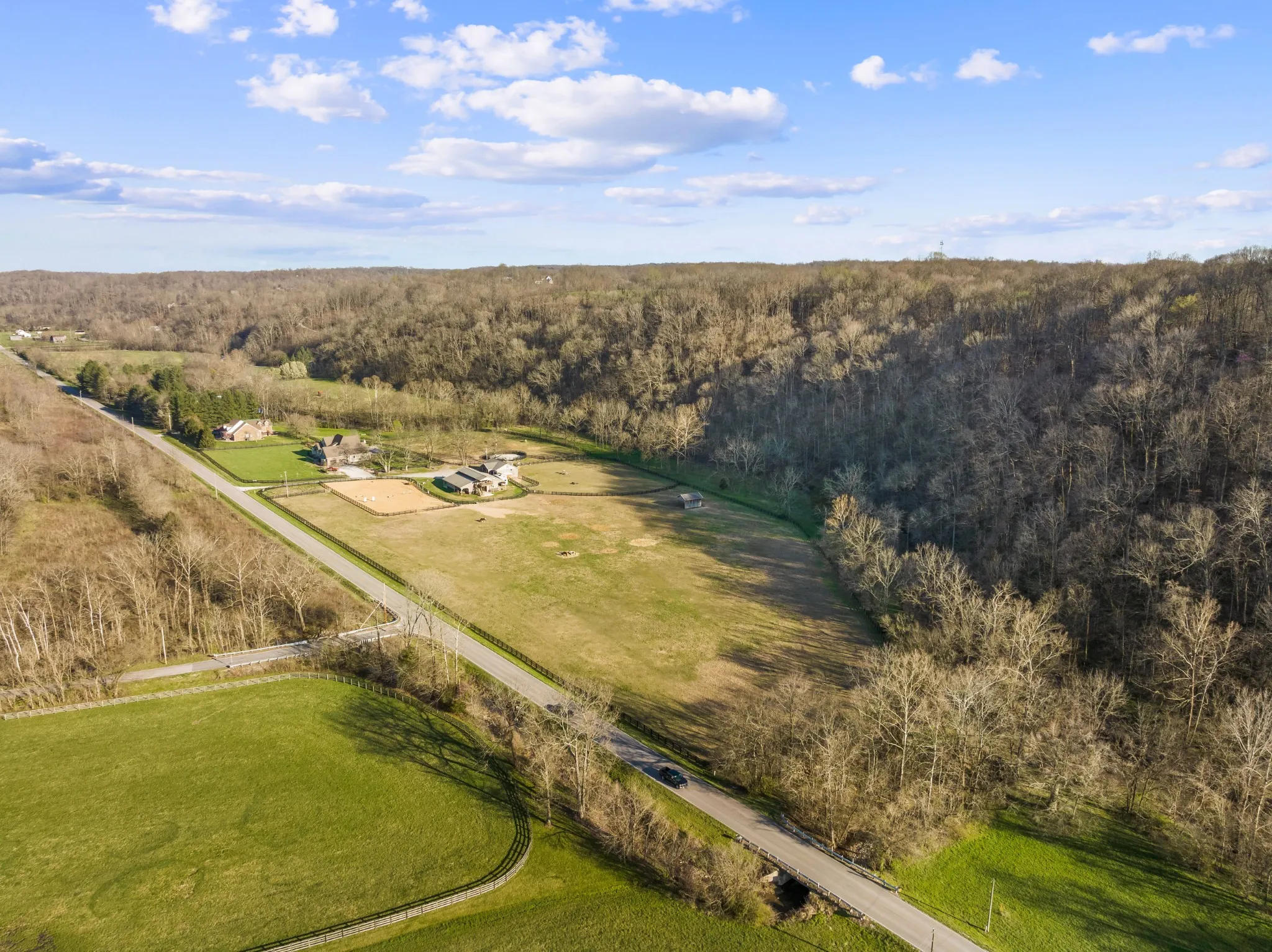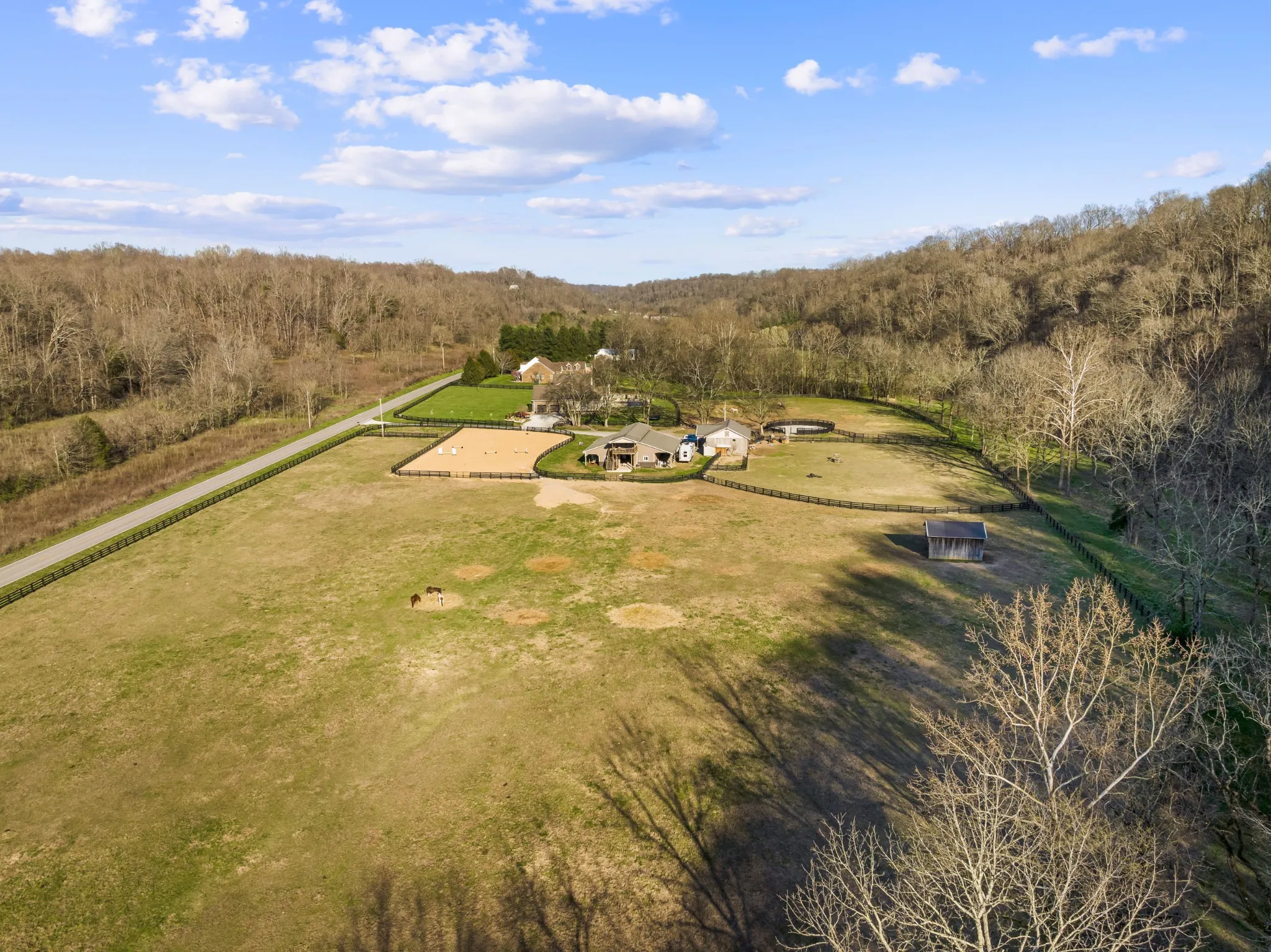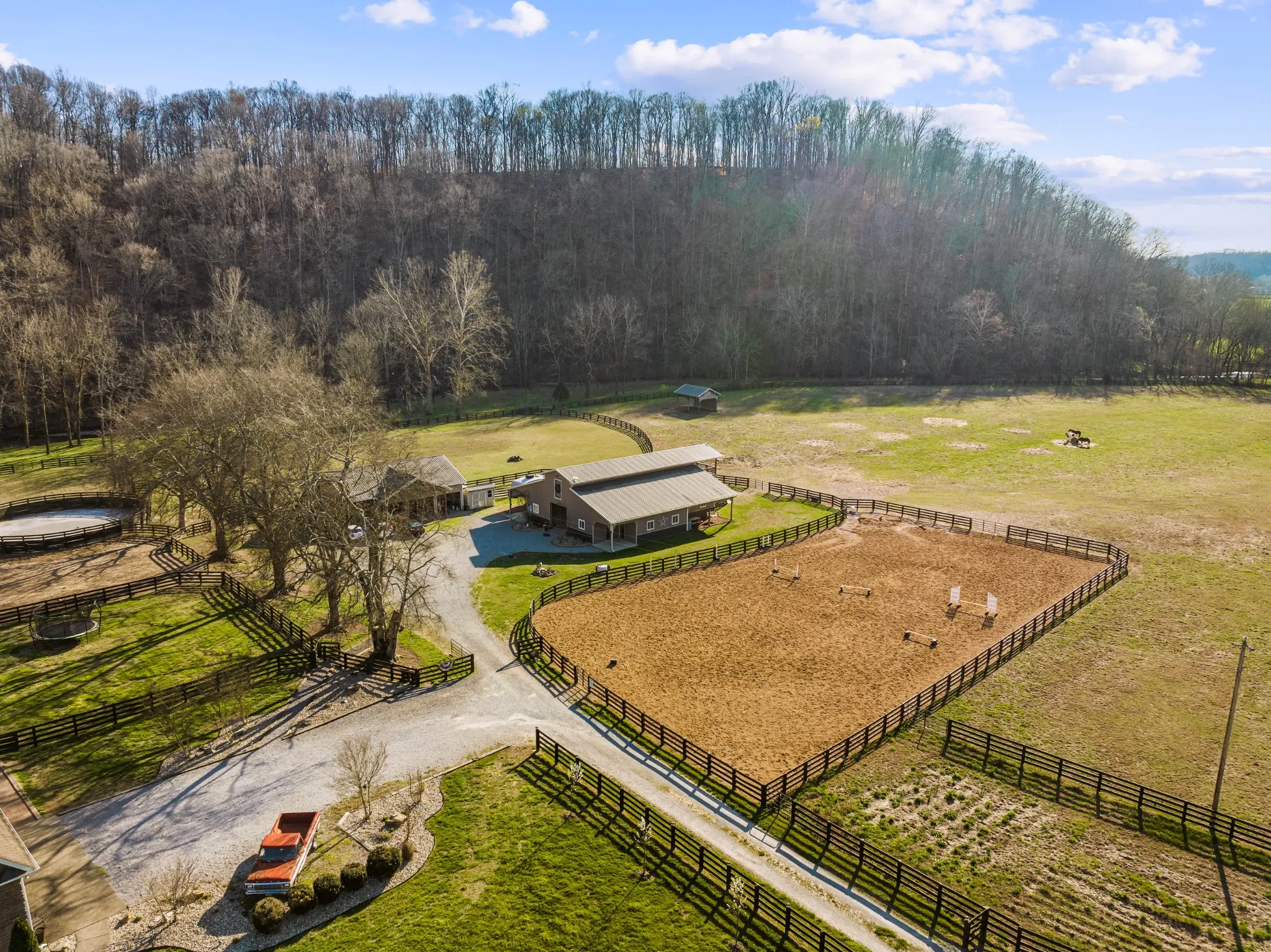 Nestled in a picturesque setting only 9 minutes from Historic Leipers Fork, your new Tennessee Equestrian Estate awaits you. This magnificent property boasts nearly 17 acres of land, with fenced and crossed fenced pastures, a round pen, an outdoor arena, multiple barns, a sprawling 4400 sq ft custom built home and a fully equipped, detached 1500+ sq ft apartment offering versatility for family, guests, in-laws, or caretakers. This combination of a rural mini farm setting and the main residence with an in-ground pool, basketball court and so much more is luxury living at it’s finest. The main residence has 3 luxurious bedroom suites, including the master, all with full bathrooms and walk in closets on the main level. Also features a formal office with a full bath that could be used as an additional bedroom on the main floor. Theatre room, screen porch, deck, patio, pool…Creek out back, fire pit, surrounded by a gorgeous natural landscape!See MLS:2633476 for more photos & info!