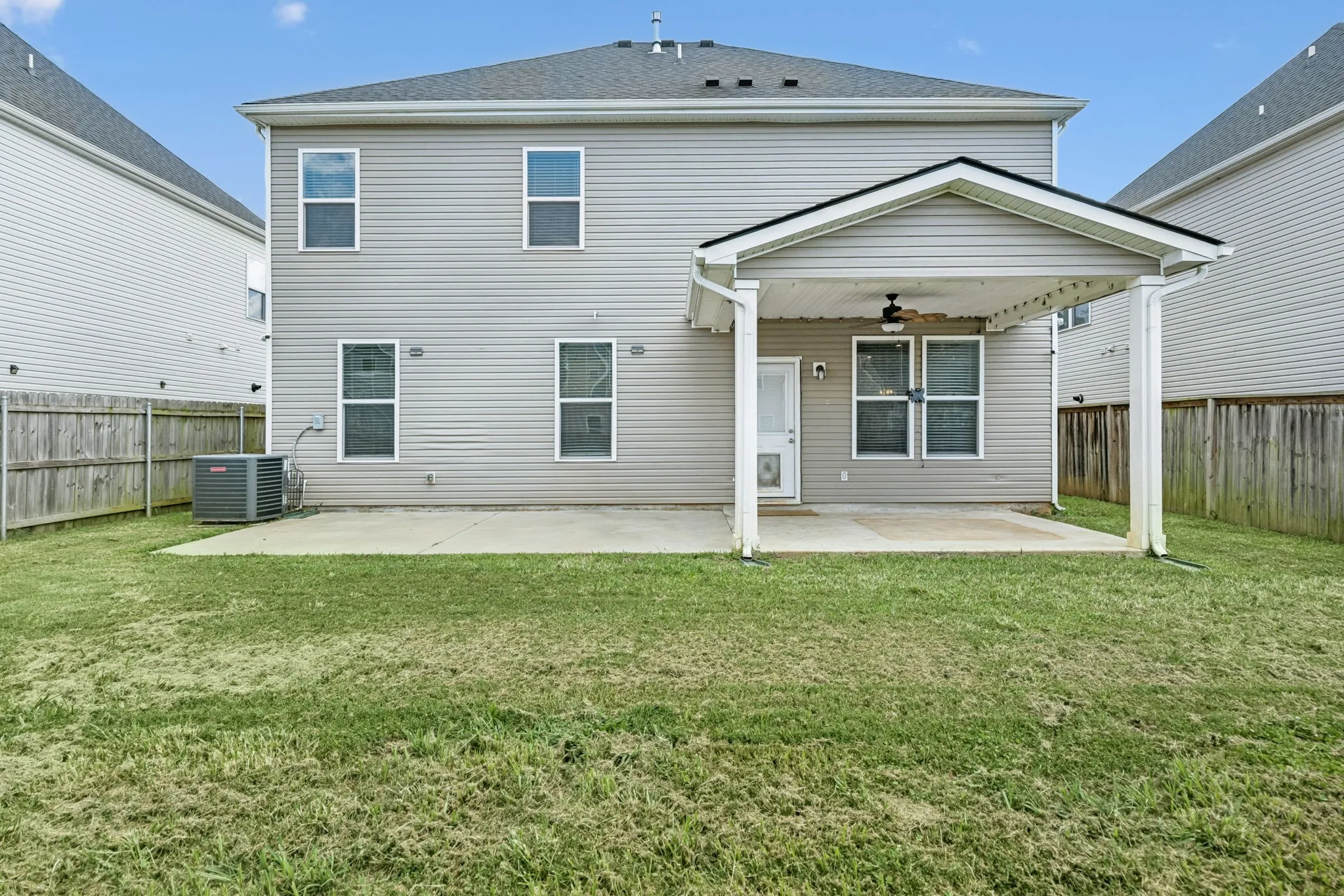 Step inside from the COVERED FRONT PORCH to find an inviting OPEN FLOOR PLAN and plenty of space to gather. The KITCHEN includes GRANITE COUNTERTOPS, an ISLAND, PANTRY, and STAINLESS-STEEL APPLIANCES—plus the REFRIGERATOR STAYS! The kitchen, dining, and living areas flow together and open to a PARTIALLY COVERED EXTENDED CONCRETE PATIO, complete with a PRIVACY-FENCED BACKYARD.