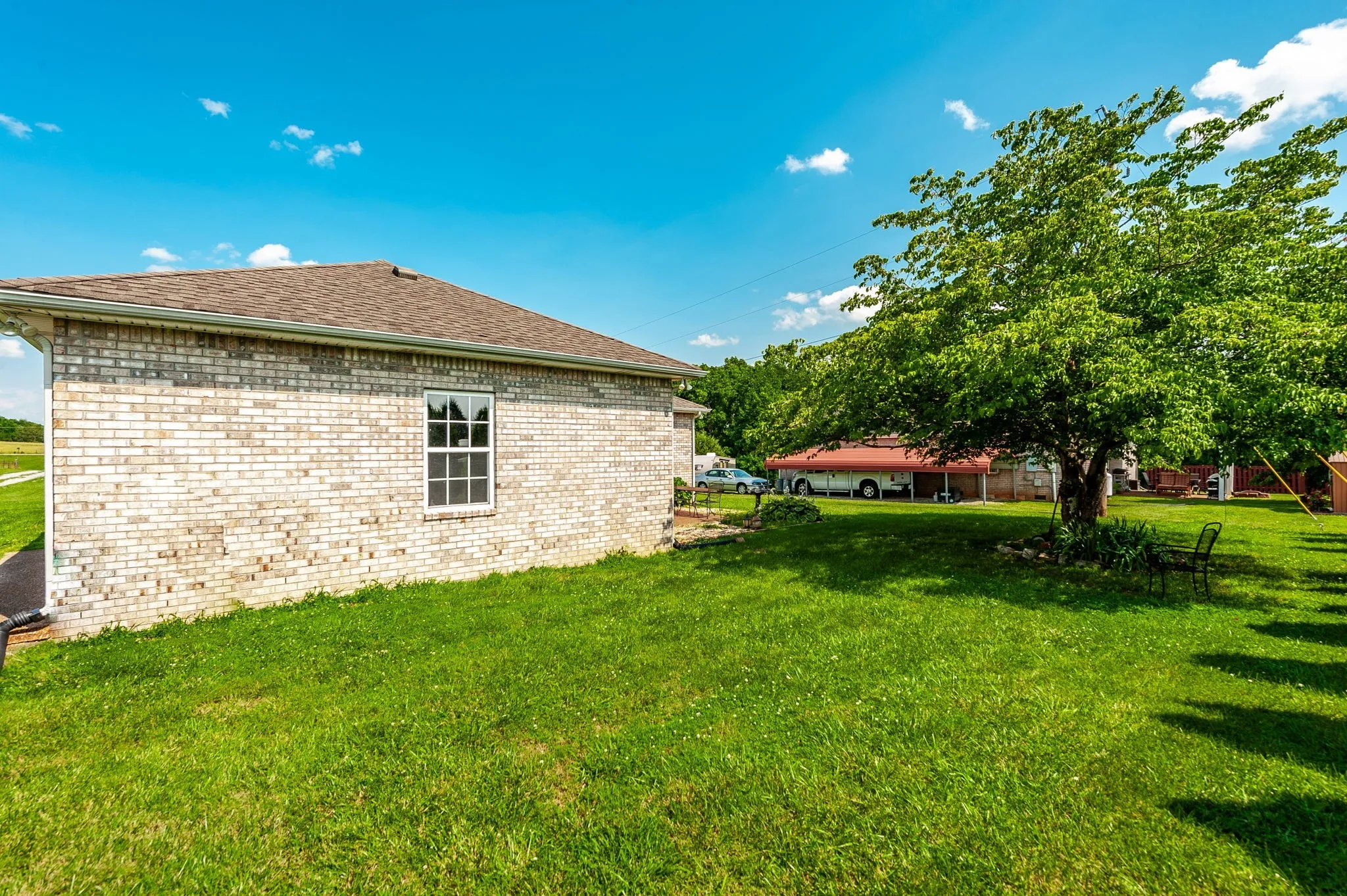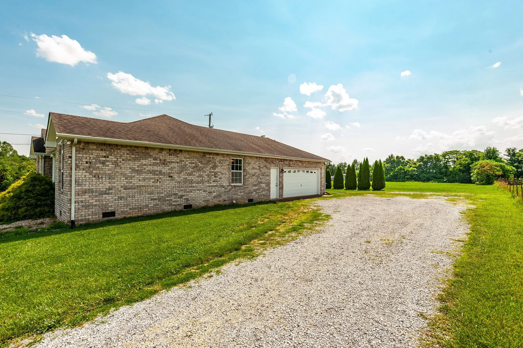 This charming all-brick, single-level home features three bedrooms and two baths, including a comfortable primary suite with a private ensuite. The split floor plan offers both functionality and privacy, while soaring vaulted ceilings enhance the open, airy feel. A spacious two-car, side-entry garage provides ample parking and storage, and with no HOA, you have the freedom to truly enjoy your property. Situated on 1.34 acres, this home offers plenty of space and peaceful surroundings. Schedule your private tour today!