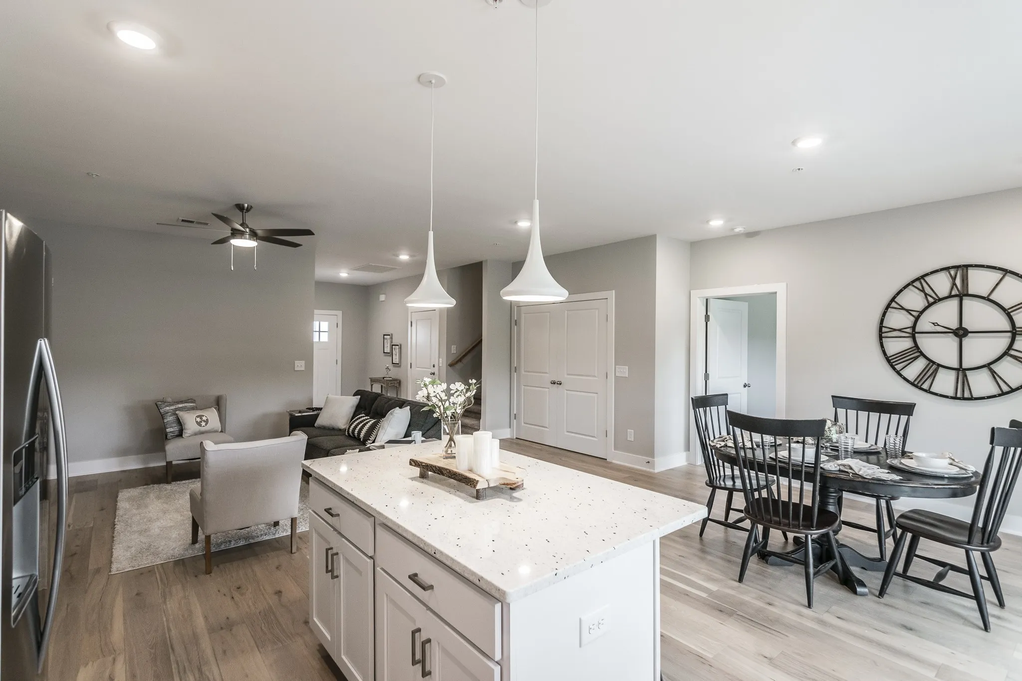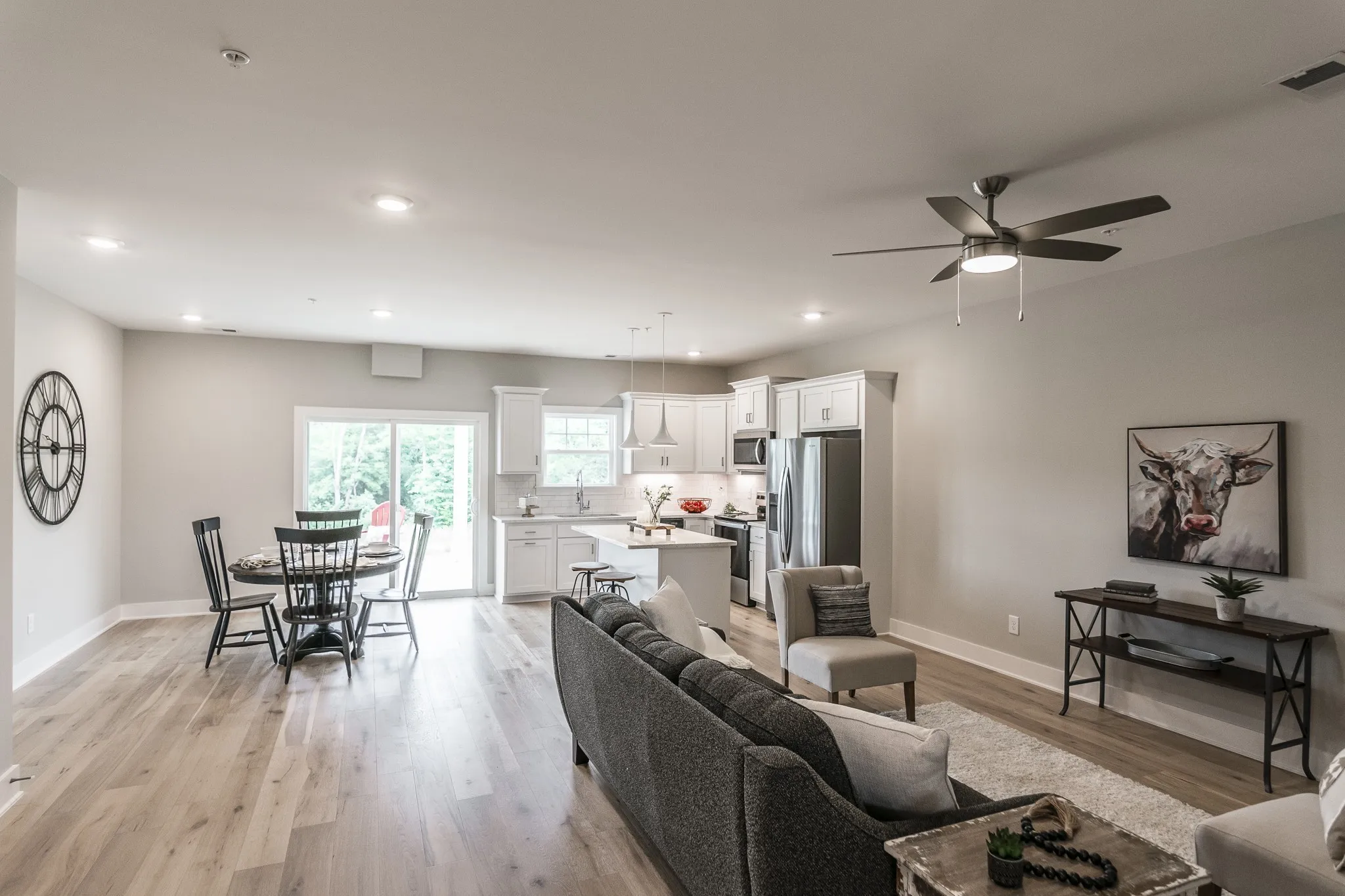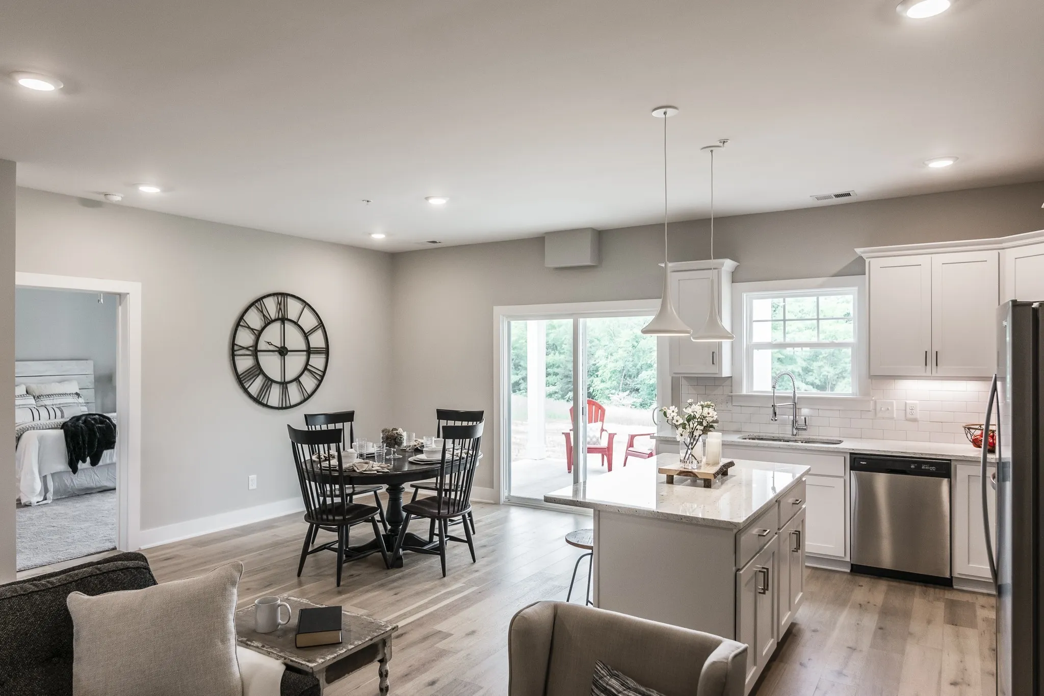Lakefront community walking distance to docks at Gallatin Marina, Awedaddy’s Bar & Grill, and Freedom Boat Club! Brand new construction with 2 bedrooms & 2 bathrooms on the main level! Primary suite on main level with large walk-in closet & spa like bath! Upstairs you have an additional guest bedroom, a full bath, & large bonus/flex space. Amazing open floor plan with upgraded finishes. Boaters dream home, walk out your back door right to the lake! Granite counter tops in the bright white kitchen along with stainless appliances. LVP flooring in 1st floor common areas, exterior landscaping includes sod and irrigation system for front yards maintained by the HOA. Large 12×10 covered patio for relaxing quiet evenings or morning coffee. This home backs up to a beautiful wooded common area. The unit pictured here is similar but not exact.