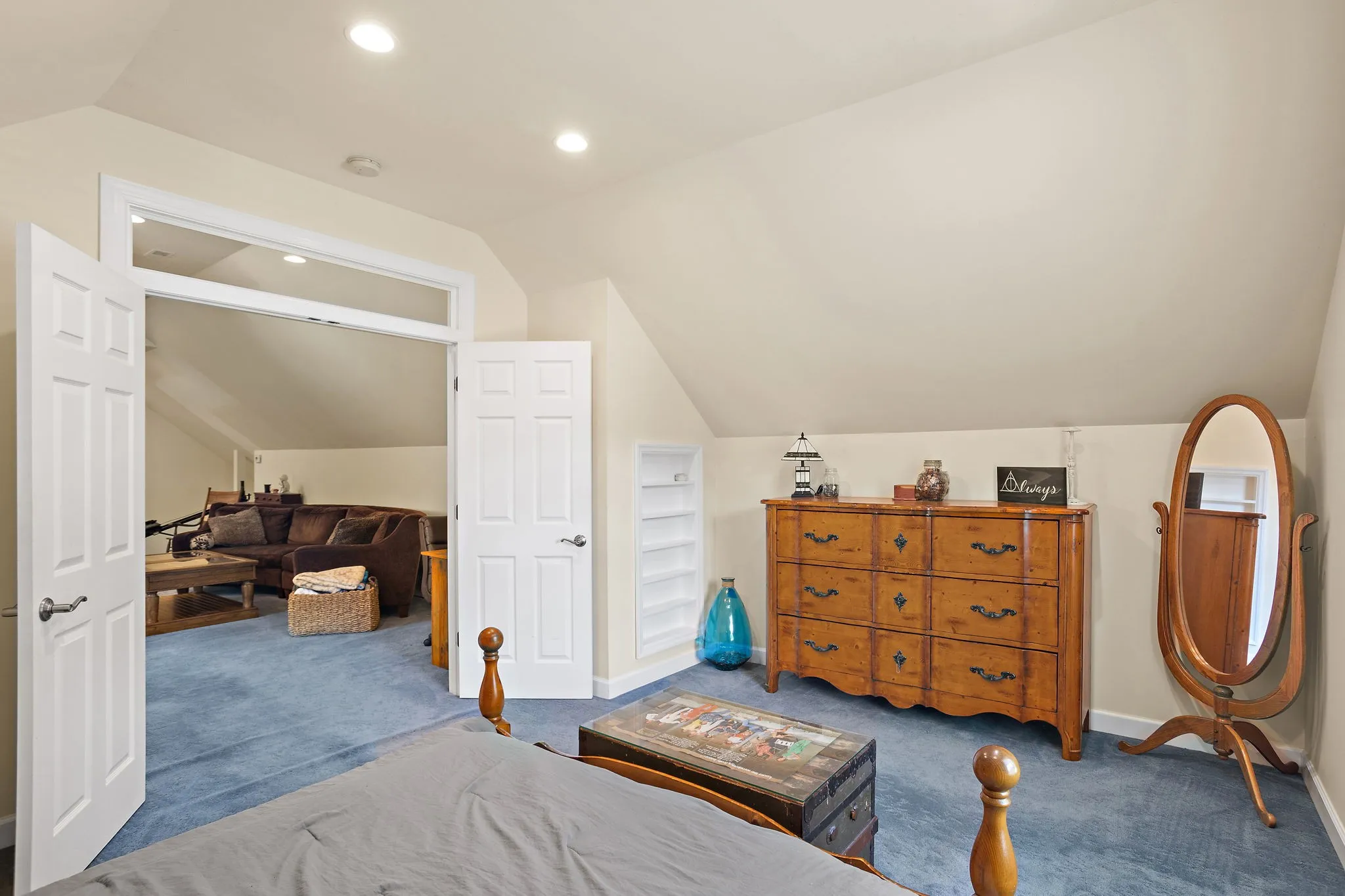 Inside, you’ll find over 2,700 square feet of finished living space that lives larger than it looks. An updated kitchen with quartz counters, subway tile backsplash to the ceiling, and abundant counter space flows easily into the cozy living room with a fireplace. The primary suite is an owner’s retreat with custom lighted closets, and a luxurious bathroom offering dual vanity, quartz counters and a walk-in shower. Upstairs gives you even more space to spread out in the huge bonus room with a wet bar and flex room that serves perfectly as an office, hobby space, or 4th bedroom. And even more flex space abounds in the finished basement – including a sauna room!