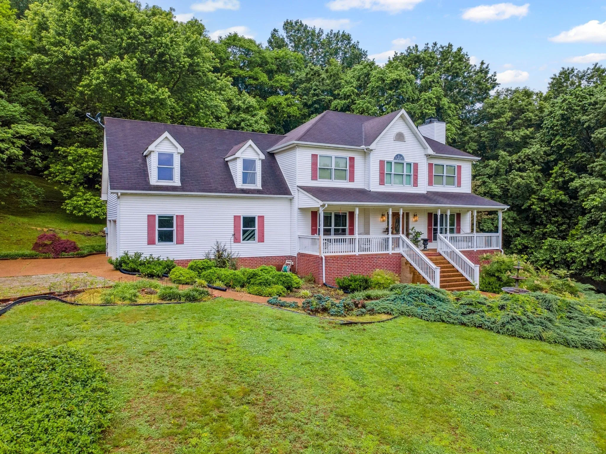 with huge bonus room and 3 bedrooms, 3 baths. Bonus room is presently used as a 4th bedroom. Surrouded by majestic old trees and gorgeous blooming foliage. Large barn and storage Picture your self in the front porch swing on a summe r’s evening, enjoying your favorite beverage… Life will be GOOD! Plenty of room for vegetable and/or flower garden on this lush 17+ acre property. Go ahead and catch some fireflies at dusk…for good luck, you know! Make your own heart warming memories here with friends & family. Be sure to see the resident horse that lives in the barn!
