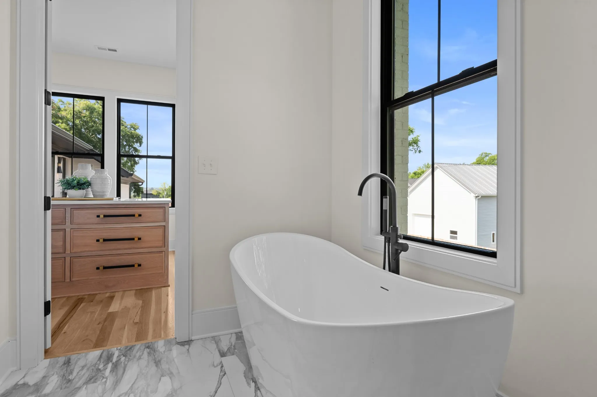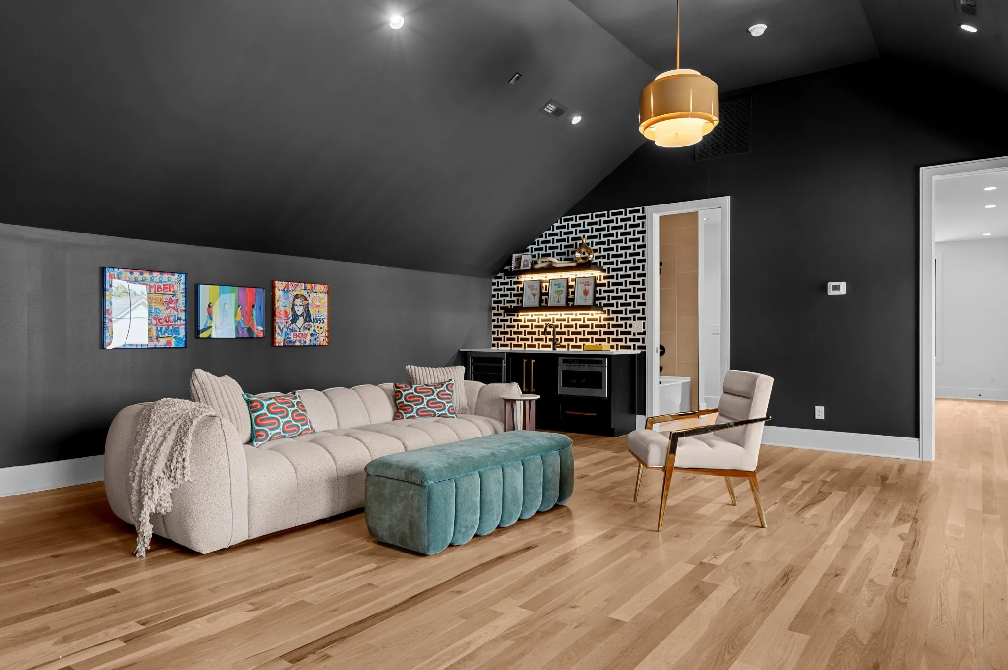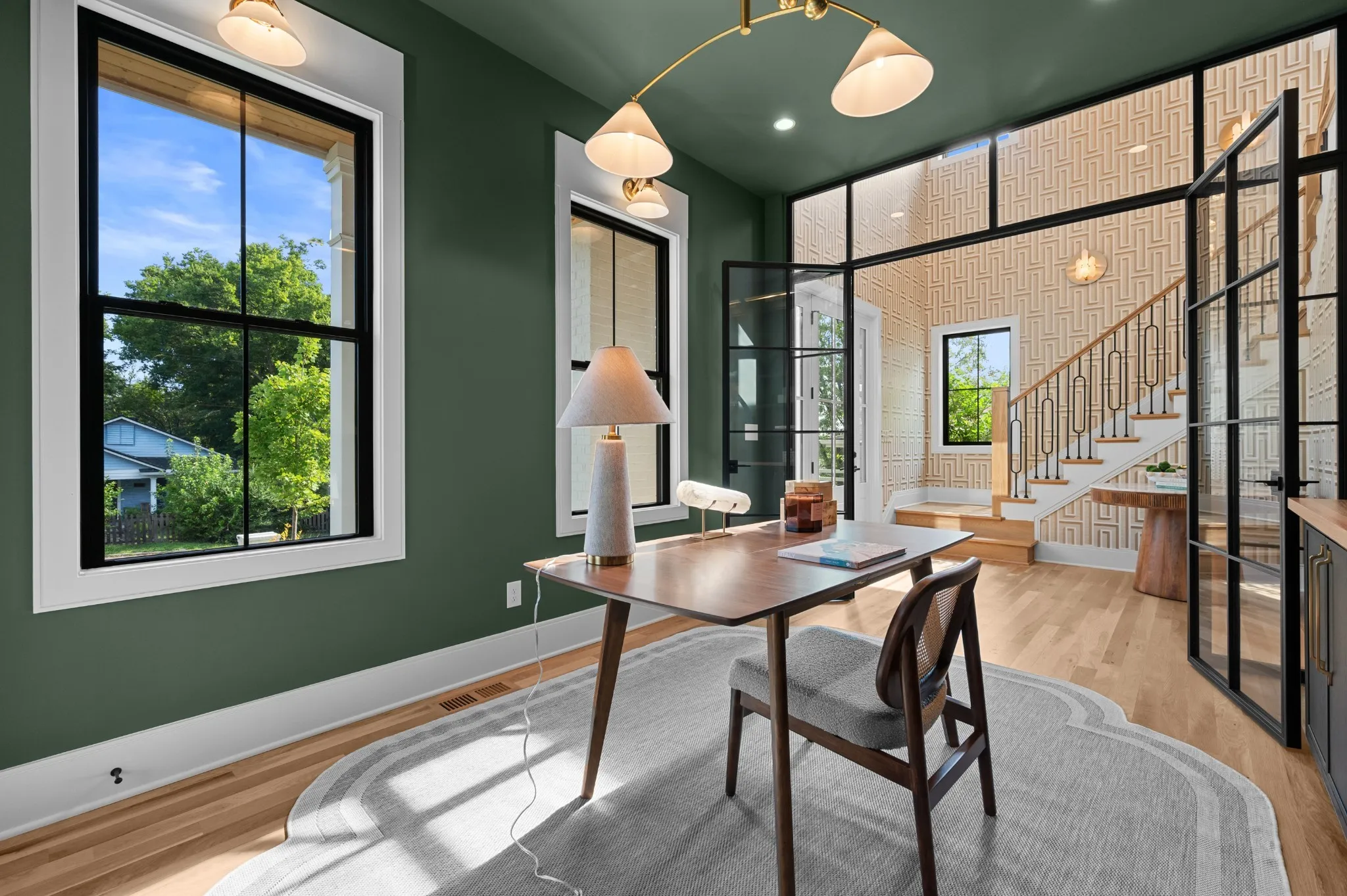 Southern elegance meets modern convenience in this corner lot gem. The wrap-around two-story balcony invites relaxation, while the backyard oasis features a serene pool, sun deck, and a screened-in porch with a fireplace. Inside, enjoy a chef’s kitchen with high-end Monogram appliances and a spacious living area. The office, accessible from the front porch, is ideal for remote work. The primary suite, with its French-inspired millwork and herringbone floors, offers a luxurious retreat. White oak cabinetry enhances the primary bath, and a bonus room with pool access via a spiral staircase provides additional space. Located in a walkable neighborhood, you’ll have dining and shops just steps away.