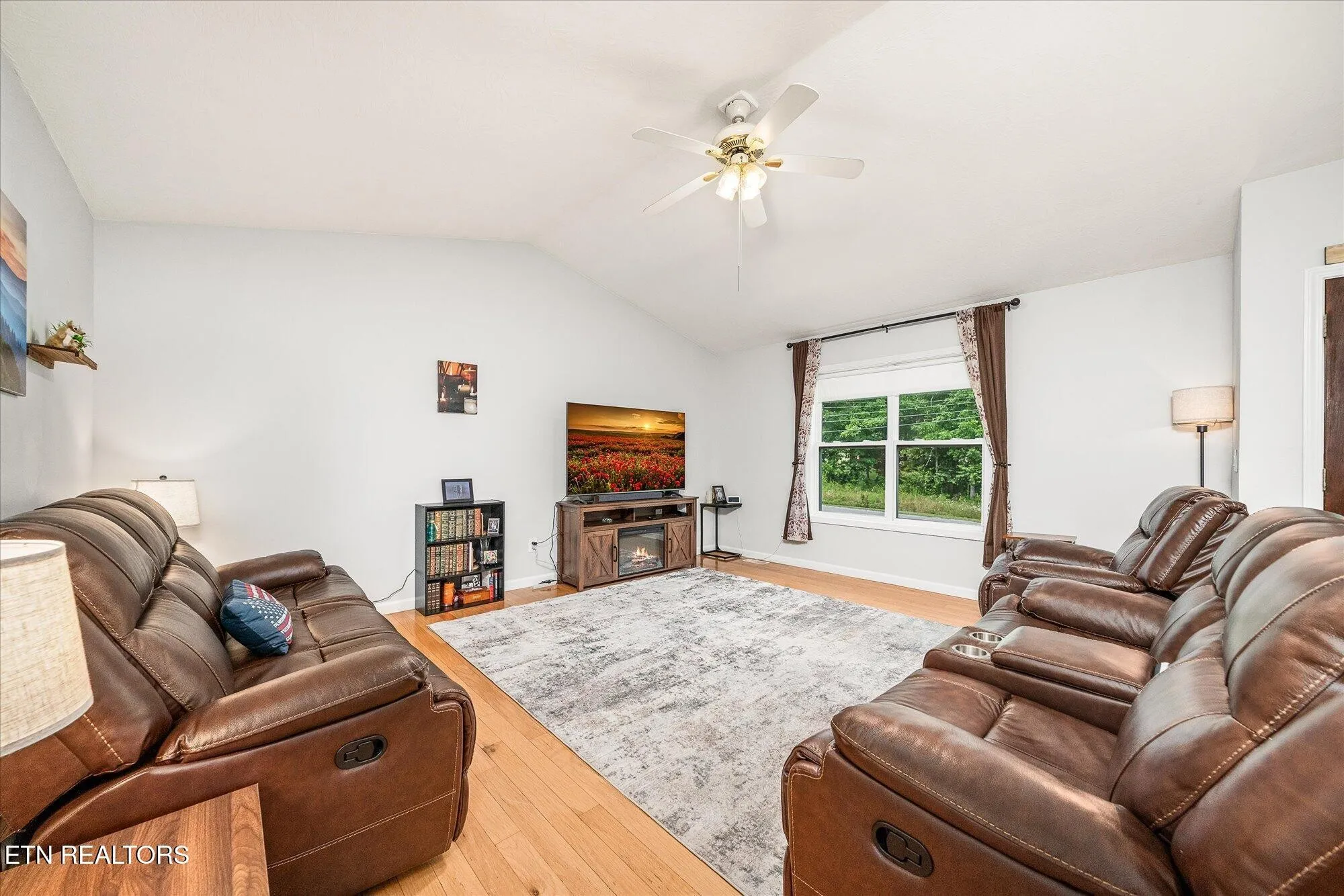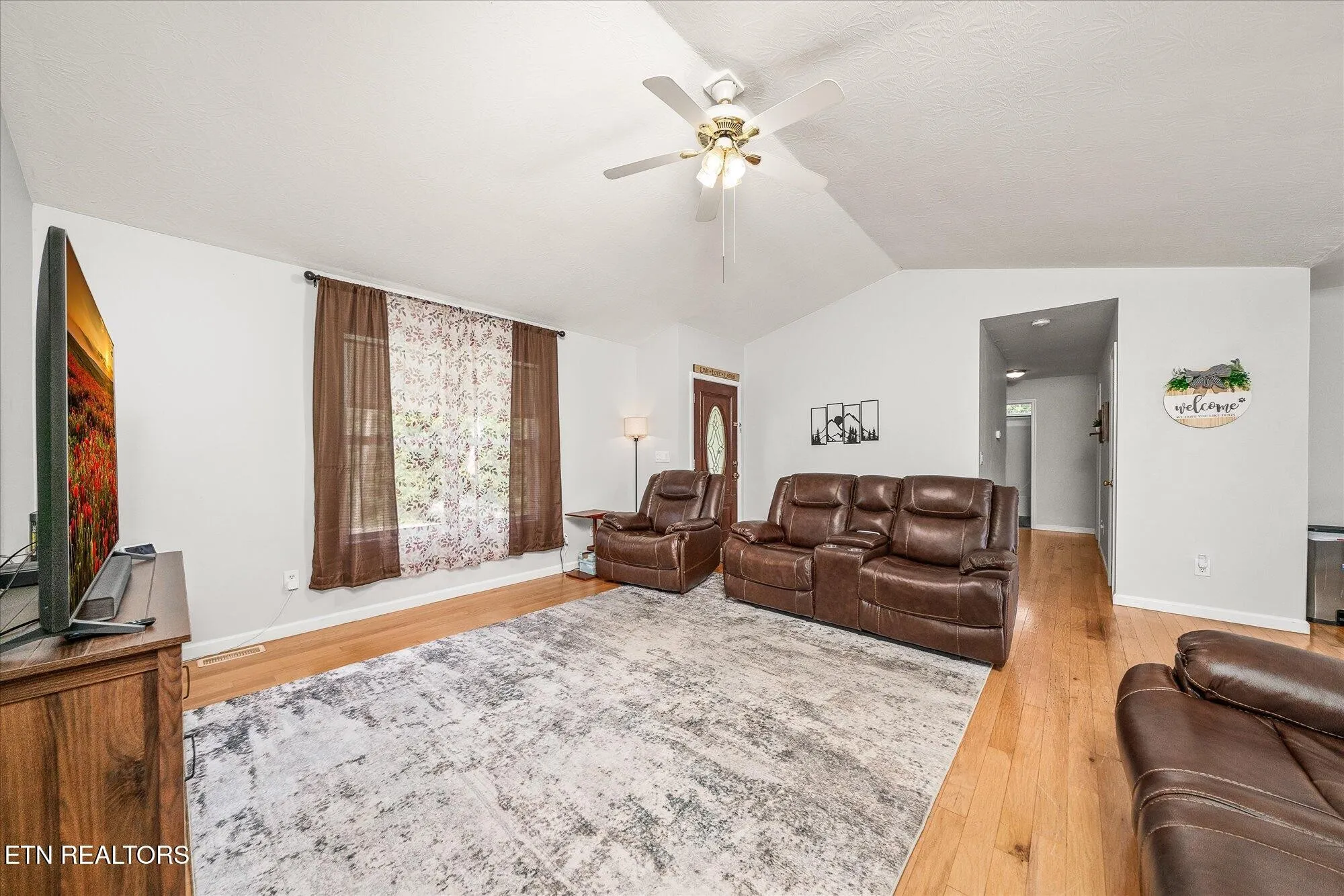 *Living area with hardwood floors and vaulted ceiling