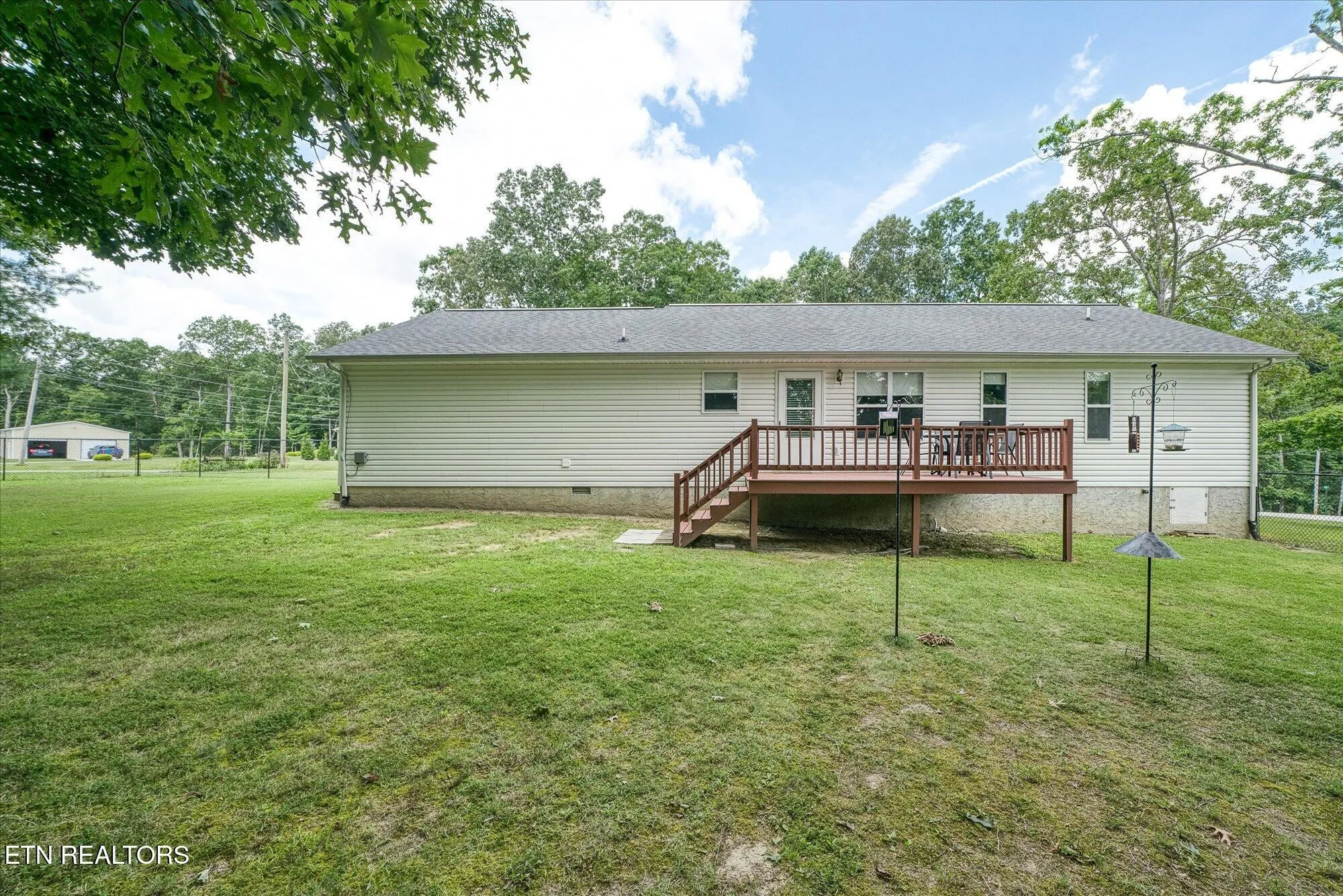 *Level backyard with 5 ft fencing and newly painted deck
