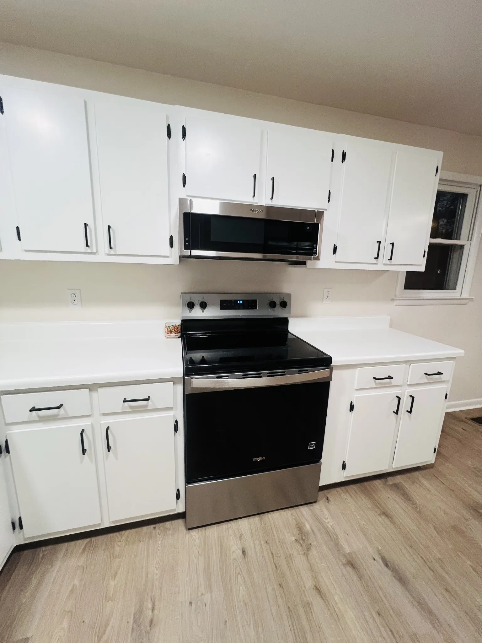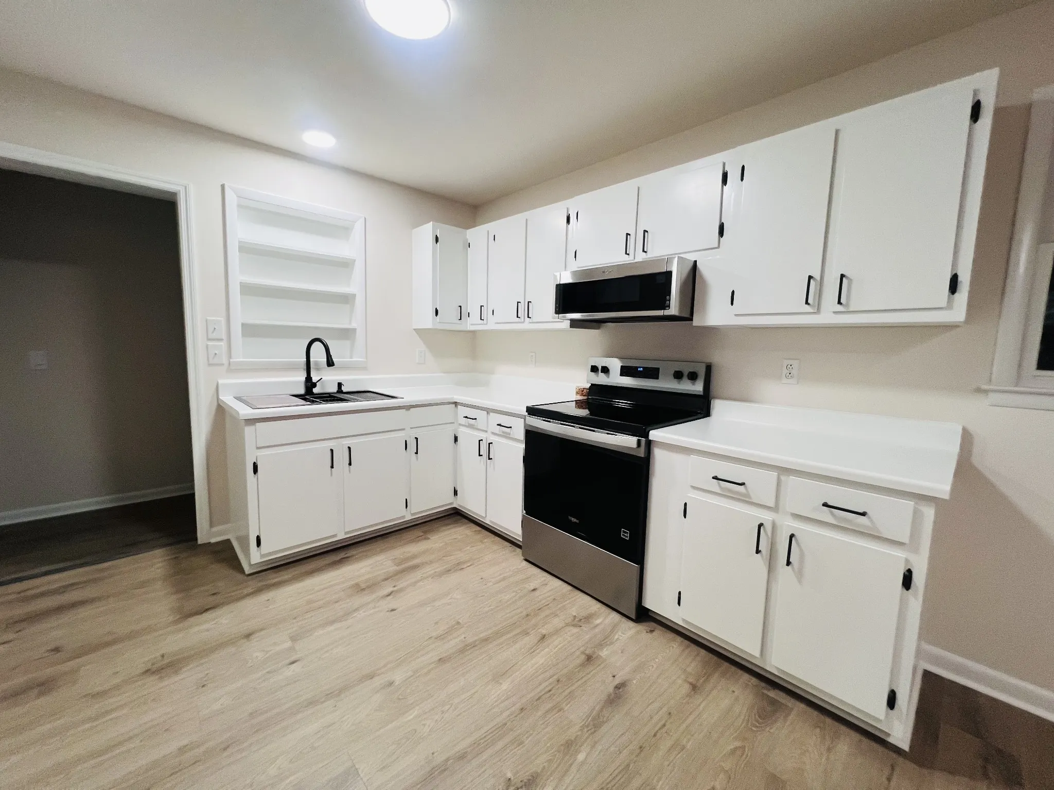 New stainless steel appliances, including refrigerator.