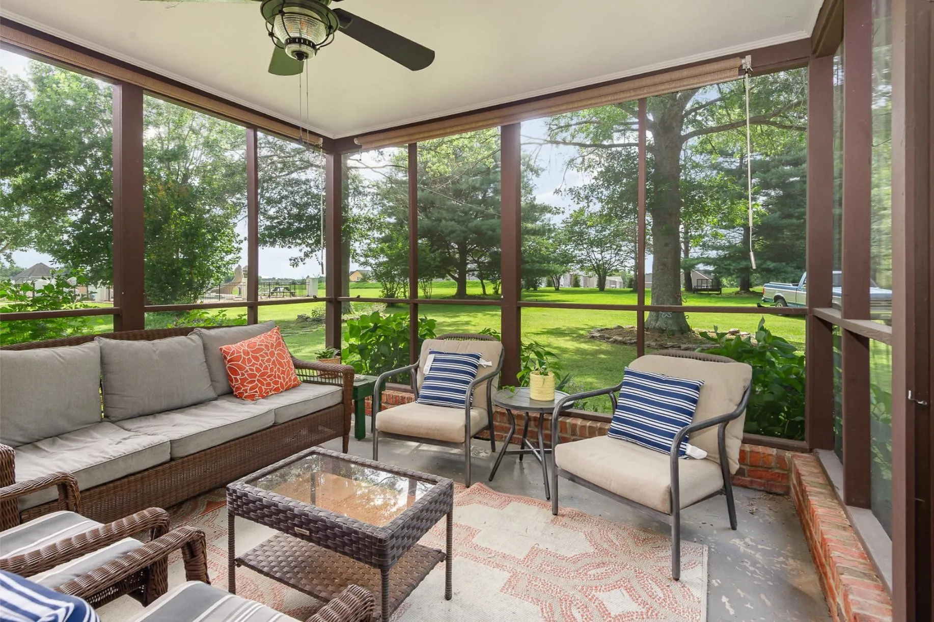 EXTREMELY MOTIVATED SELLER! Offering $10,000 towards a 2/1 Buy Down or Closing Costs with a full-price offer!! PLUS AN ONE YEAR Home Warranty! Welcome to this Stately All-Brick Beauty, perfectly situated on nearly an acre of private, tree-lined land! Offering over 3,500 square feet of beautifully maintained living space, this home features three spacious living areas, Two Luxurious Primary Suites (one on the main level), Soaring 10-foot ceilings, rich millwork, fresh paint, and brand-new carpet and flooring. The heart of the home is the kitchen and family room, seamlessly connected to the bonus room by a unique stairway, while a grand front entry and elegant back staircase with gleaming hardwoods add timeless charm. Relax on the screened porch overlooking a peaceful patio retreat, complete with lush landscaping and a **sprinkler system. Additional highlights include gas heat with cozy gas logs, a neutral color palette, and kitchen appliances that remain—making this home truly Move-In-Ready.