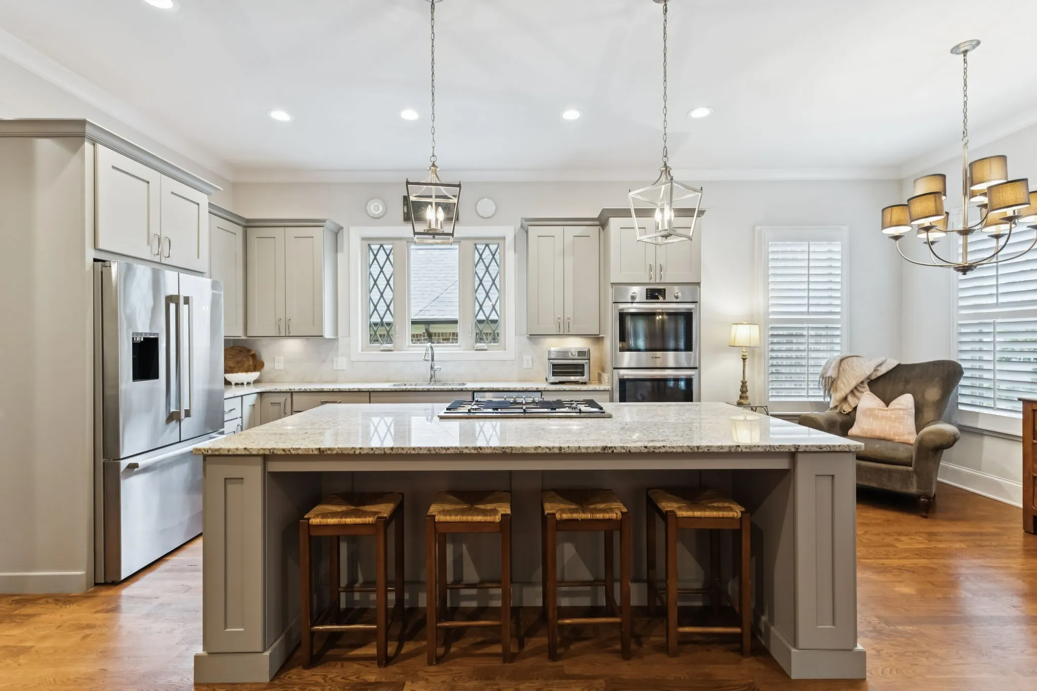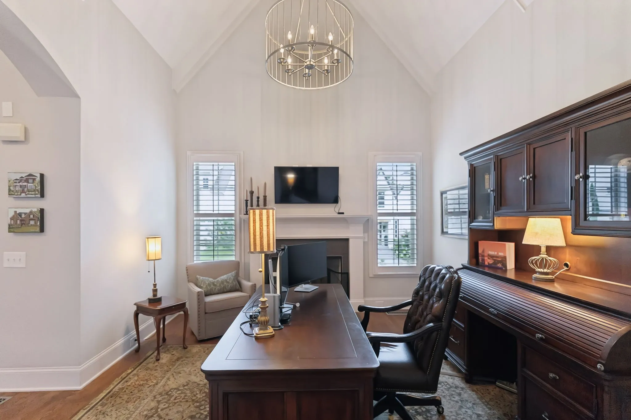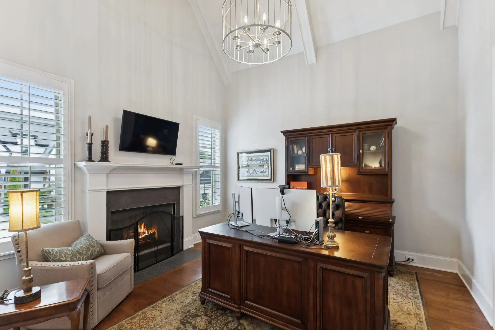 Step inside and you’ll immediately notice the attention to detail — from the diamond leaded windows and plantation shutters throughout to the soaring ceilings and three fireplaces (yes, three!). The home features a media room, bonus room, and even an unfinished attic for future expansion or storage.\n