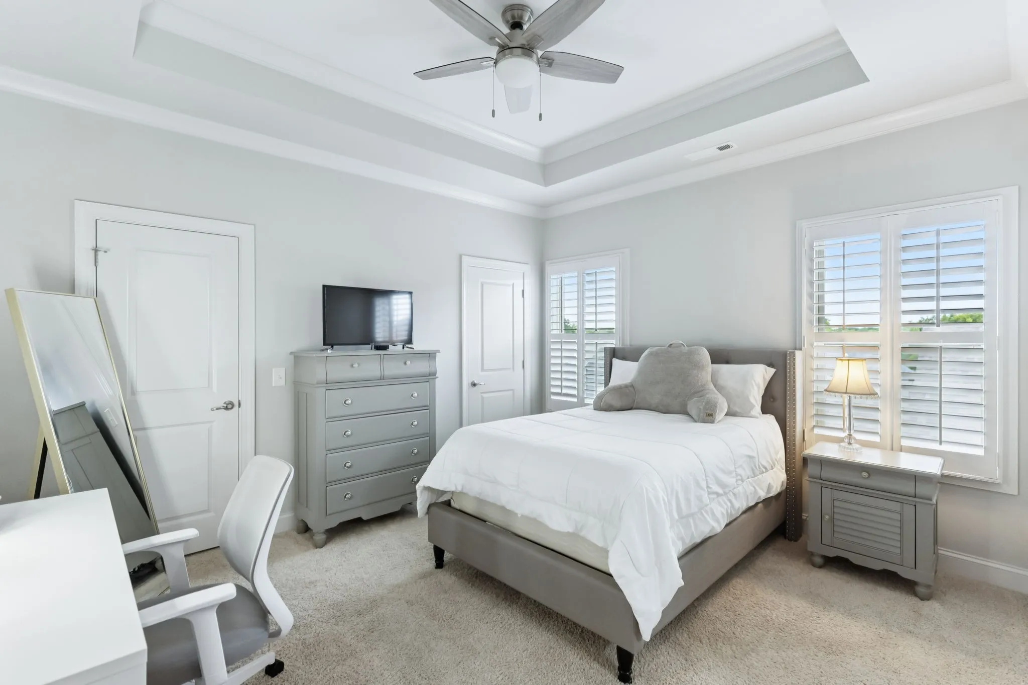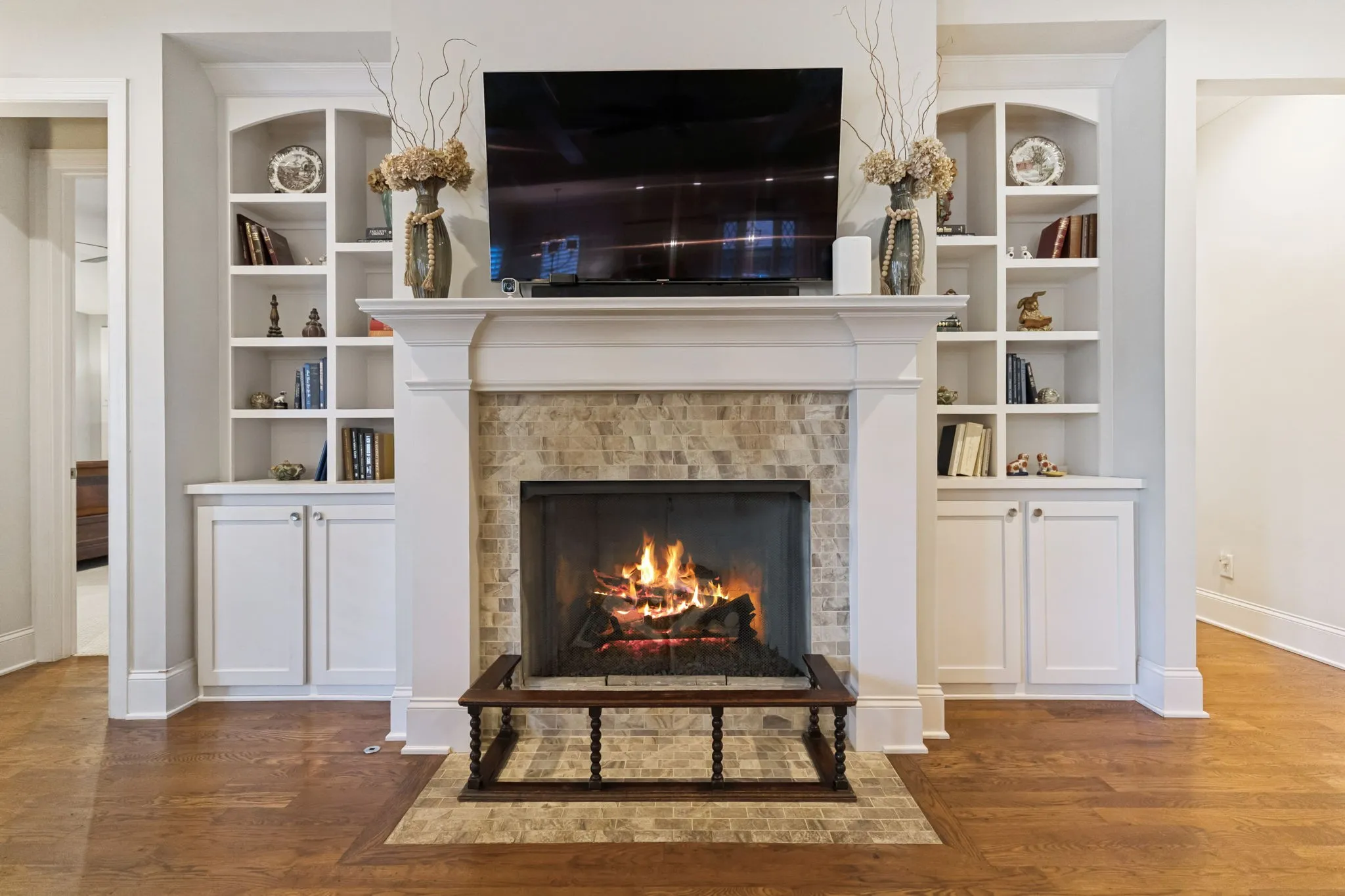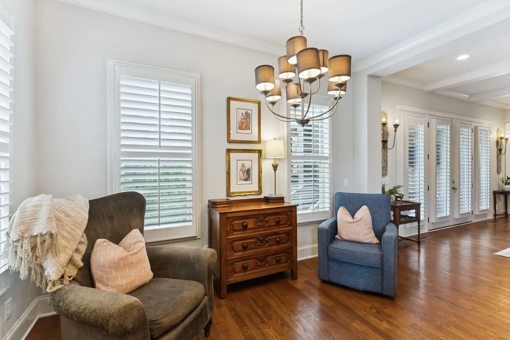 Step inside and you’ll immediately notice the attention to detail — from the diamond leaded windows and plantation shutters throughout to the soaring ceilings and three fireplaces (yes, three!). The home features a media room, bonus room, and even an unfinished attic for future expansion or storage.\n