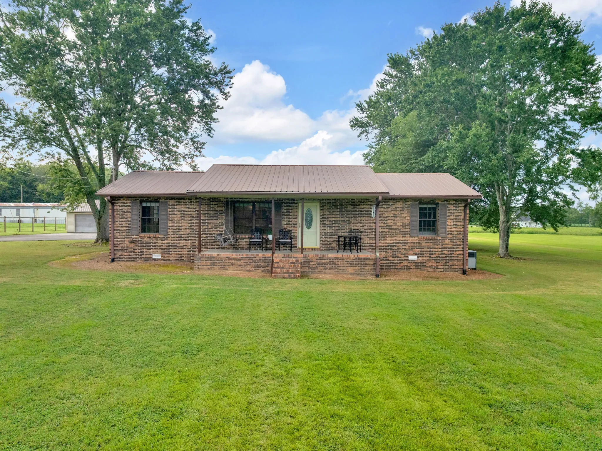 Welcome to this updated 4-bedroom, 3-bath all brick ranch situated on 5 acres just outside the city limits of Tullahoma. This spacious home offers two full primary suites, each with its own private bathroom, making it ideal for multi-generational living or hosting guests. Inside, you’ll find hardwood floors throughout, an updated kitchen with a gas stove, a gas fireplace in the main living room, and an additional large living area perfect for a family room, game room, or home office. A generous laundry room adds extra functionality.