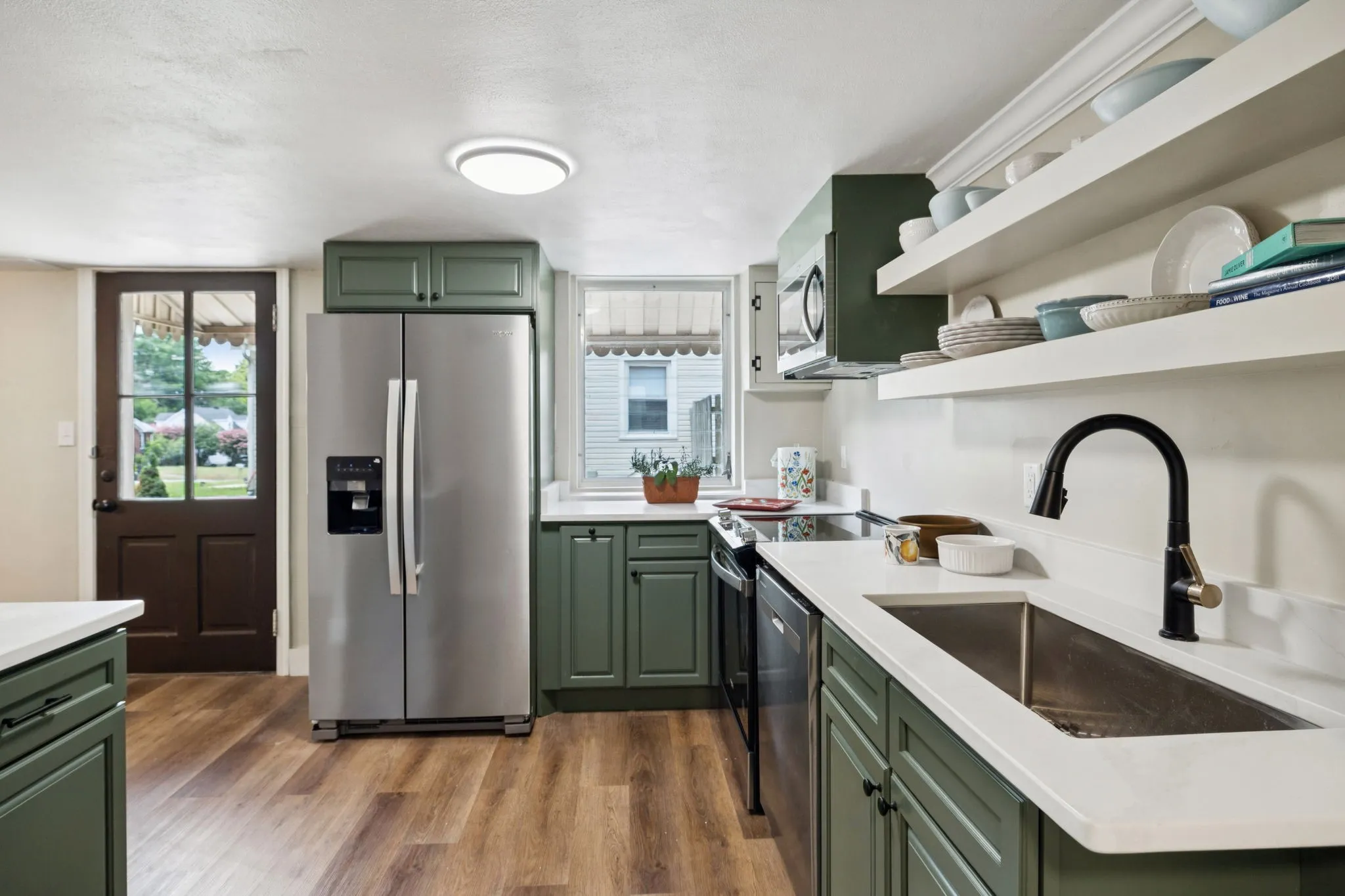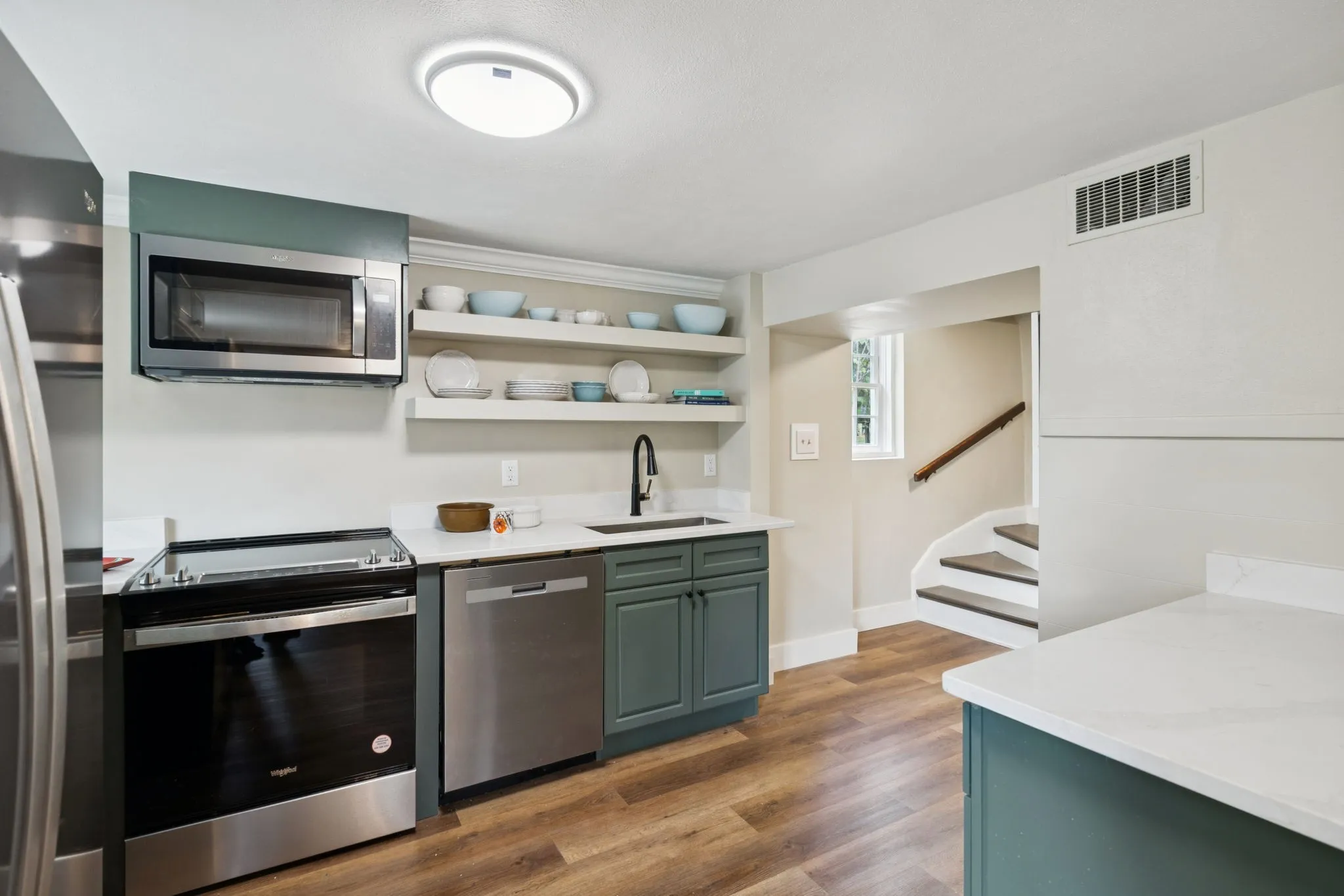 Walk From Your Private Driveway into the Show-Stopping Open Kitchen and Enjoy Elevated Style and Character with Brand-New Cabinetry, Quartz Countertops and All New Stainless Steel Appliances; New Washer & Dryer; New Hot Water Heater!