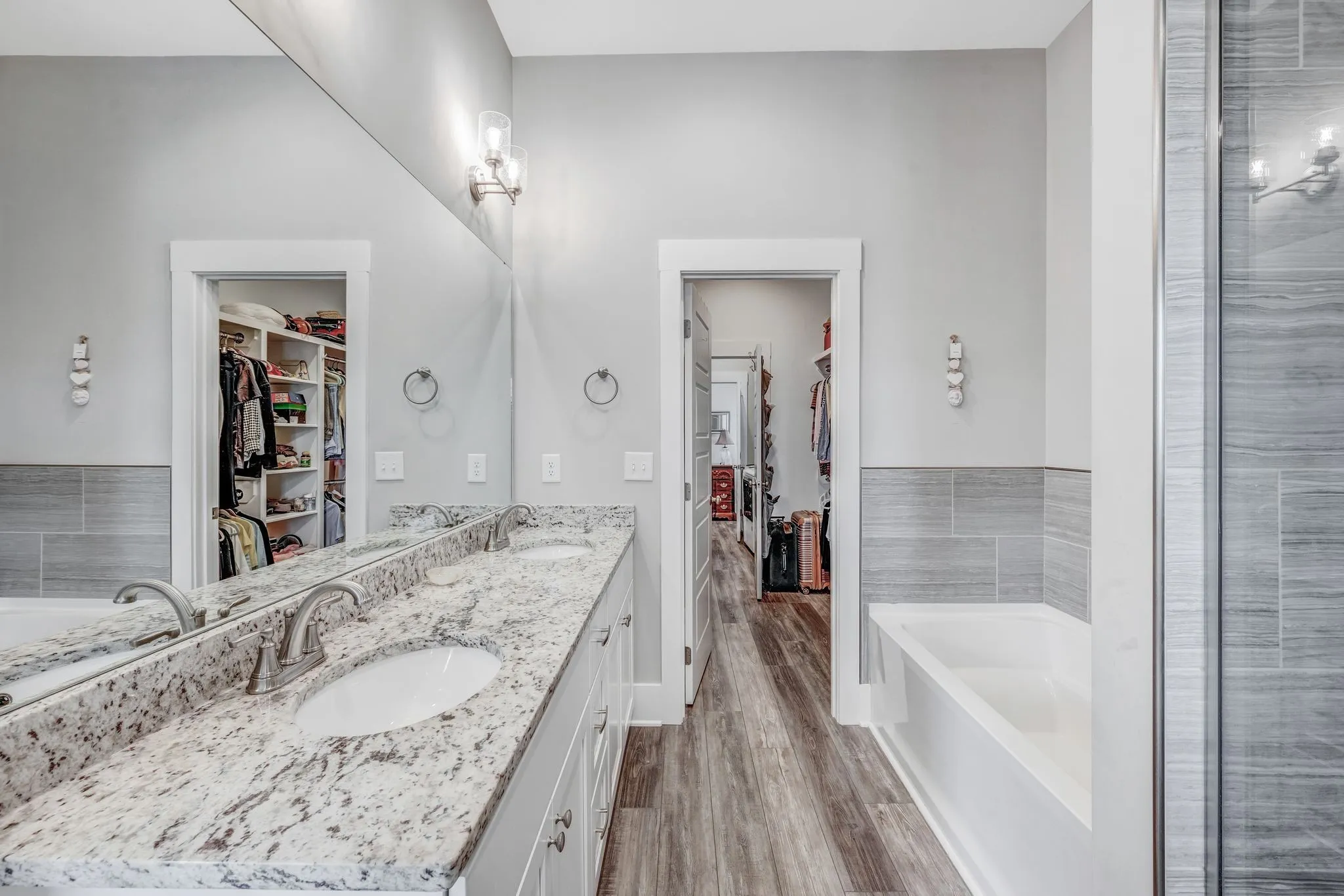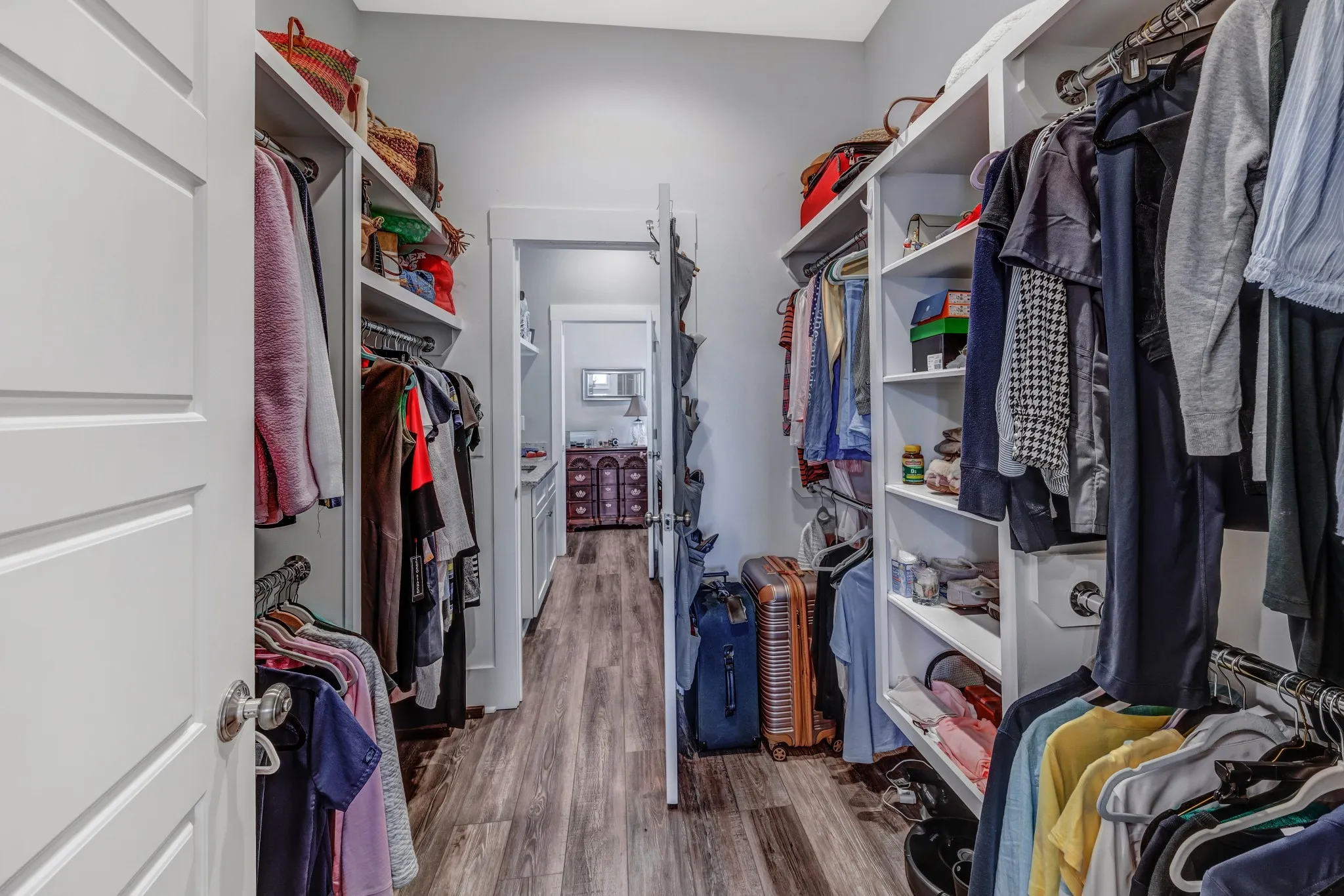 "LongDescription" => "Main suite closet looking back to the main suite bathroom. Notice the builtins."