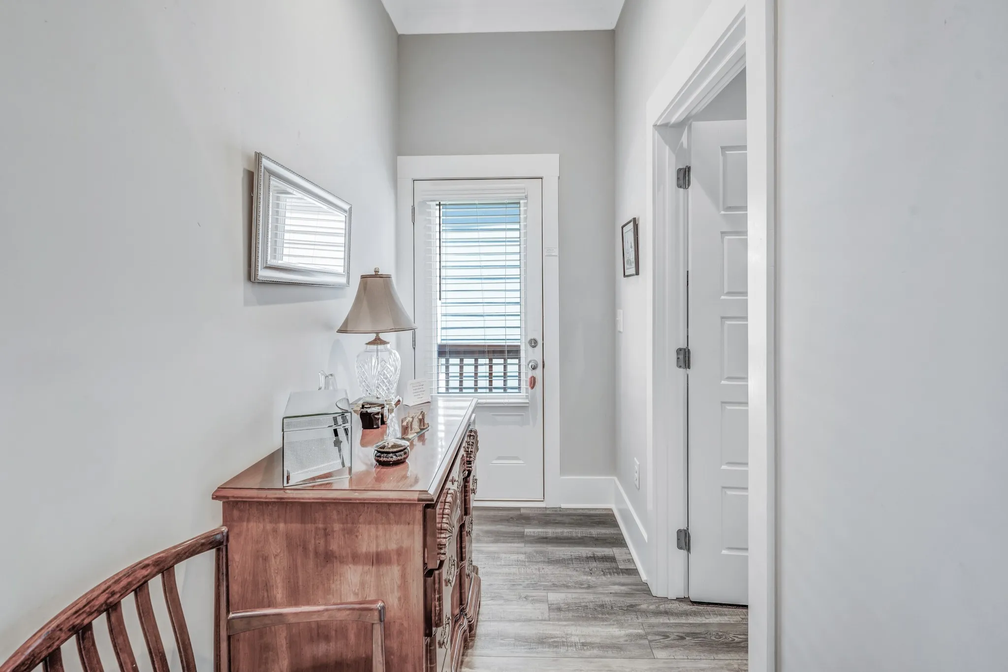 "LongDescription" => "The side entry! Notice that this door is also beautifully trimed with a light with blinds and locks that all match the main key. This entry hall can take you into the main living and kitchen area of through the laundry room to the main bathroom."