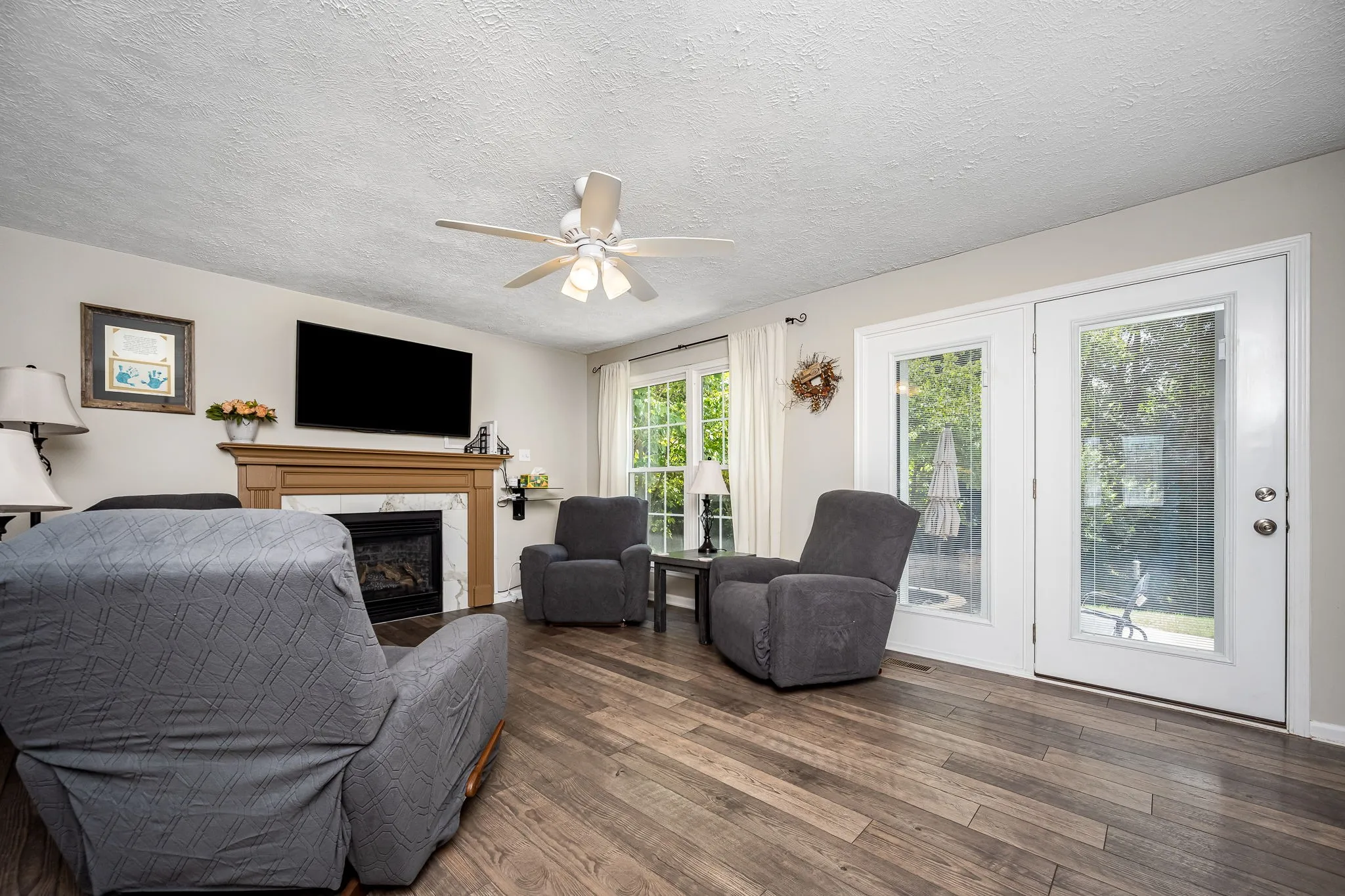 This 2,237 sq. ft. home offers the perfect blend of comfort, style, and functionality. Situated on a quiet cul-de-sac in a desirable neighborhood, the .67-acre lot features professionally landscaped grounds with extensive exterior lighting to highlight the home’s curb appeal day and night. Inside, the renovated owner’s suite boasts a spa-like bathroom with a large tiled shower, his-and-her vanities, and premium finishes. A 2017 renovation included new energy-efficient windows and doors, upgraded flooring, and a fully encapsulated crawlspace for year-round comfort. The main level features an inviting formal dining room and an additional flex room—perfect for a home office, playroom, or hobby space. The comfortable living areas lead to a beautifully designed outdoor entertaining space, complete with elegant pavers, a cozy fireplace, and a louvered pergola—ideal for hosting guests or relaxing in your private backyard retreat. Additional highlights include spacious secondary bedrooms and a prime location close to shopping, dining, and great schools. Move-in ready and meticulously maintained, this home delivers modern amenities, timeless design, and a setting you’ll love coming home to.