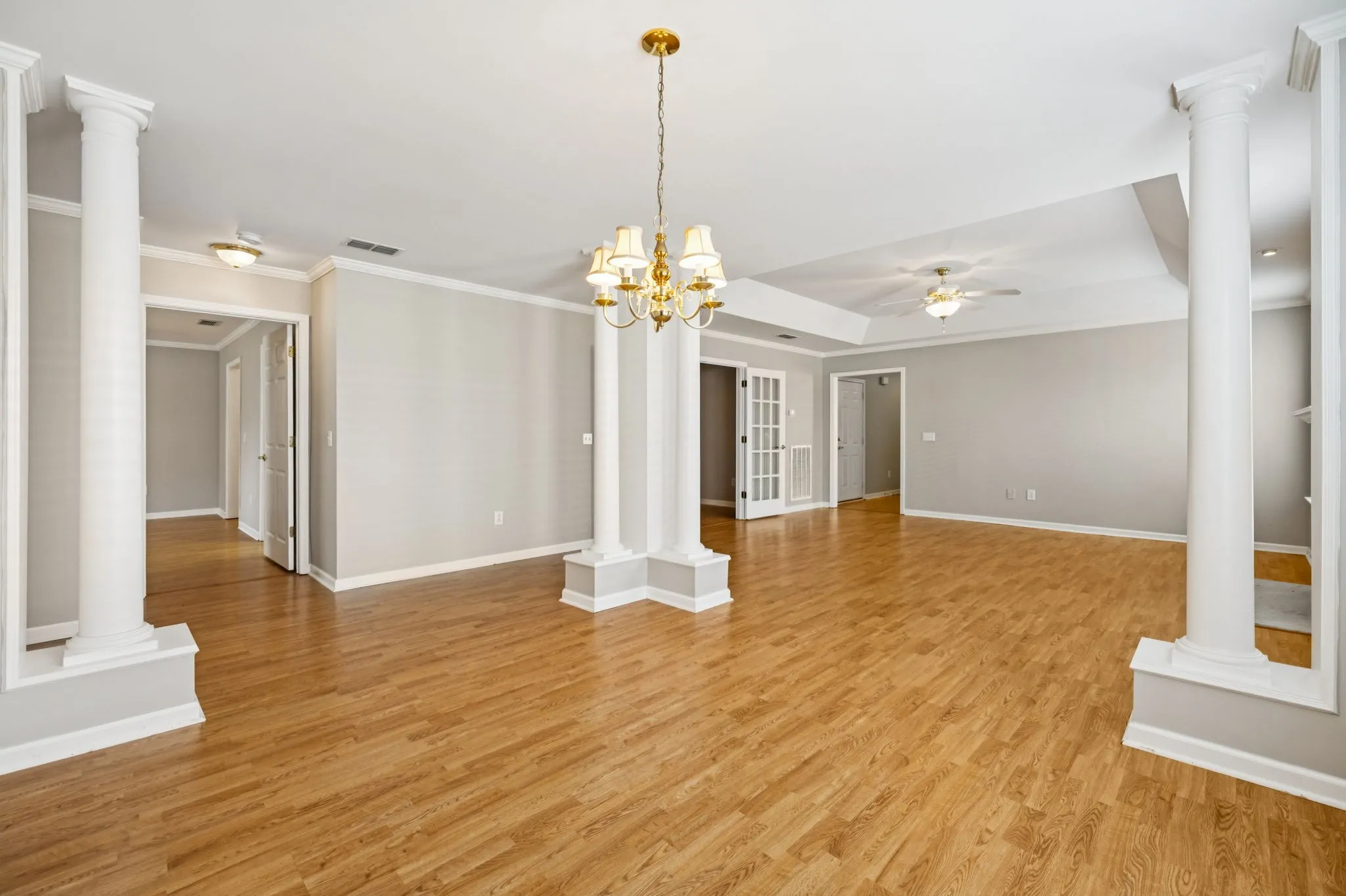 Charming 2-bedroom, 2 bath home with one bathroom serving as the perfect guest bath. This home offers an attached two-car garage, style, and functionality in a desirable community for residents 55 of age and older. This well-kept property features additional bonus rooms and a bright sunroom, perfect for relaxing or entertaining. Inside, you’ll find elegant touches such as classic white columns and beautiful French doors in the living room. Enjoy the privacy of a fully fenced yard, plus the convenience of being within walking distance to the clubhouse where neighbors gather to play cards, host social events, ect. Take advantage of the community swimming pool and friendly, active atmosphere. An ideal place to call home and build community!