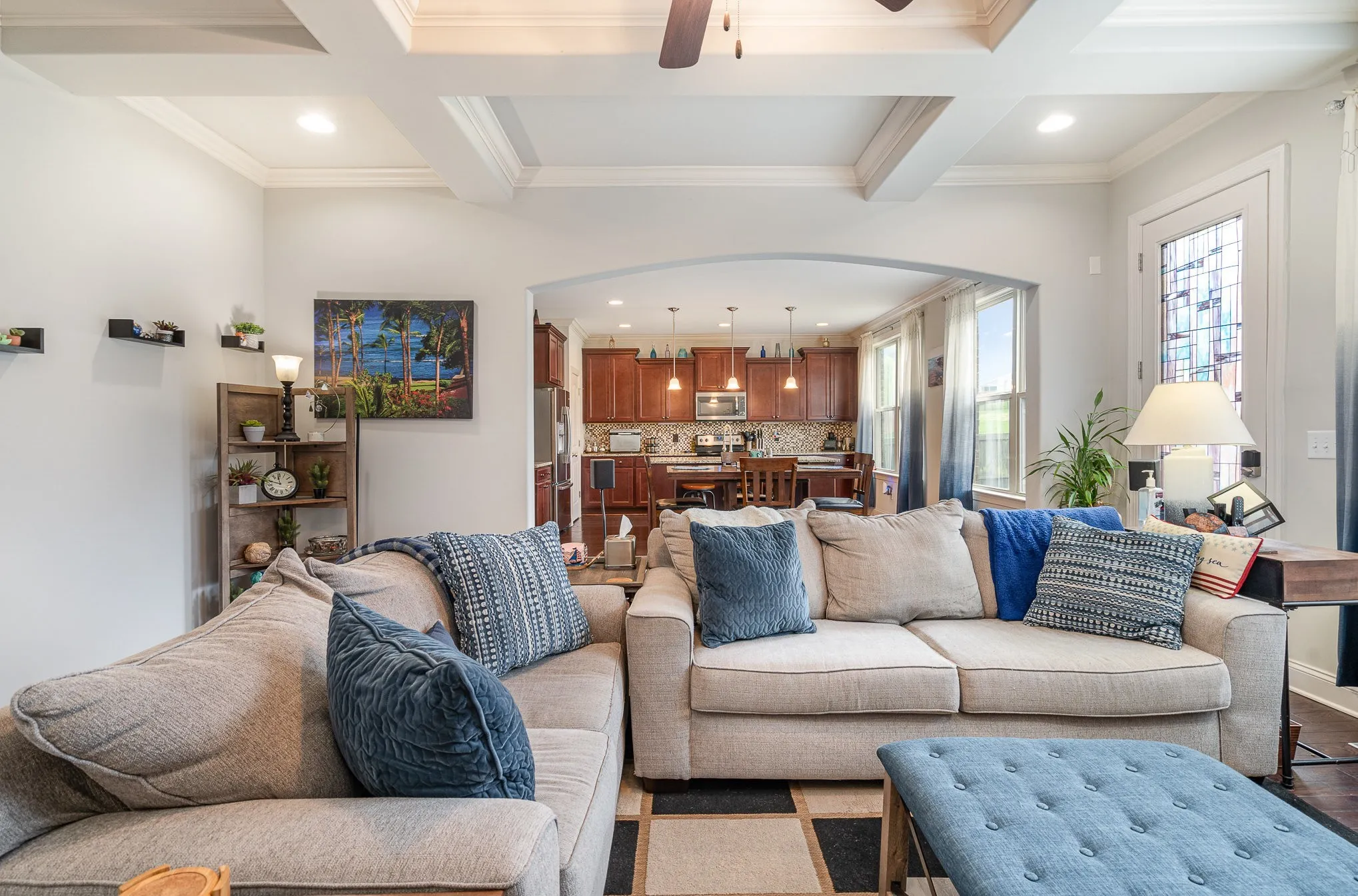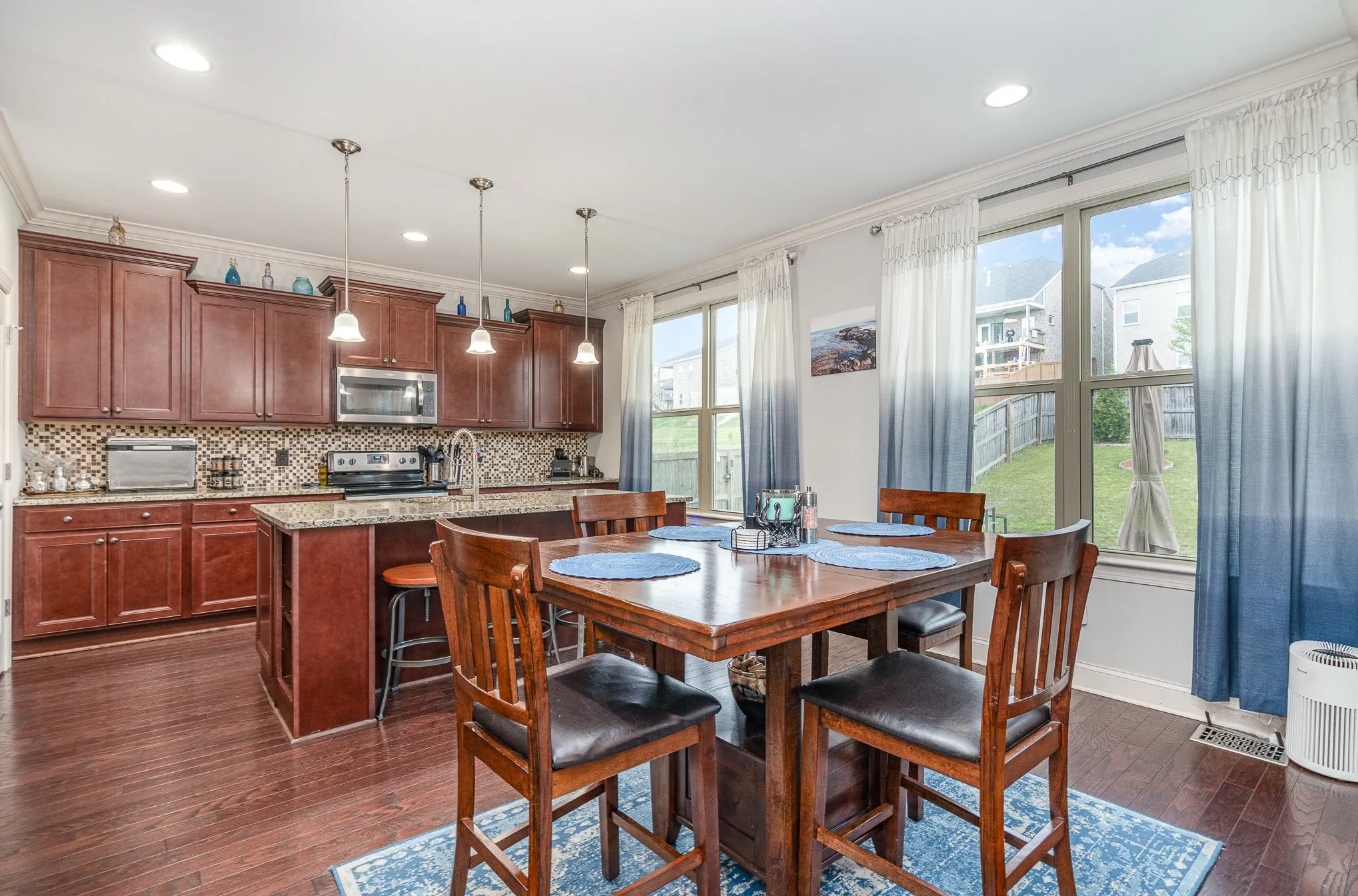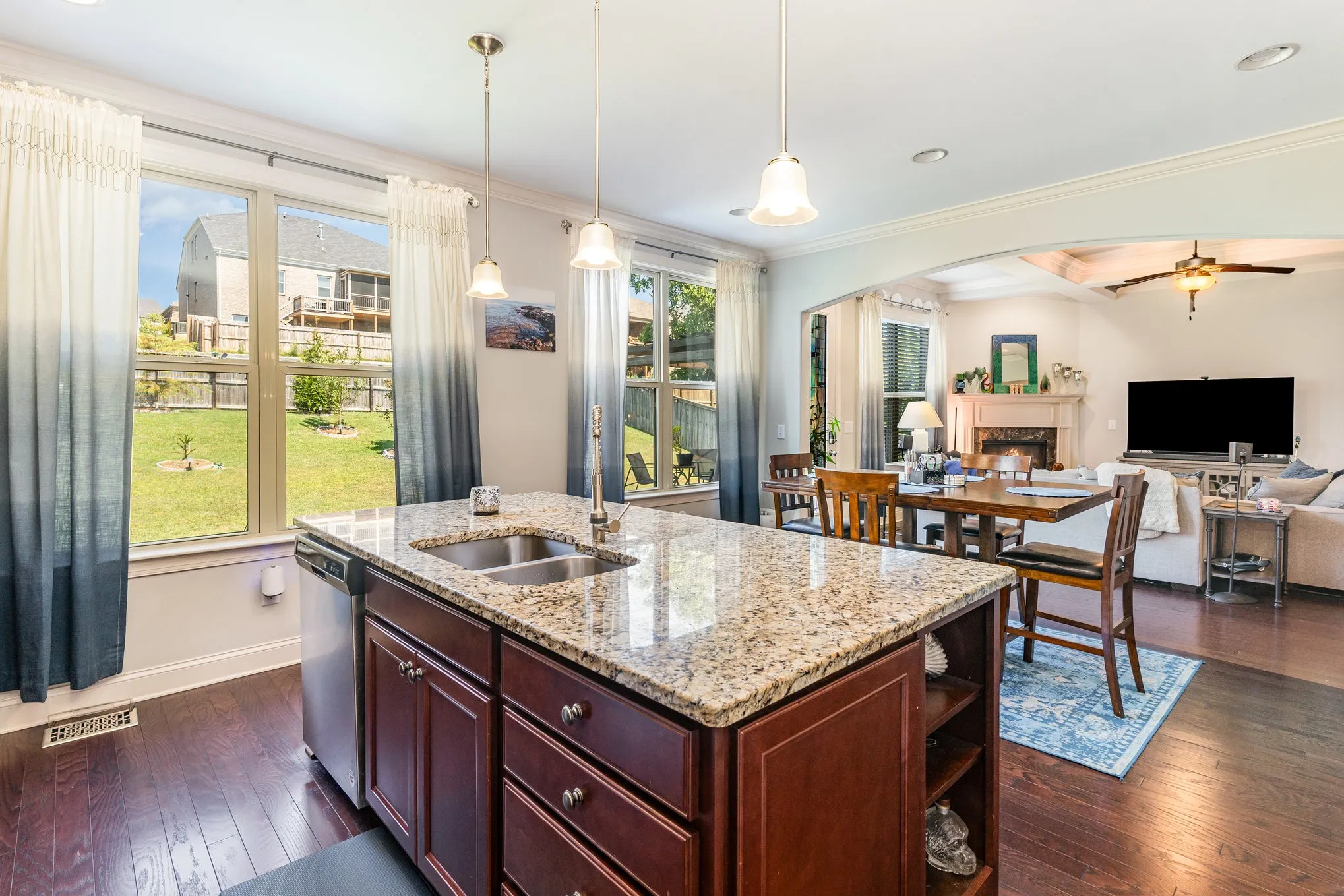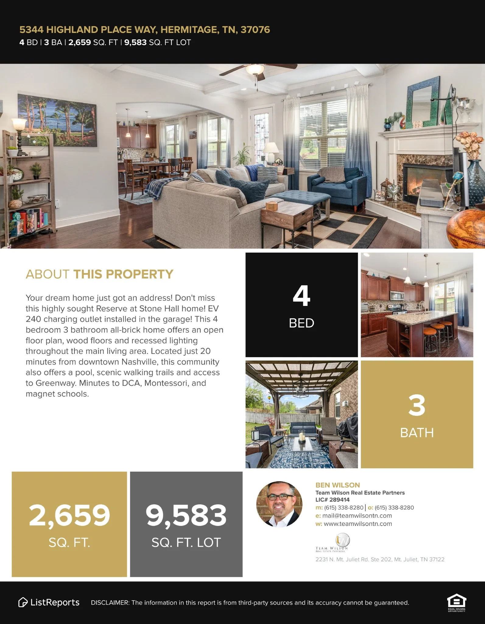 Your dream home just got an address! Don’t miss this highly sought Reserve at Stone Hall home! EV 240 charging outlet installed in the garage! This 4 bedroom 3 bathroom all-brick home offers an open floor plan, wood floors and recessed lighting throughout the main living area. The living room offers a beautiful coffered ceiling. The kitchen includes plenty of counter space, a large island with a breakfast bar, a tile backsplash, stainless steel appliances, and a spacious pantry. There’s also a formal dining room for special gatherings. The main-level primary bedroom boasts tray ceilings, a huge walk-in closet, and an en-suite bath. The en suite bathroom includes double vanities, a soaking tub, and a separate shower. Upstairs, you’ll find the oversized secondary bedrooms and a versatile bonus room—perfect for a game or movie room. Enjoy the fenced backyard with a patio area ideal for relaxing while overlooking your assortment of fruit trees. Located just 20 minutes from downtown Nashville and 13 minutes to the airport. This community also offers a pool, scenic walking trails and access to Greenway. Minutes to DCA, Montessori, and magnet schools.