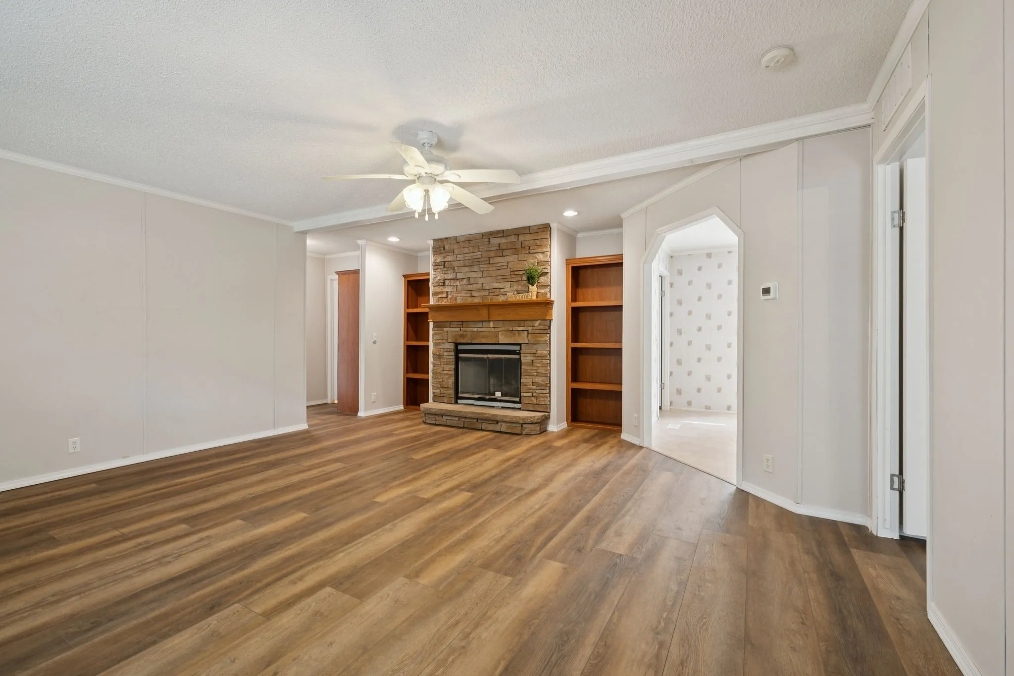 Need some space in the country? This listing offers just that with 3.2 acres, shop and 3BR, 2BA home with lots of upgrades. Interior style offers all new solid surface flooring and quaint living space with stracked stone fireplace. Home also has spacious primary bedroom with walk-in closet and large bath with shower and garden tub. Kitchen has large dining area, great kitchen cabinetry with lots of space, all appliances, kitchen island and pantry. Exterior has large covered front porch and over-sized rear covered patio. Home has been updated with new hardy board siding, new gutters and downspouts. This home quailities for FHA, VA or all fixed loans and perfect for first time buyers or buyers looking to downsize. Minutes from town, this home is close to all the amenities needed, but still located in country with no city taxes or restrictions. Home is vacant and immediate possession is available. Call today for showing.