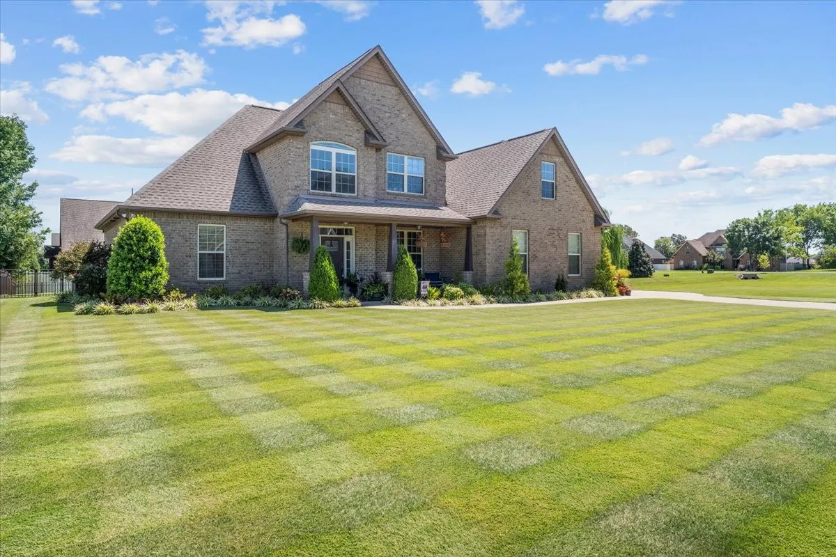 Outdoor living is equally inviting with a covered front porch and an extended covered back porch. What truly sets this home apart is the lot—sitting on nearly an acre thanks to the adjoining side yard, making it one of the largest in the neighborhood. The front yard is fully sodded, with a lush Zoysia front lawn that enhances its curb appeal.