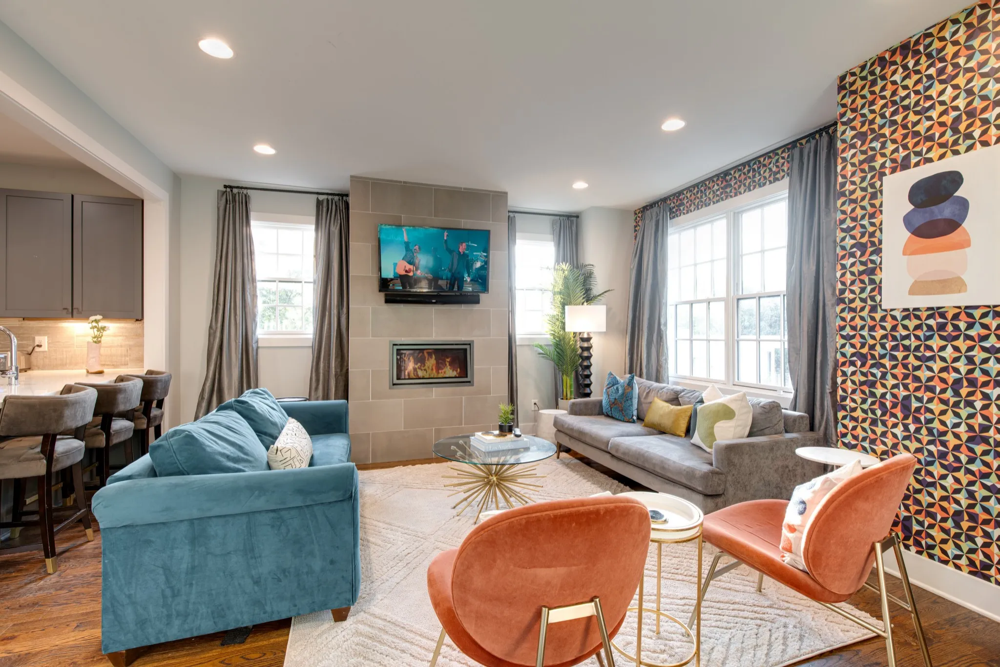 Melodic Skyline is a modern four-bedroom, three-and-a-half-bathroom residence located just minutes from Broadway, The Gulch, and 12 South. Designed with bold finishes by a local artist, this home combines unique character with luxury amenities, creating a one-of-a-kind long-term rental opportunity in the heart of Nashville.