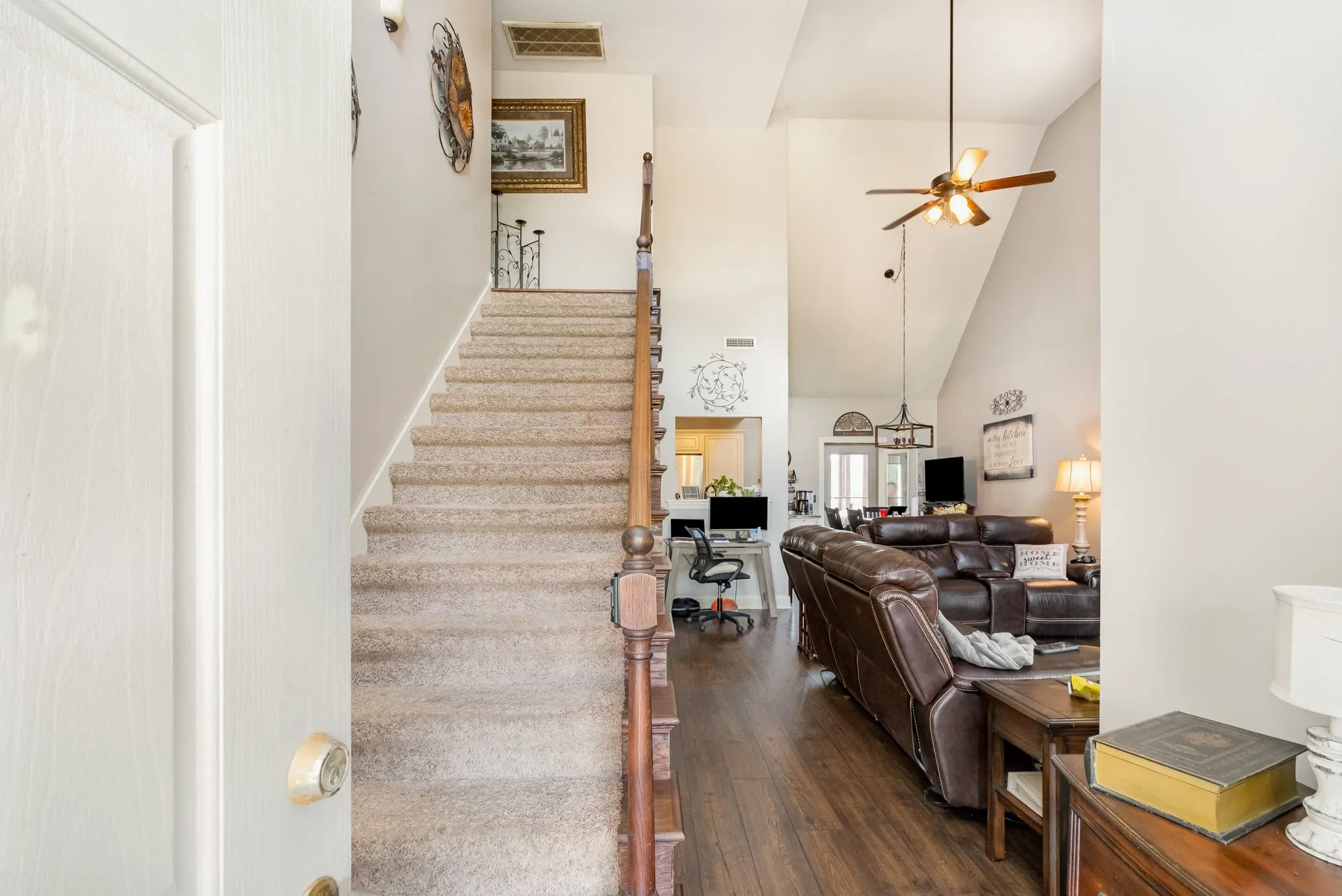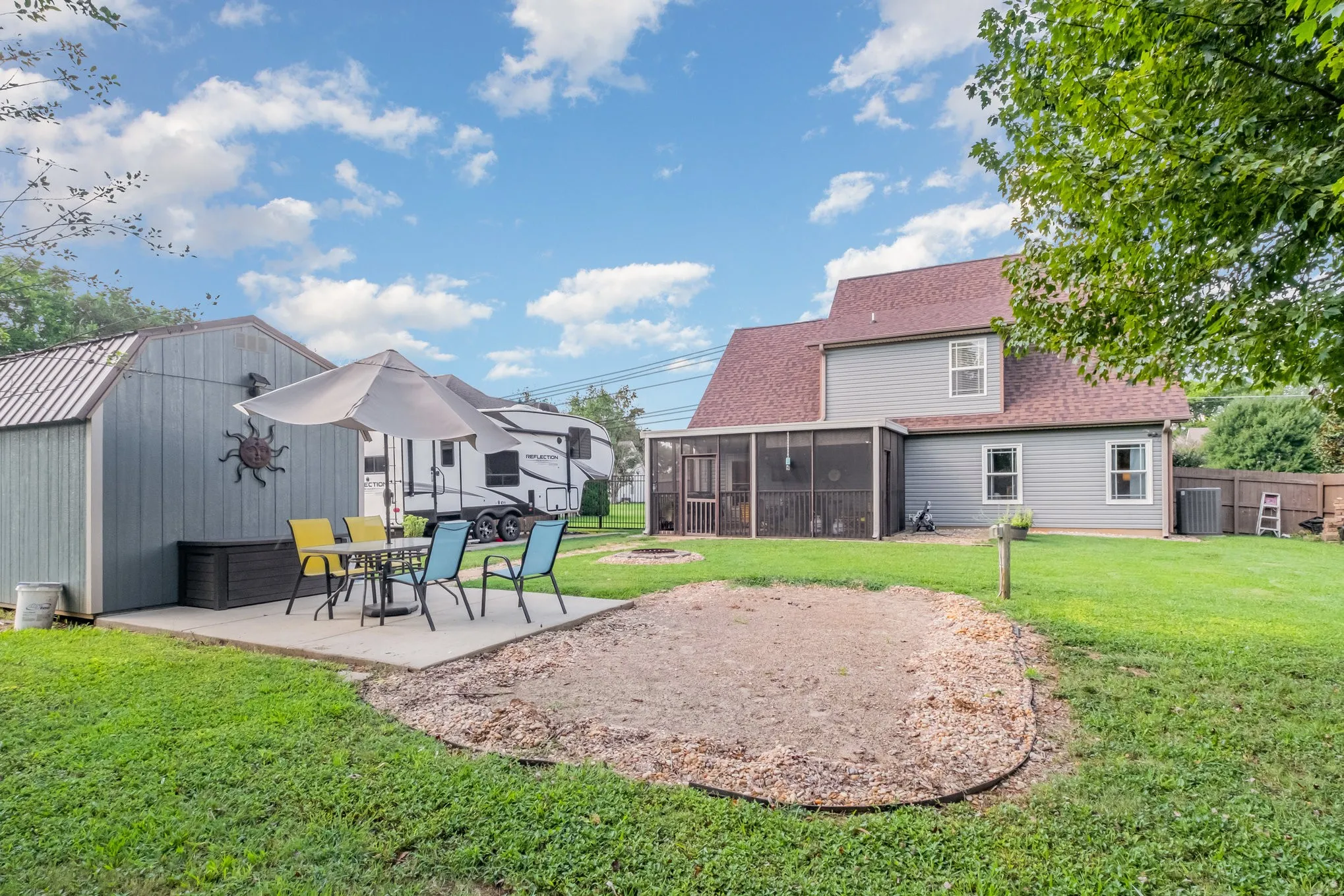 Welcome to this beautifully updated home featuring three spacious bedrooms and two and a half baths. Step inside to discover an open floor plan with stunning new floors, professionally cleaned carpet, and abundant natural light, thanks to a large skylight in the living room and new windows in both the living area and primary bedroom. The kitchen comes equipped with a brand new dishwasher, while the downstairs boasts stylish new fixtures, updated cabinets in the half bath, newer HVAC, and new blinds throughout. Enjoy the convenience of a new back door and appreciate the freshly stained fence and a new gate at the entrance to the parking pad, providing privacy and curb appeal. Upstairs, the entrance to the attic is already decked and offers a fantastic opportunity to expand into a bonus room that could serve as an additional bedroom or extra storage. Outdoor living is a delight in the large, fenced backyard, complete with a fire pit and a handy storage shed. There’s plenty of parking with a two-car garage as well as a concrete pad for your RV. This home is move-in ready and waiting for you to make it your own. Don’t miss your chance to see this exceptional property!