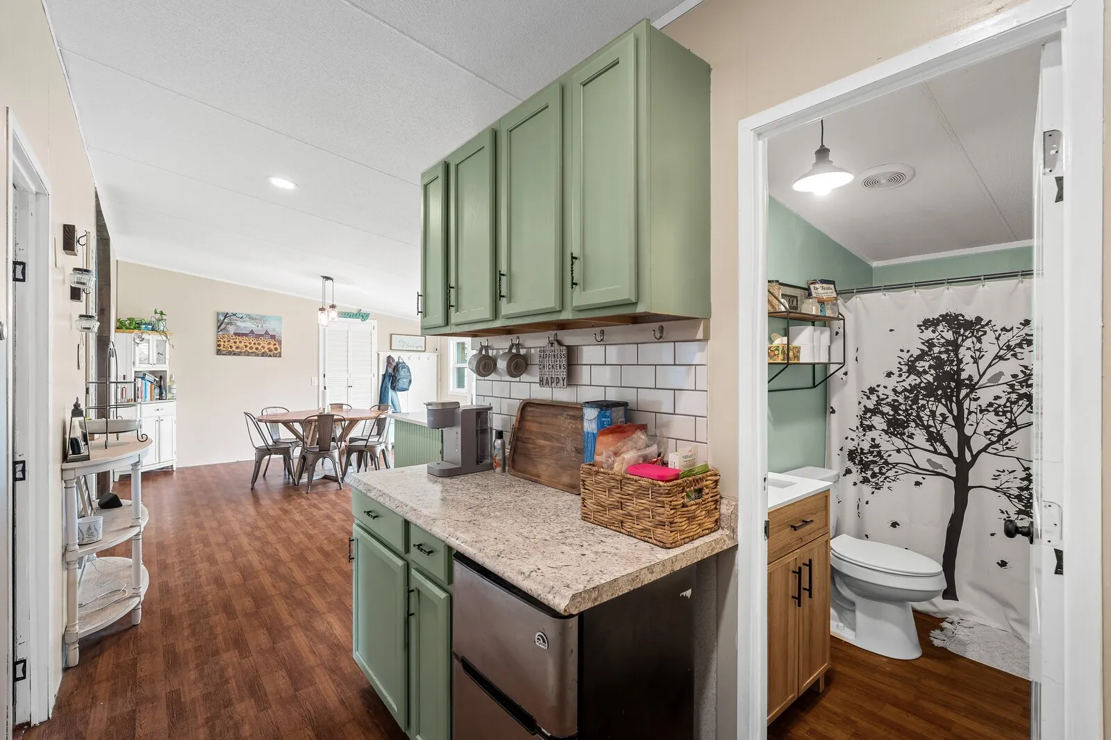 Welcome to your dream home in Bell Buckle TN! This stunning four-bedroom, two-bathroom residence, situated on a serene one-acre lot, combines modern convenience with charming country living. As you approach, you’ll be greeted by a covered front porch, perfect for morning coffee or evening relaxation. Step inside to discover a spacious and thoughtfully designed zoned layout. The heart of the home is the inviting kitchen, featuring newer stainless steel appliances, an expansive kitchen island, and a chic farmhouse sink. As an added bonus, indulge in your very own coffee bar complete with a mini-fridge, offering a cozy corner perfect for your daily brews. Natural light floods the space through new windows, enhanced by stylish light fixtures that add a contemporary touch throughout. Enjoy the seamless transition between indoor and outdoor living with a covered patio that overlooks a fully fenced yard, perfect for children or pets to play safely. For additional functionality, this property boasts a storage building on a sturdy concrete slab, making it a practical choice for your storage needs. Conveniently located just 20 miles from Murfreesboro and 10 miles from Shelbyville, this home offers a peaceful retreat while remaining close to local amenities. Don’t miss out on the opportunity to make this exceptional home your own!
