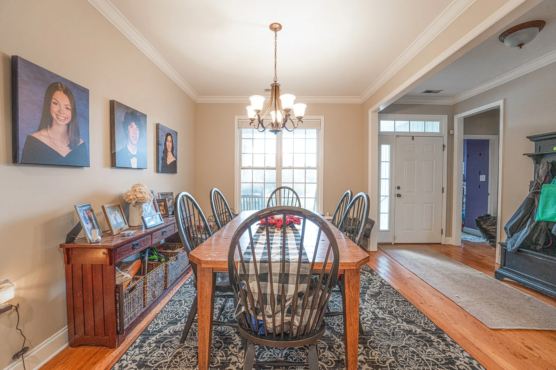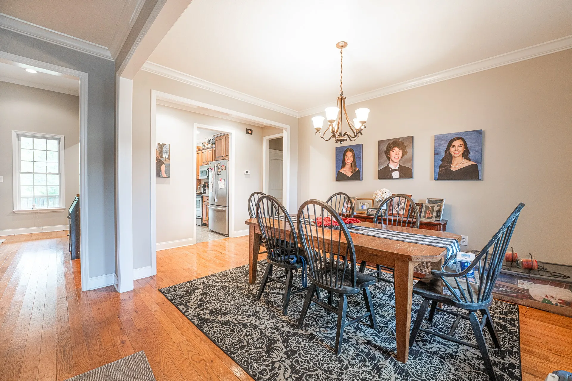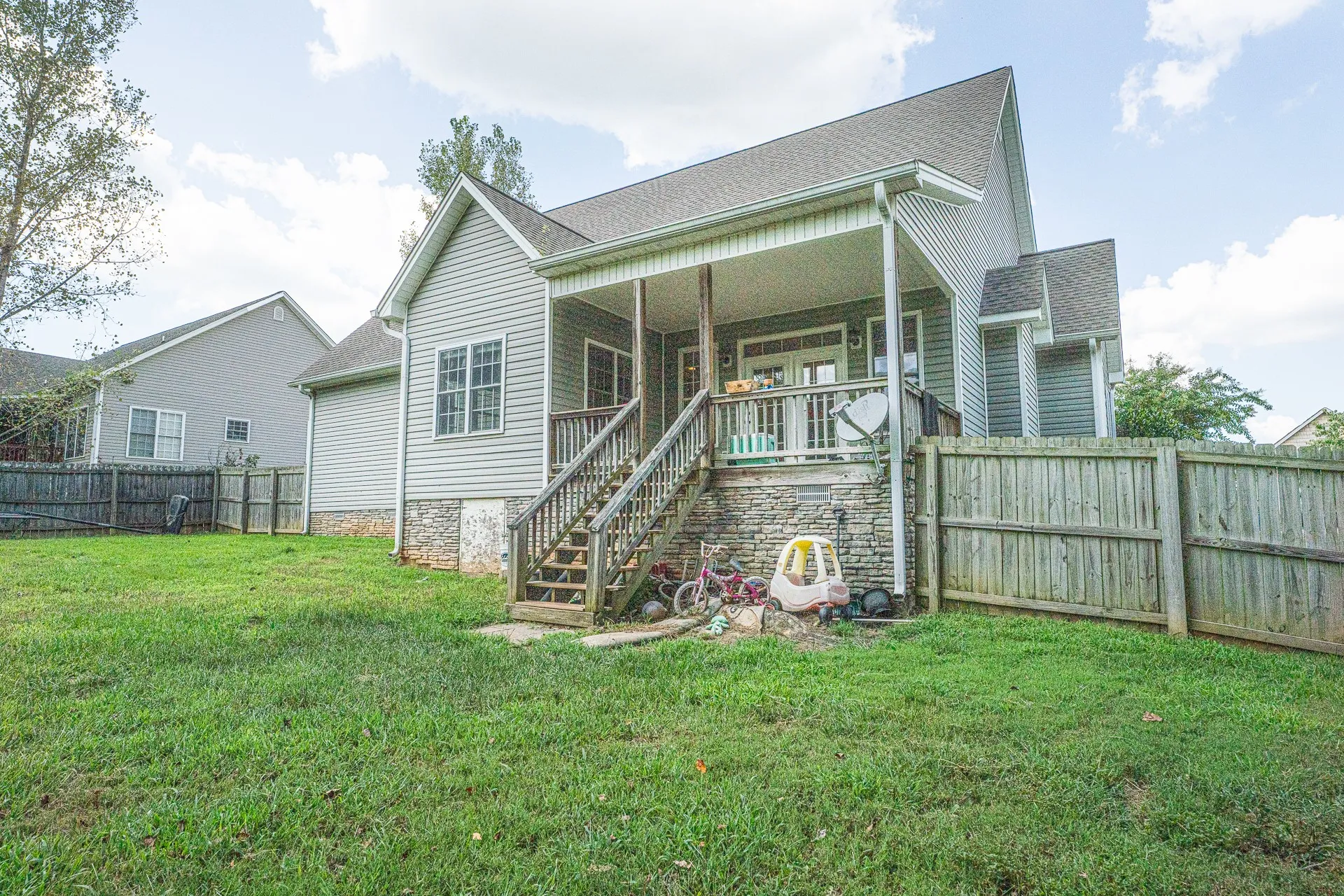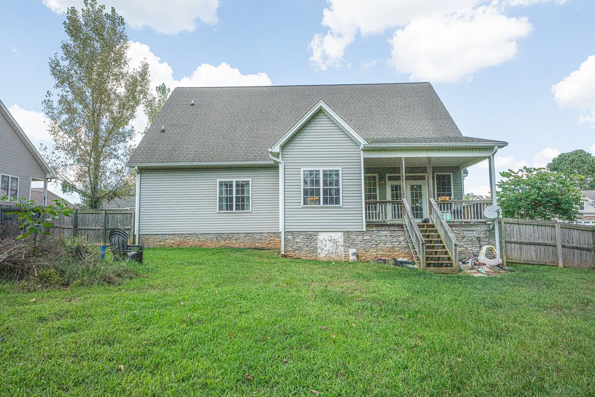 Set in a desirable subdivision, this 4 bedroom 3 bathroom home blends everyday comfort with thoughtful design. The main level offers hardwood floors and a fireplace in the living room that create a warm setting, a formal dining room for special occasions, and an eat in kitchen with space for casual meals. The en suite primary bedroom is a true retreat with double vanities and a large soaking tub for relaxation. A separate laundry room adds convenience and functionality to the layout. Upstairs, the 4th bedroom with full bath provides flexibility for guests, extended family, or a private work space. Natural light fills the interior, highlighting the classic flow and timeless finishes that make the home easy to enjoy. Outdoor living is just as appealing with a covered front porch to welcome neighbors, a covered back deck ready for weekend cookouts, and a fenced in large backyard that offers plenty of room for play, pets, or gardening.