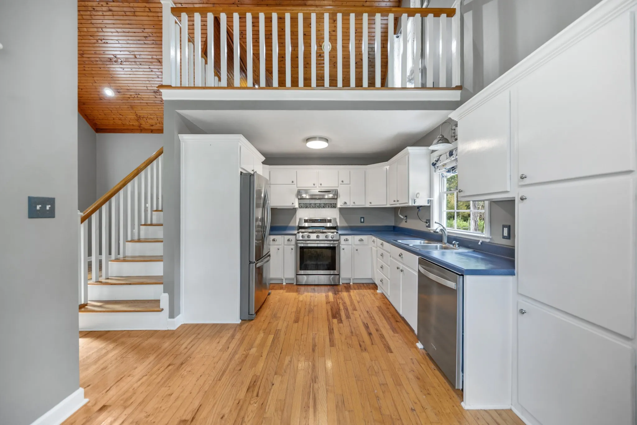 Spacious eat-in kitchen with stainless steel appliances