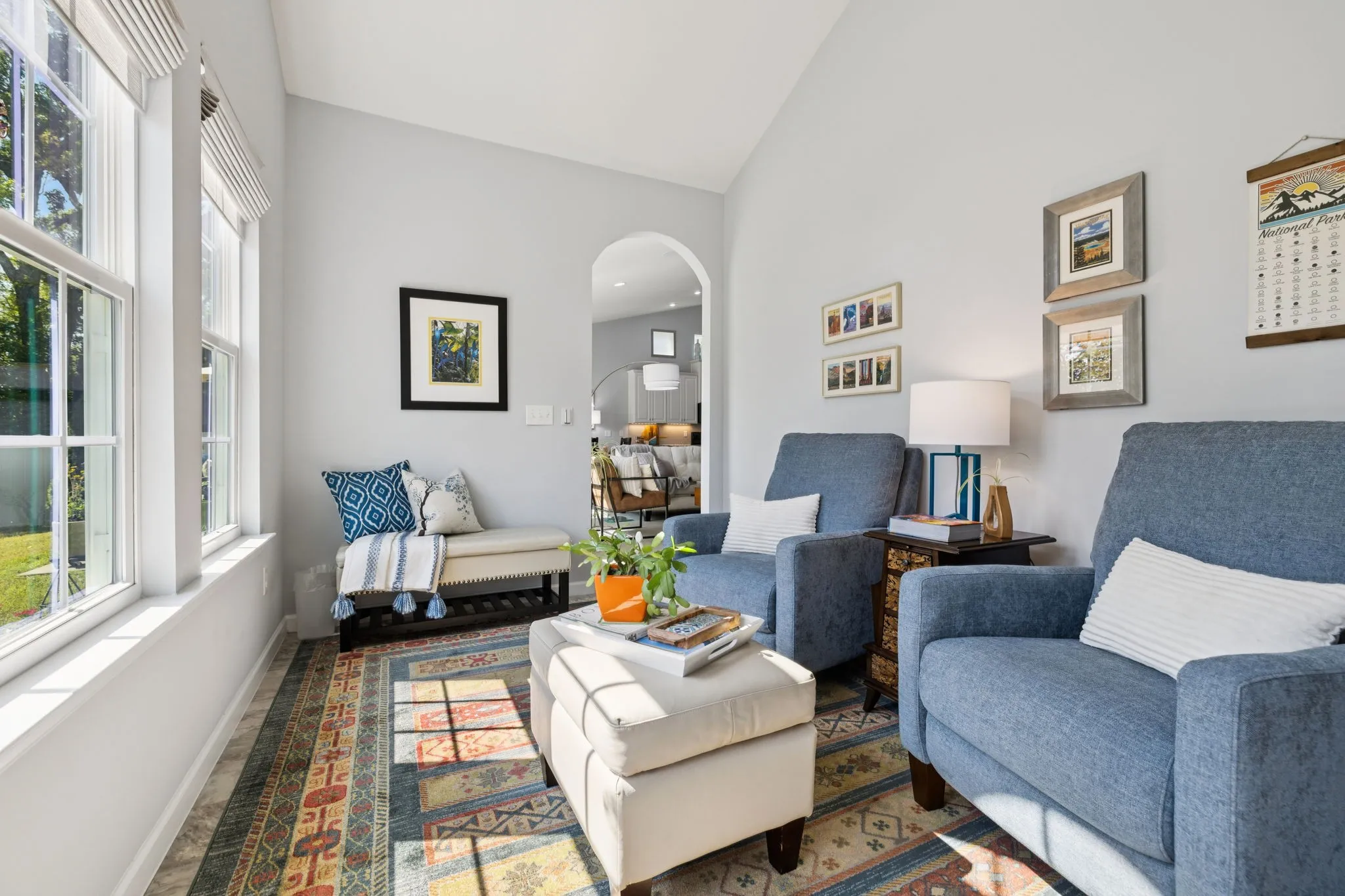 Welcome to 2722 Goose Creek Drive, a beautifully maintained home nestled in one of Murfreesboro’s most desirable neighborhoods-Three Rivers. The lawn is maintained by HOA and has beautiful low-maintenance landscaping as you come up to the front of the home. Step inside to find a true foyer to greet your guests and an inviting open-concept layout filled with natural light. This home is one level living with a bonus room upstairs. The great room, formal dining and kitchen have vaulted 20′ ceilings with lots of windows and natural light flowing in. Right off the great room is a gorgeous sunroom with more windows. There are 3 bedrooms, 2 full baths, sunroom and bonus room + lots of closets and storage space! offering the perfect setting for both everyday living and entertaining.