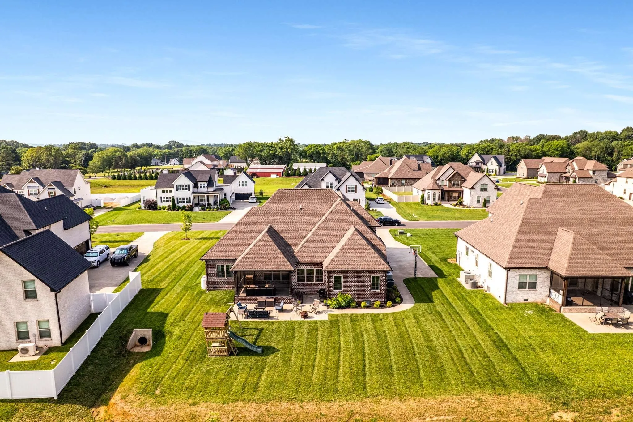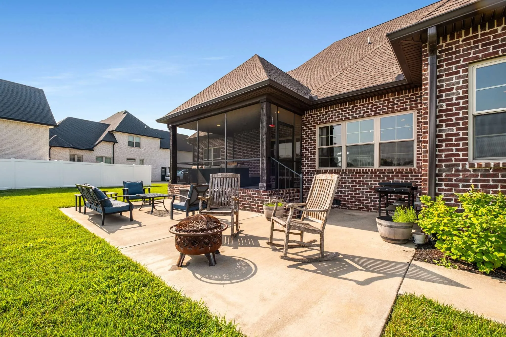 Enjoy the outdoors year-round on the screened-in porch, overlooking a generously sized lot that backs up to peaceful farmland—no neighbors behind you for extra privacy and scenic views. A side-entry 3-car garage provides ample space for vehicles, storage, or workshop needs.