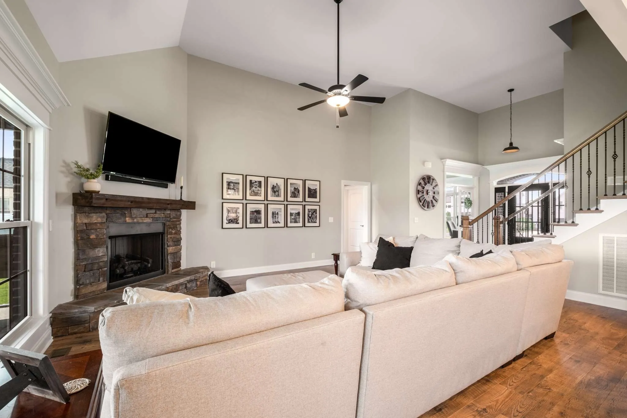 This home features an open floor plan, offering the perfect layout for both everyday living and entertaining. The main level includes a large primary suite, a private home office, and a second bedroom. The kitchen, dining, and living areas flow seamlessly together, filled with natural light and designed for comfort and functionality. Upstairs you’ll find a HUGE bonus room with wet bar—perfect as a media room, playroom, plus two additional bedrooms, giving everyone room to spread out.