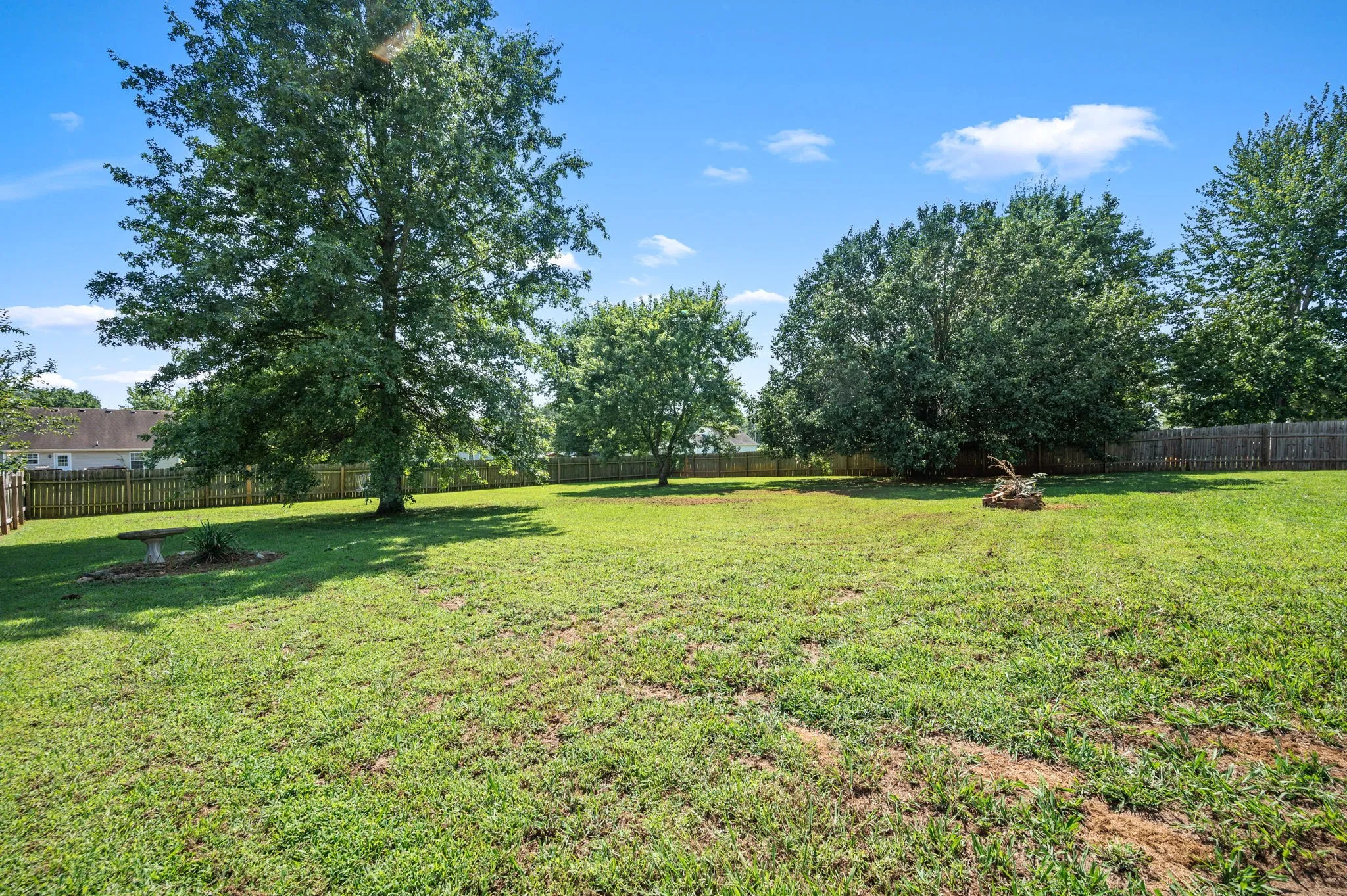 One story on half an acre and with a long list of thoughtful updates inside and out. A brand-new roof (2024), new HVAC system installed last fall with transferable warranty, and new windows throughout provide peace of mind for years to come. Step inside to find freshly painted cabinets along with updated paint in the bedrooms, bathrooms, and laundry room. The kitchen shines with a new backsplash and updated light fixture, while durable LVP flooring extends through the living room, kitchen, and guest bath. A smart Bluetooth thermostat allows you to control the home’s temperature from anywhere right from your phone. Outdoors, enjoy a private fenced backyard with a newly added concrete patio—perfect for entertaining. Additional upgrades include garage shelving for extra storage and more. This home blends comfort, style, and efficiency.