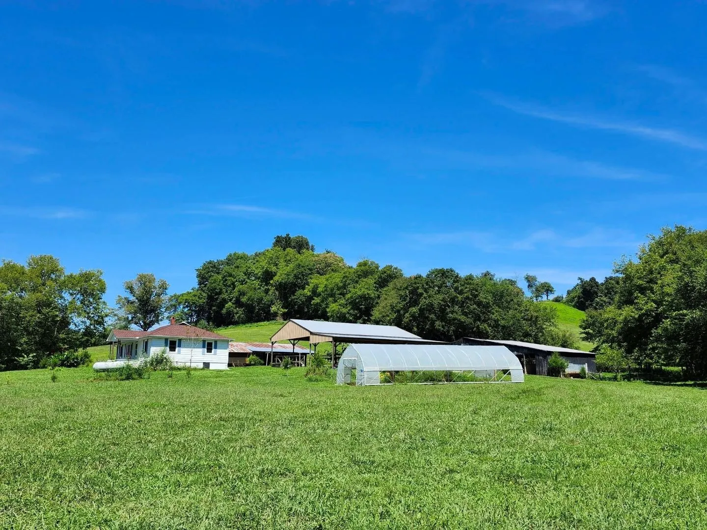 The farm is fully fenced and cross-fenced, featuring productive pastures, hay fields, wooded acreage, and a peaceful pond. Multiple barns provide exceptional utility, including a covered 40x60 riding arena with attached 20x60 shed, ideal for livestock, equipment, or oversized stalls. A natural spring, wet-weather creek, established gardens, and a 16x48 high-tunnel greenhouse support true farm-to-table living.\n