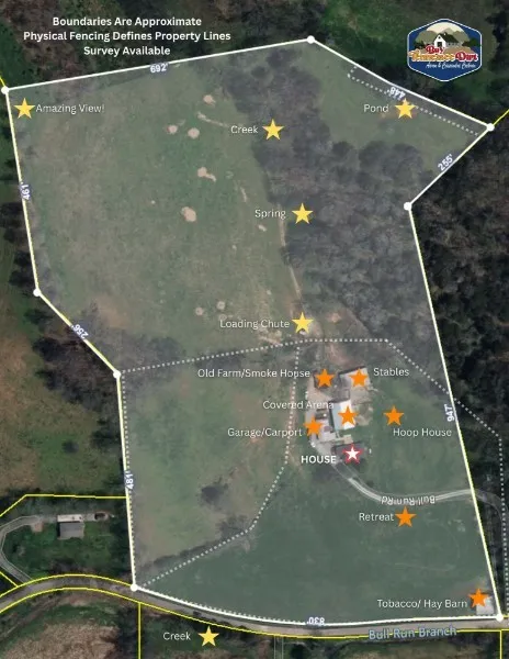 A rare highlight is the private farm retreat overlooking the lower pastures—complete with a full bath, electricity, and internet—perfect for guests, creative space, or quiet reflection. Rolling hills offer long views and abundant wildlife, including deer and turkey.\n
