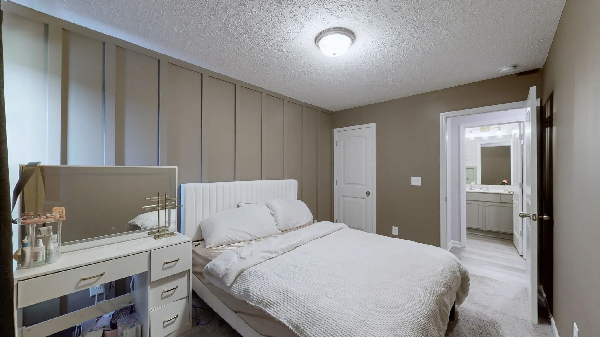 Three bedrooms upstairs, including a primary suite with walk-in closet and en-suite bath