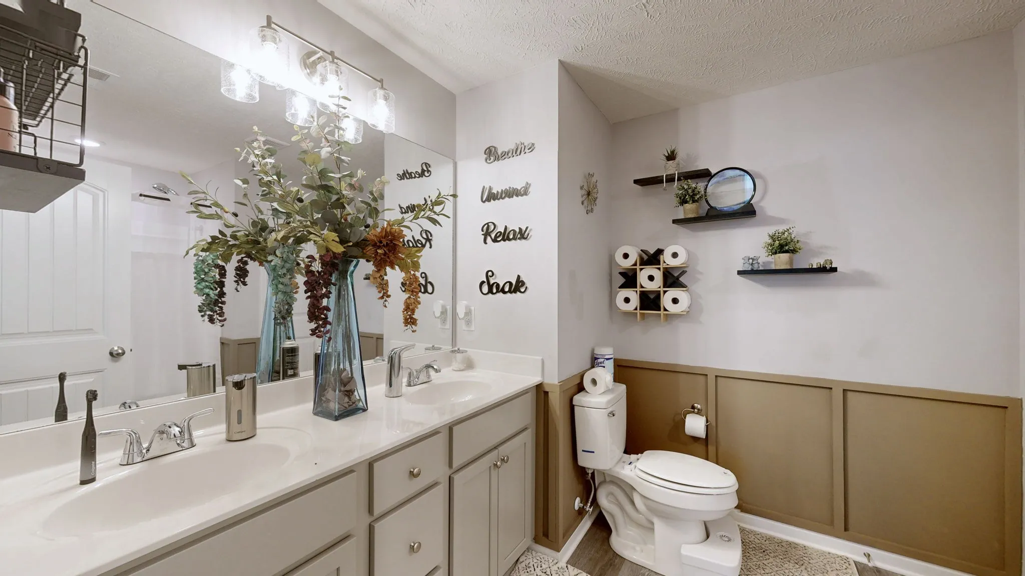Accent walls in bathrooms add a designer touch