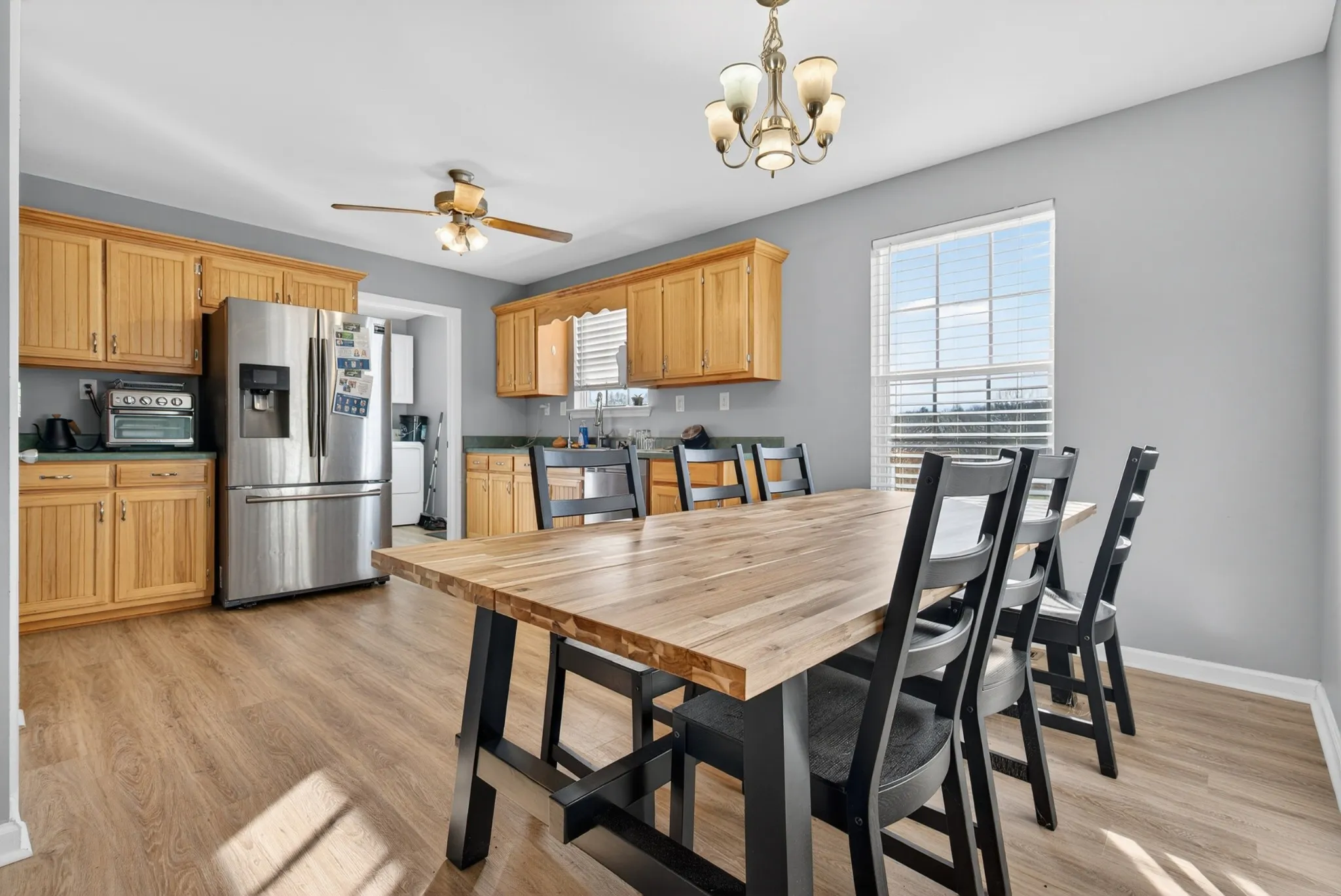 Inside, you’ll find a warm and inviting layout filled with natural light. The kitchen features stainless steel appliances, and the primary suite includes a generous walk-in closet for all your storage needs.