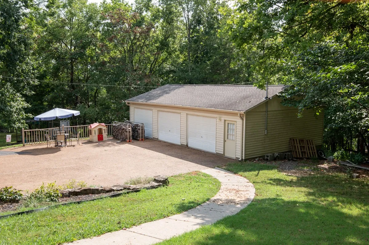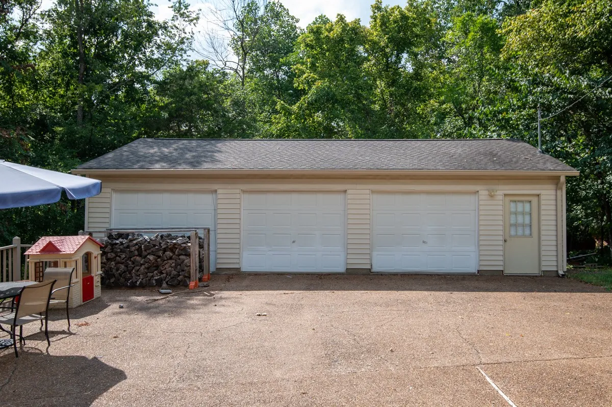A separate three-car detached garage/man cave across the driveway
