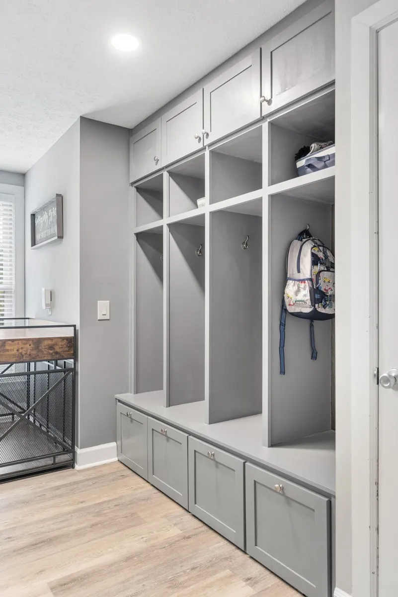A custom cubby/utility room with ample storage