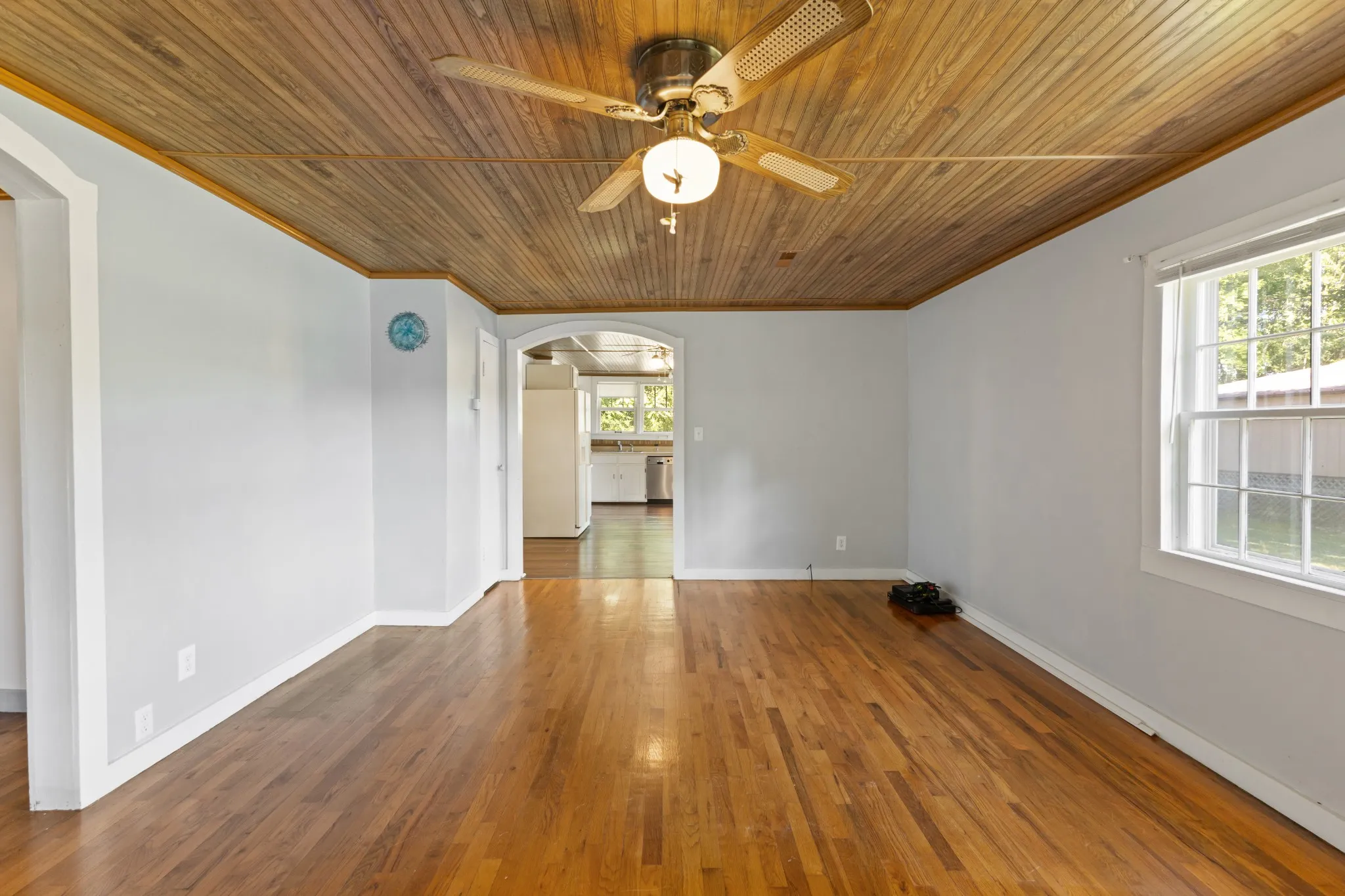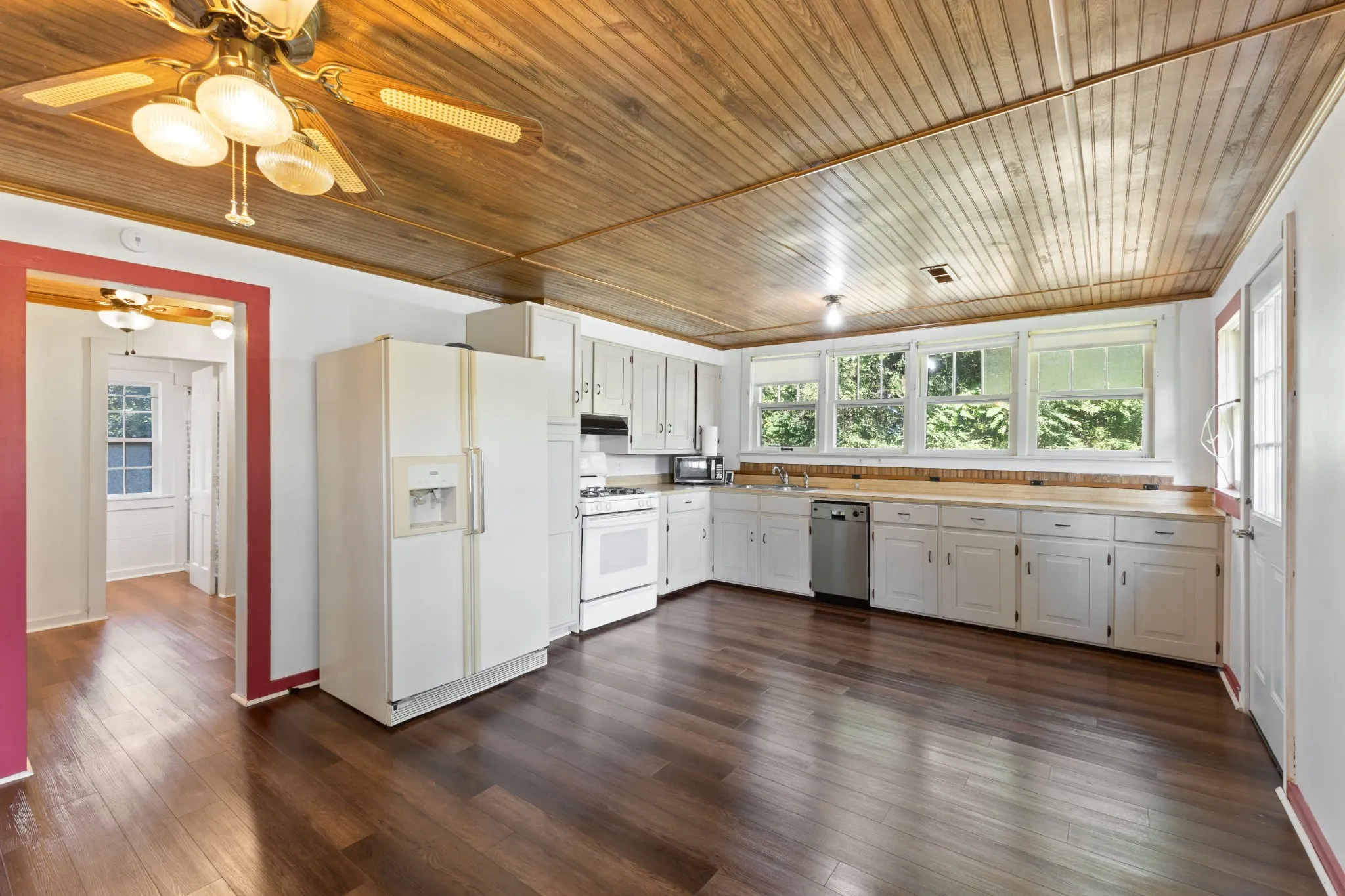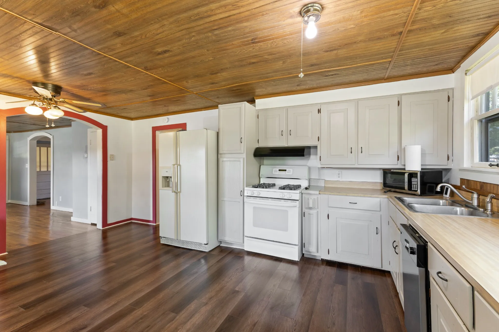 One level cottage style home that makes you feel like everyone is welcome to visit~slow down life and spend a little time on the large covered porch drinking your morning coffee or afternoon lemonade after a long day of planting your own garden~Large living room and kitchen with eat-in area and pantry~beautiful hardwood floors in living room, office and bedroom~Office could double as a 2nd bedroom~tongue and groove ceiling~LVP Flooring in kitchen~a great laundry room that you won’t find in most new construction these days~some features of the home have been recently remodeled~detached carport along with an additional covered RV Carport~separate shed~and property is bordered by Whitfield Creek~(could also use as a rental space for RV / Enclosed could be a business plenty of room for ideas) storage for lawn equipment or waverunners for the Kentucky Lake Pick your hobby, the availability is here~have a he shed or she shed that would be a great yard tool and gardening. The workshop is good for projects on the weekend.