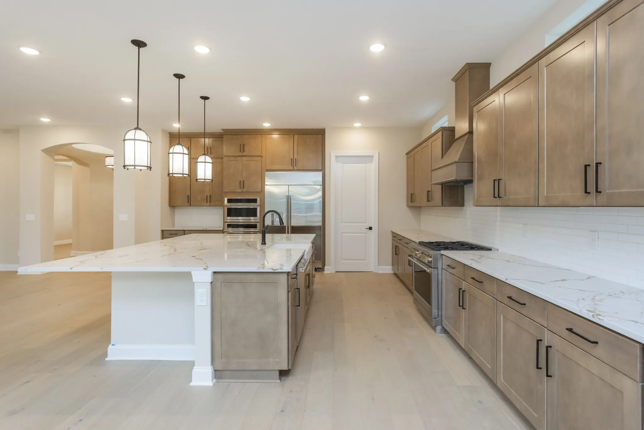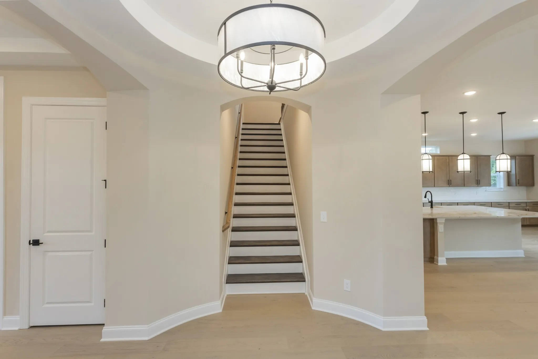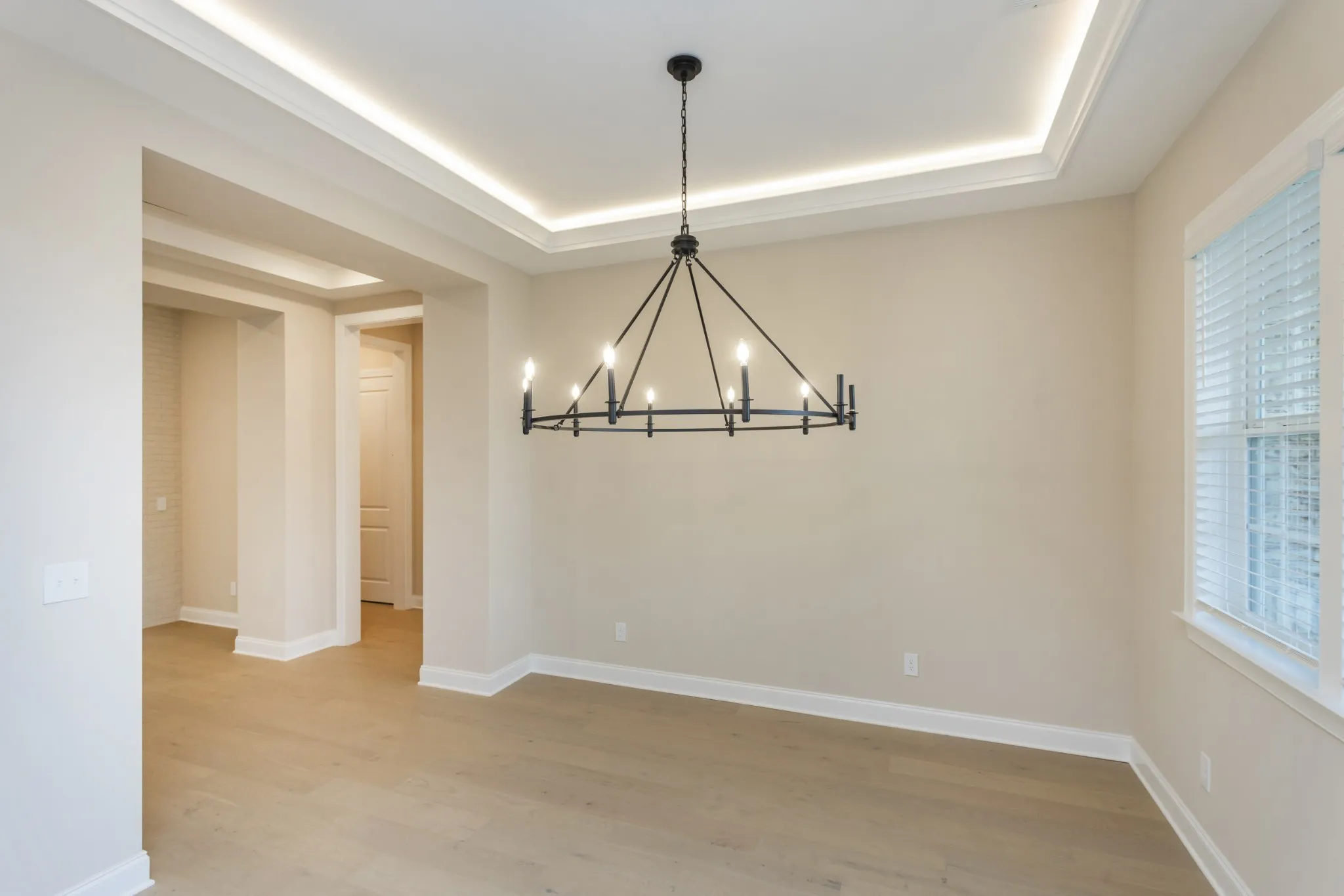 The luxurious primary suite on the main floor includes a tray ceiling, a spa-inspired deluxe bathroom, and a large walk-in closet for the ultimate retreat. Two additional bedrooms with walk-in closets and a shared bathroom, along with a powder room, complete the main level.