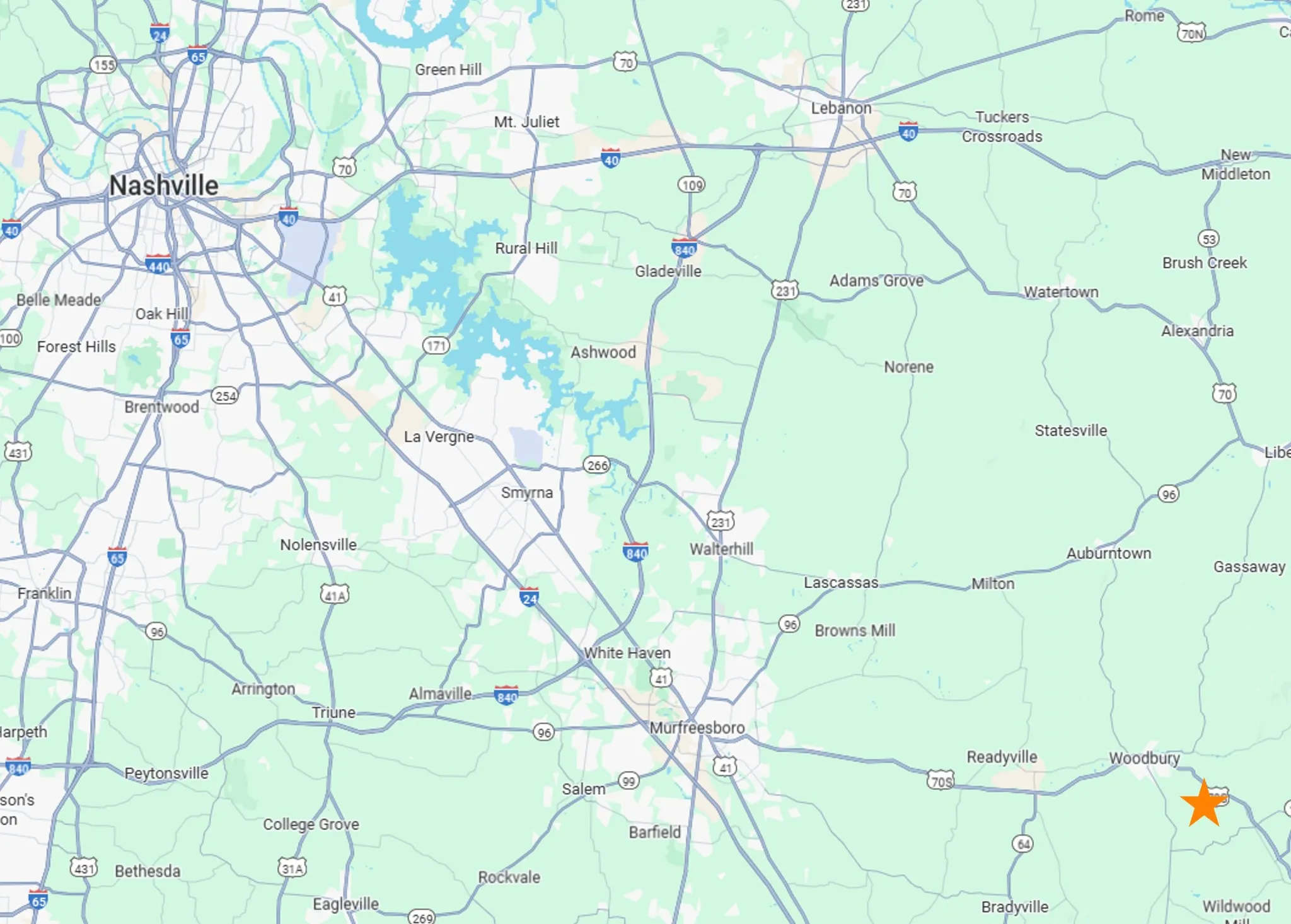 - Directions: From Woodbury, take Hwy 70S (McMinnville Hwy) southeast toward McMinnville. Turn right (south) on Hills Creek Rd. Go 1.8 miles, to St John Hollow Rd. Go 0.2 miles, the property is on the south side of St John Hollow Rd. Coordinates: 35.80079, -86.02804.